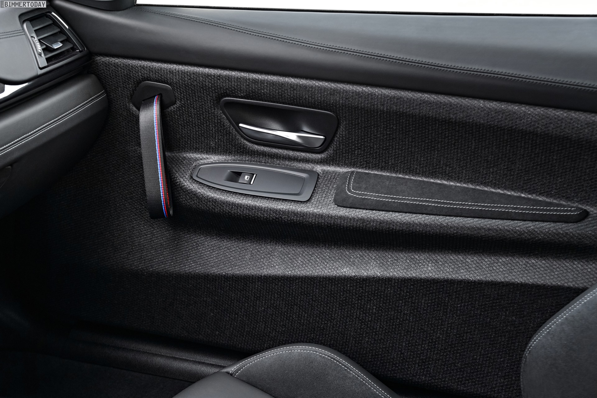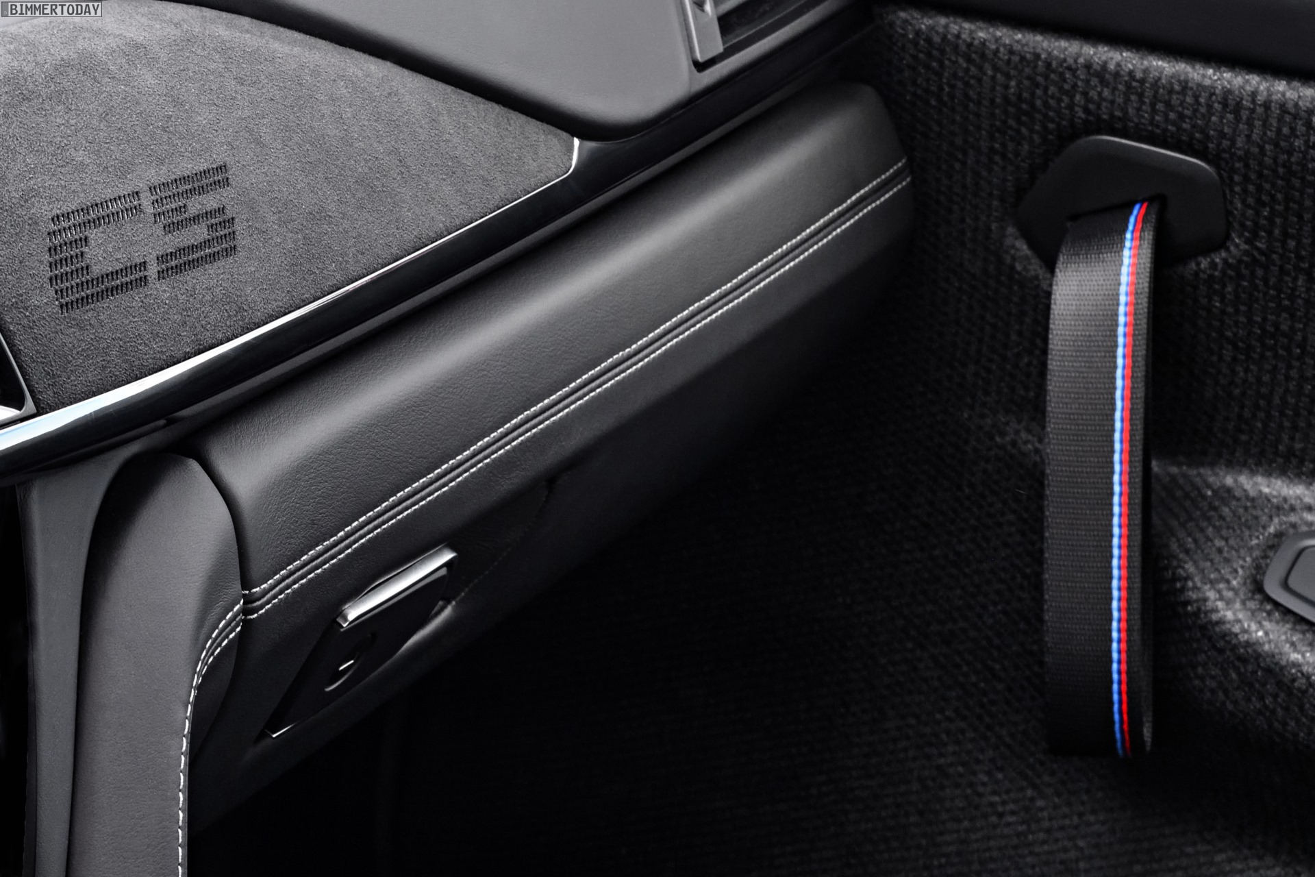 Auch der Innenraum des BMW M4 CS präsentiert sich als Mischung aus Competition Paket und GTS. Vom großen Bruder übernimmt der CS unter anderem die Türinnenverkleidungen aus gepressten Naturfasern, leichte Schlaufen statt herkömmlichen Griffen zum Zuziehen der Türen und die Alcantara-bezogenen Interieurleisten, andere Komponenten wie die besonders leichten Sportsitze stammen vom Competition Paket.