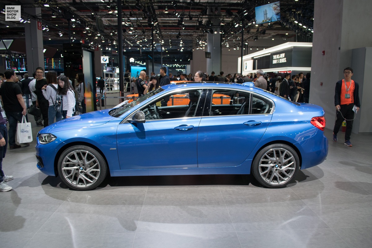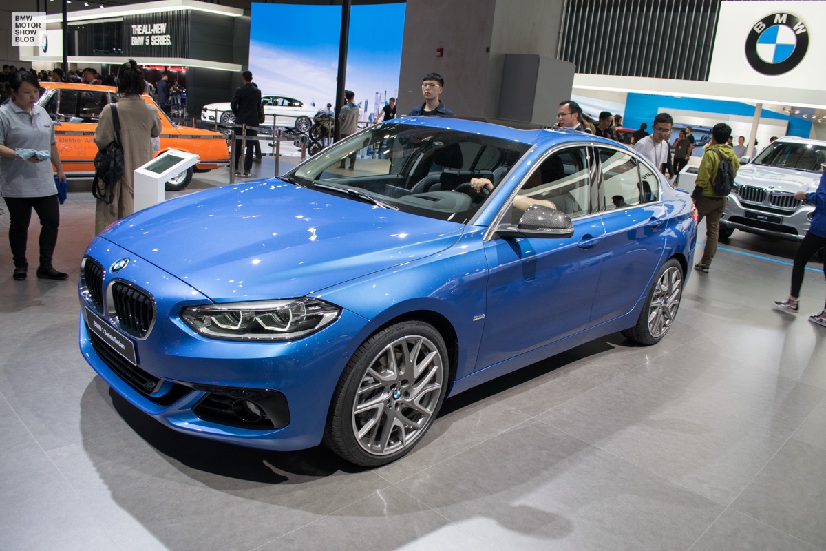 Die Live-Fotos von BMWMotorShowBlog.com zeigen die Limousine auf der Shanghai Motor Show 2017, wo sie unter anderem in der auch uns Europäern vertrauten Farbe Estorilblau präsentiert wird. Die rund 4,56 Meter lange, 1,80 Meter breite und 1,45 hohe BMW 1er Limousine ist keine 8 Zentimeter kürzer als ein 3er, damit bewegen sich die Abmessungen des neuen F52 sogar näher an der klassischen Variante der Münchner Mittelklasse-Limousine als die von dessen eigener Langversion – der ebenfalls nur in China erhältliche 3er mit langem Radstand überragt seine Basis um immerhin elf Zentimeter.