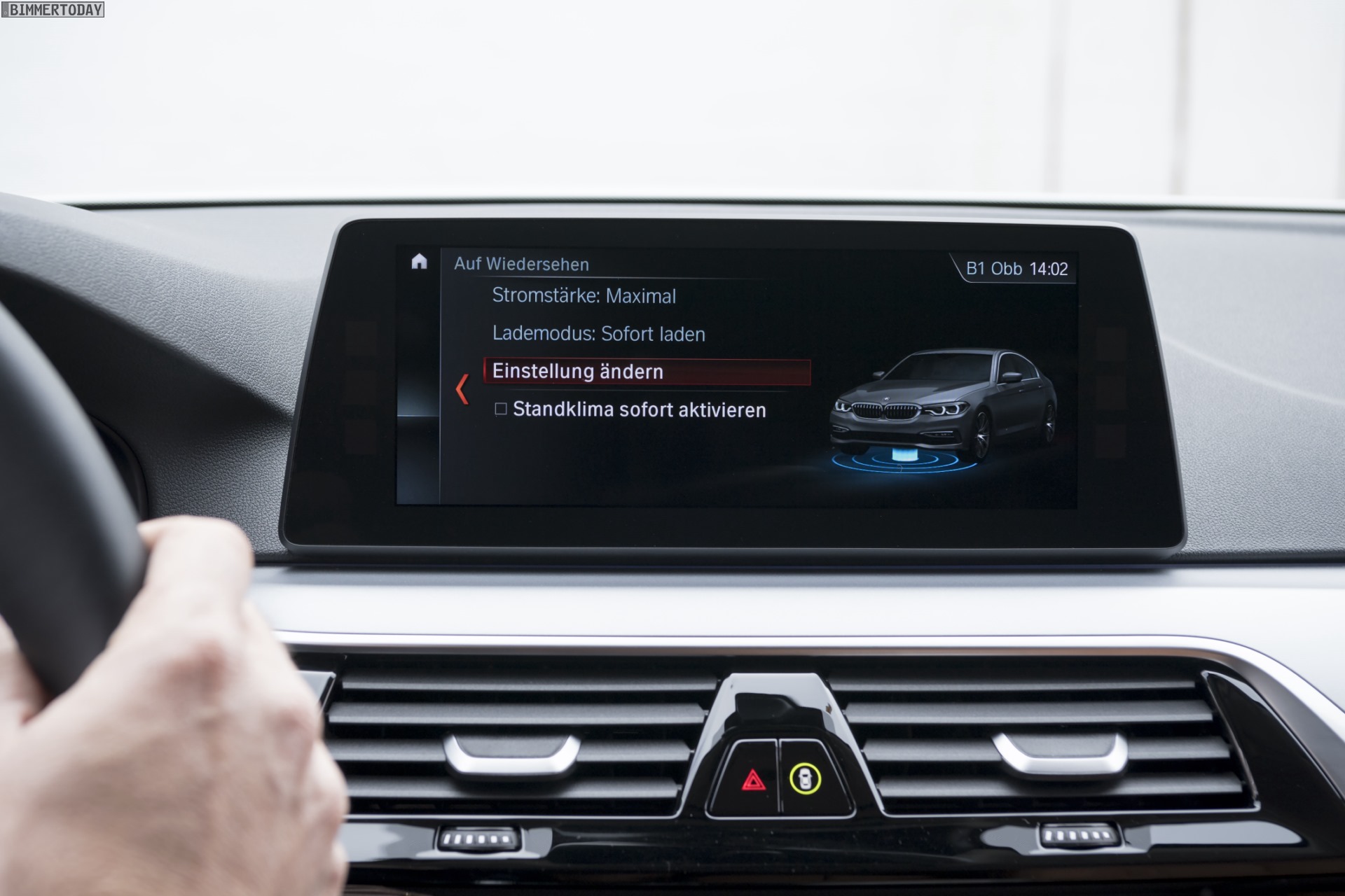 Wird der 530e iPerformance über der BMW Wireless Charging Ladeplatte geparkt, kann der Akku innerhalb von 3,5 Stunden komplett geladen werden. Beim Rangieren auf die Ladeplatte hilft der BMW seinem Fahrer mit Hilfslinien und einer exakten Anzeige der benötigten Position des Fahrzeugs. Natürlich ist die Bodenplatte so ausgelegt, dass sie auch überfahren werden kann, ohne Schaden zu nehmen. Ebenfalls integriert ist eine Erkennung möglicher Störfaktoren, weshalb man sich auch keine Sorgen um ein zwischen Fahrzeug und Ladeplatte laufendes Haustier machen muss.