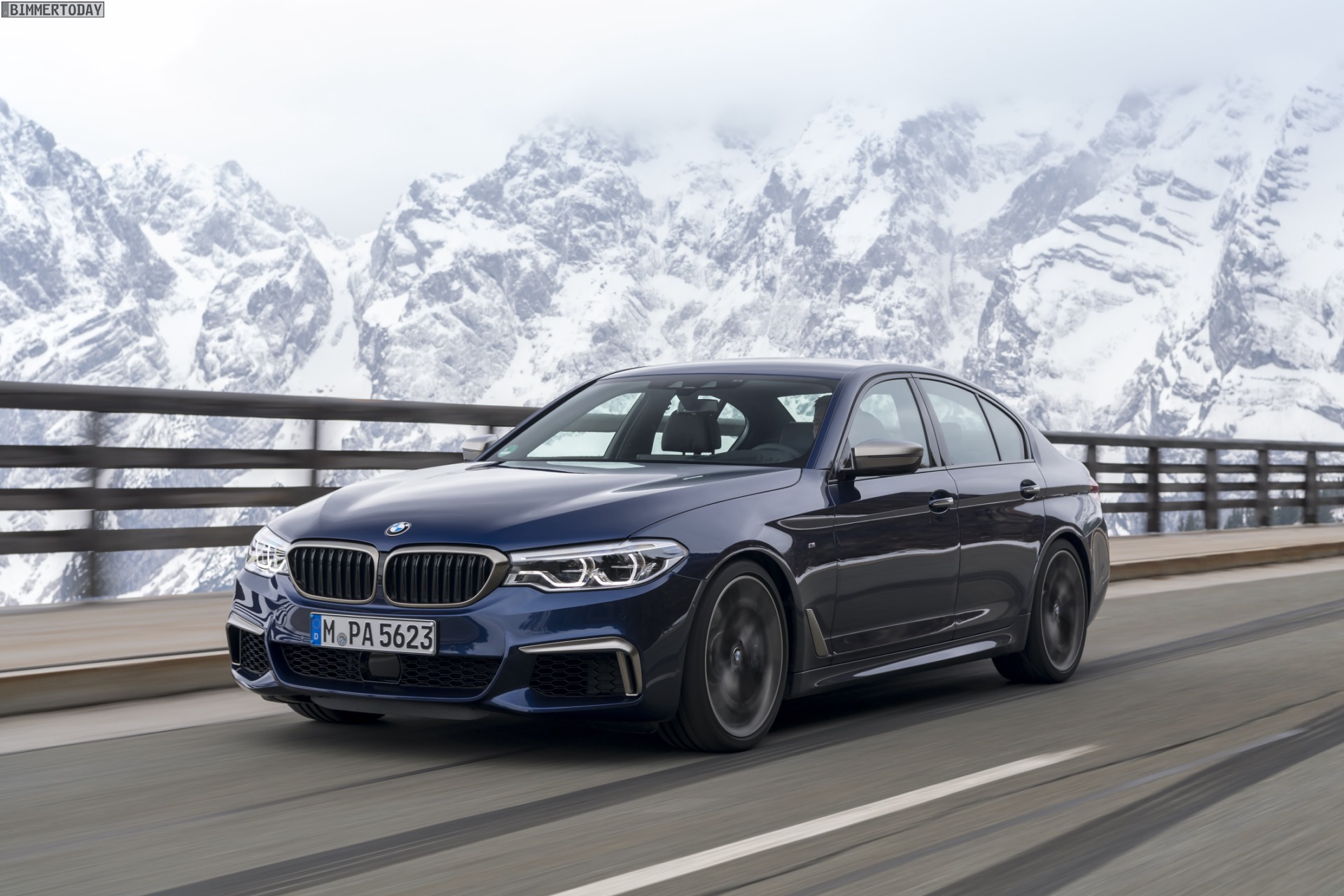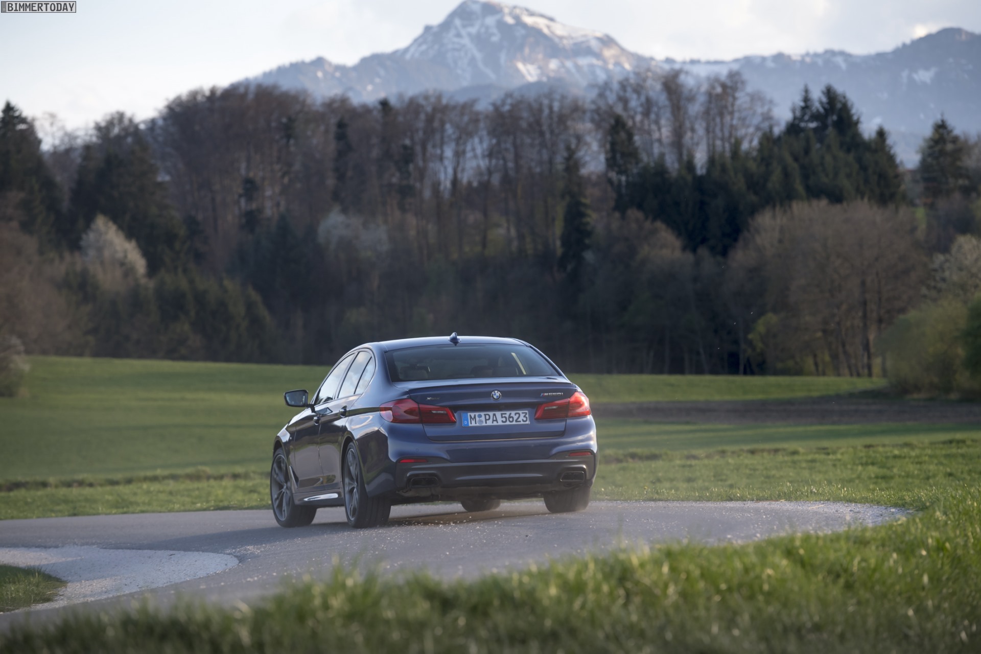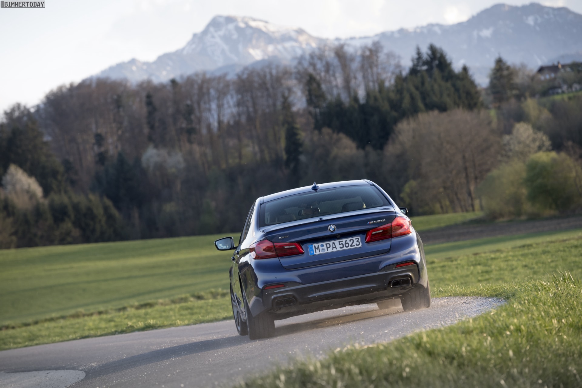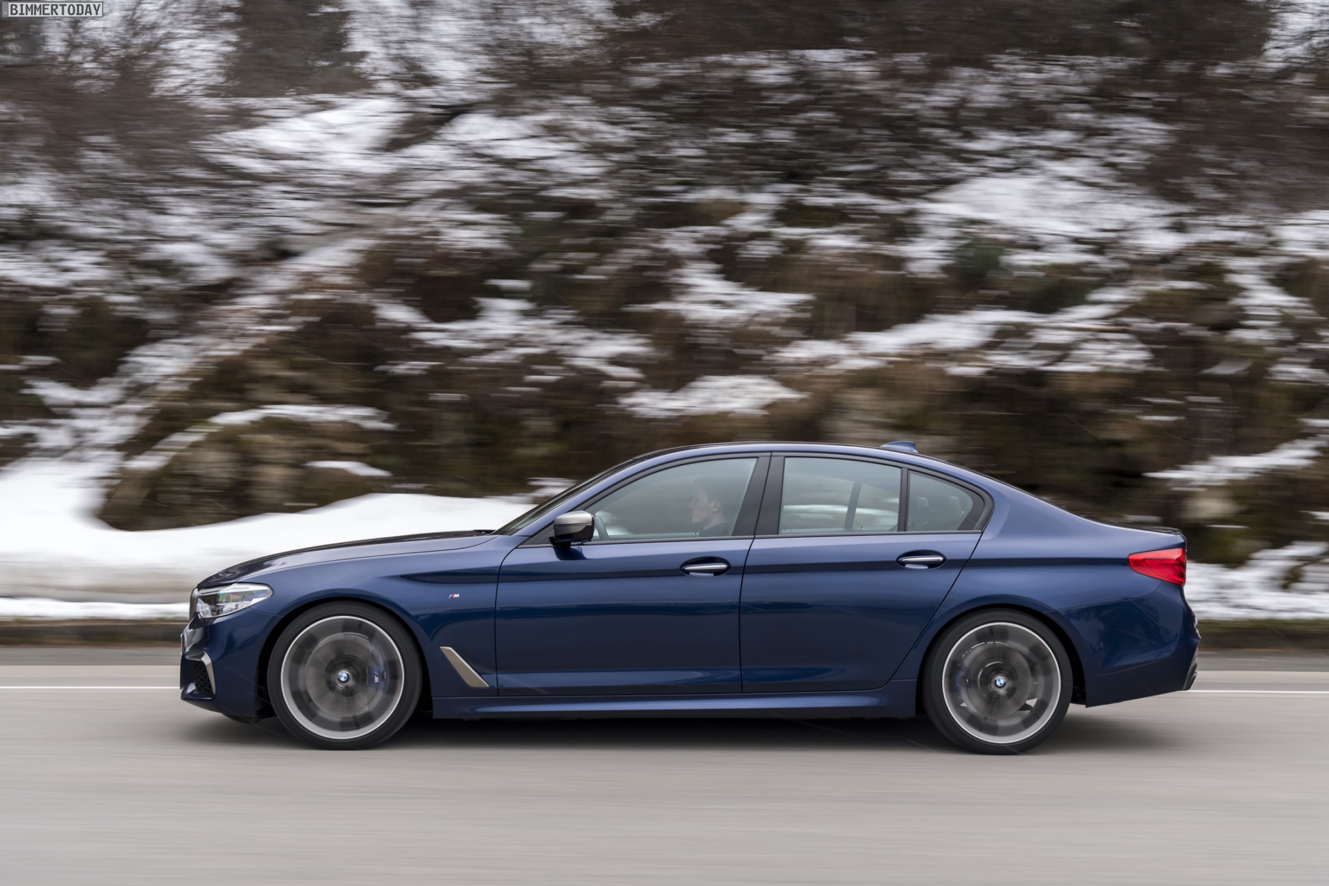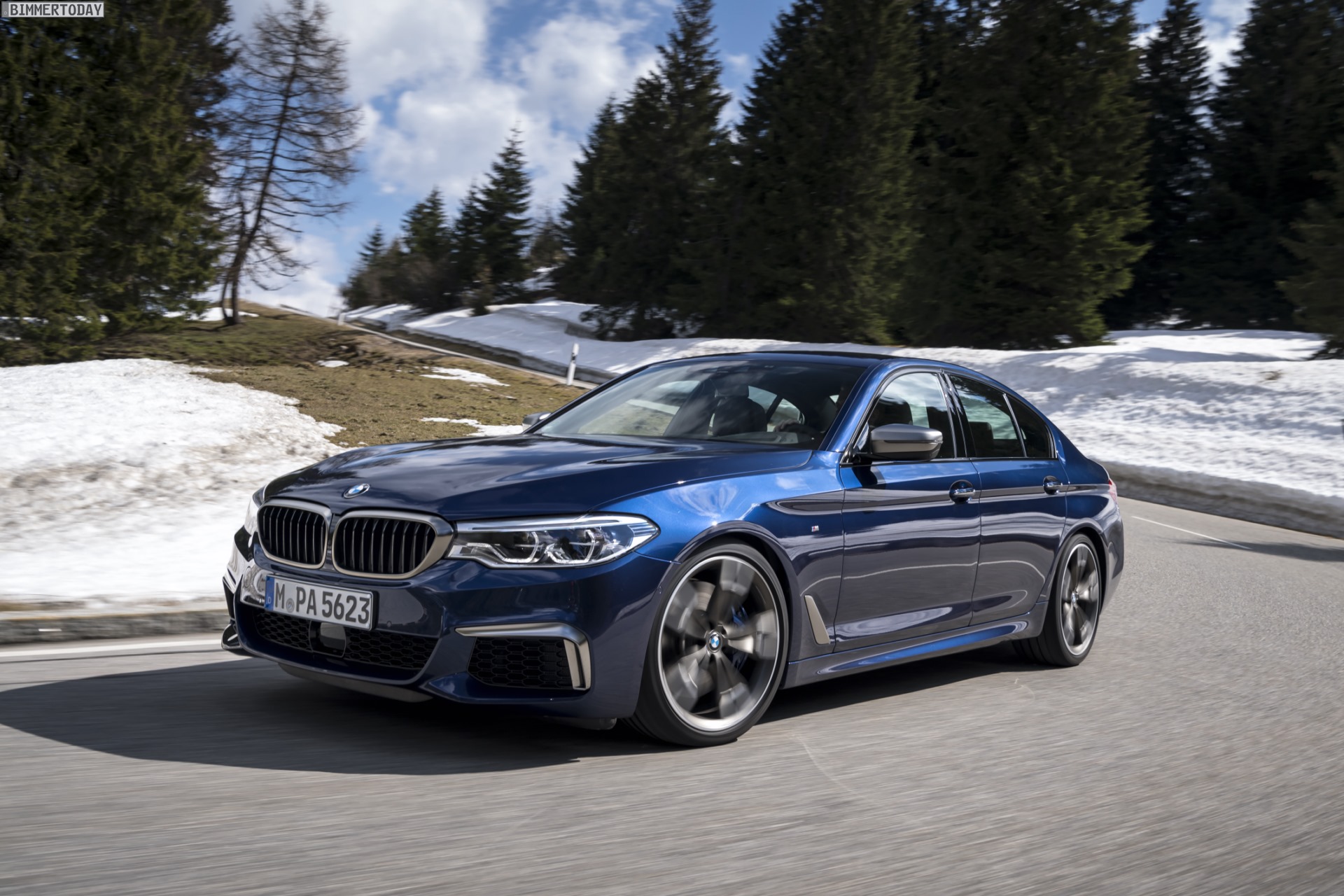 Sicher ist sicher: BMW M550i xDrive im April 2017, auf Winterreifen.