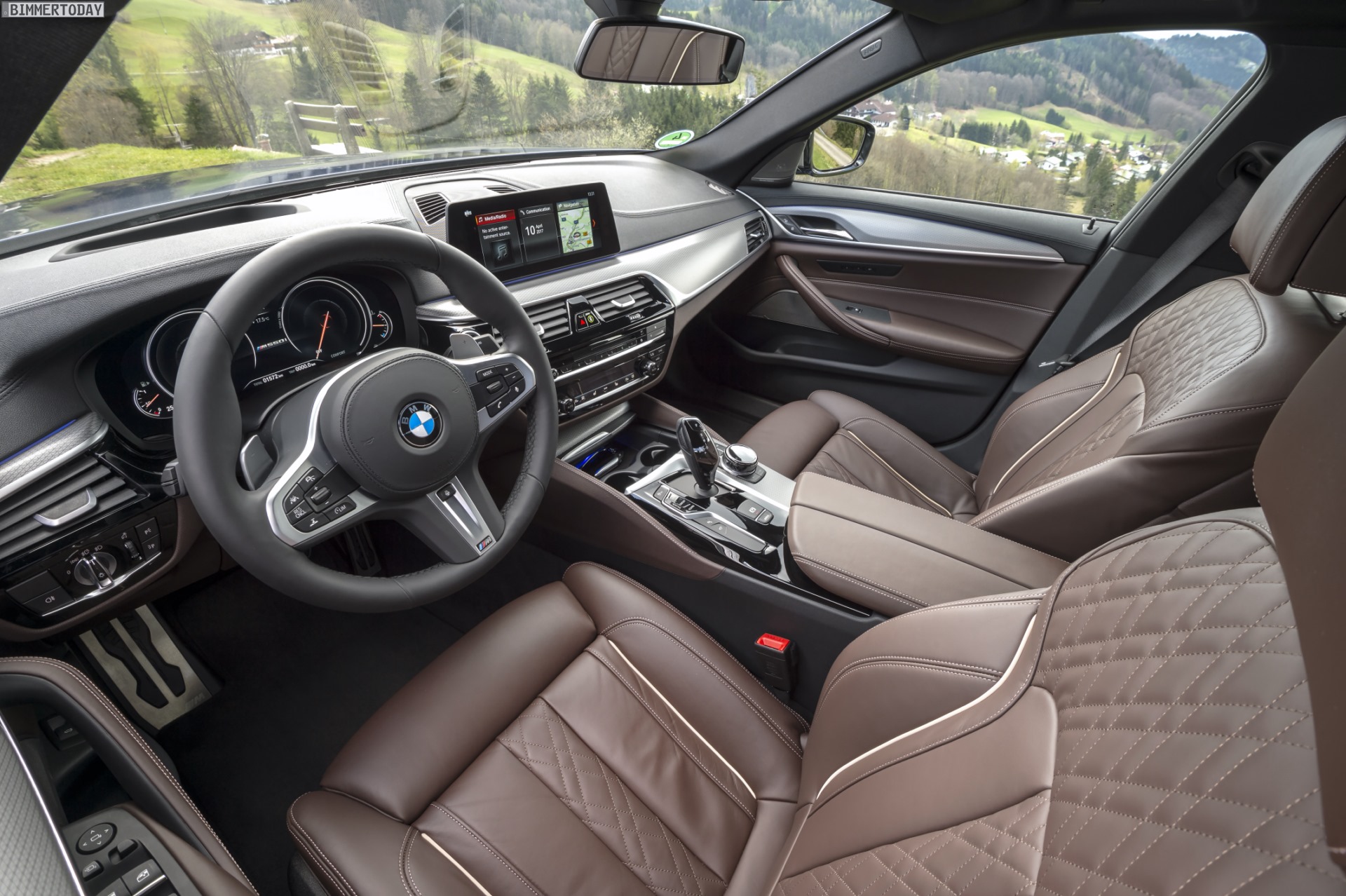 Dass der doppelt aufgeladene V8 im Bug nicht nur zurückhaltenden Verzicht beherrscht, sondern bei sportlicher Betätigung durchaus auch trinkfest ist, konnten wir auf unserer Fahrt ebenfalls feststellen. Wird der BMW M550i xDrive zügig bewegt, rückt der Normverbrauch von 8,9 Liter auf 100 Kilometer fast so schnell in weite Ferne wie die Allrad-Limousine unter Volllast. Aber die Lösung für alle, die viel Performance gerne mit wenig Durst kombinieren, ist ebenfalls schon startklar. Mit dem auch als Touring erhältlichen BMW M550d schicken die Münchner einen zweiten M Performance-Pfeil auf die Reise. Der wird mit 400 PS etwas langsamer, dafür aber auch im zügig gefahrenen Alltag mit unter 10 Liter Diesel auf 100 Kilometer zu bewegen sein – und liefert damit sogar noch mehr Zahlen, die zu Beginn unseres Jahrtausends beinahe undenkbar waren.