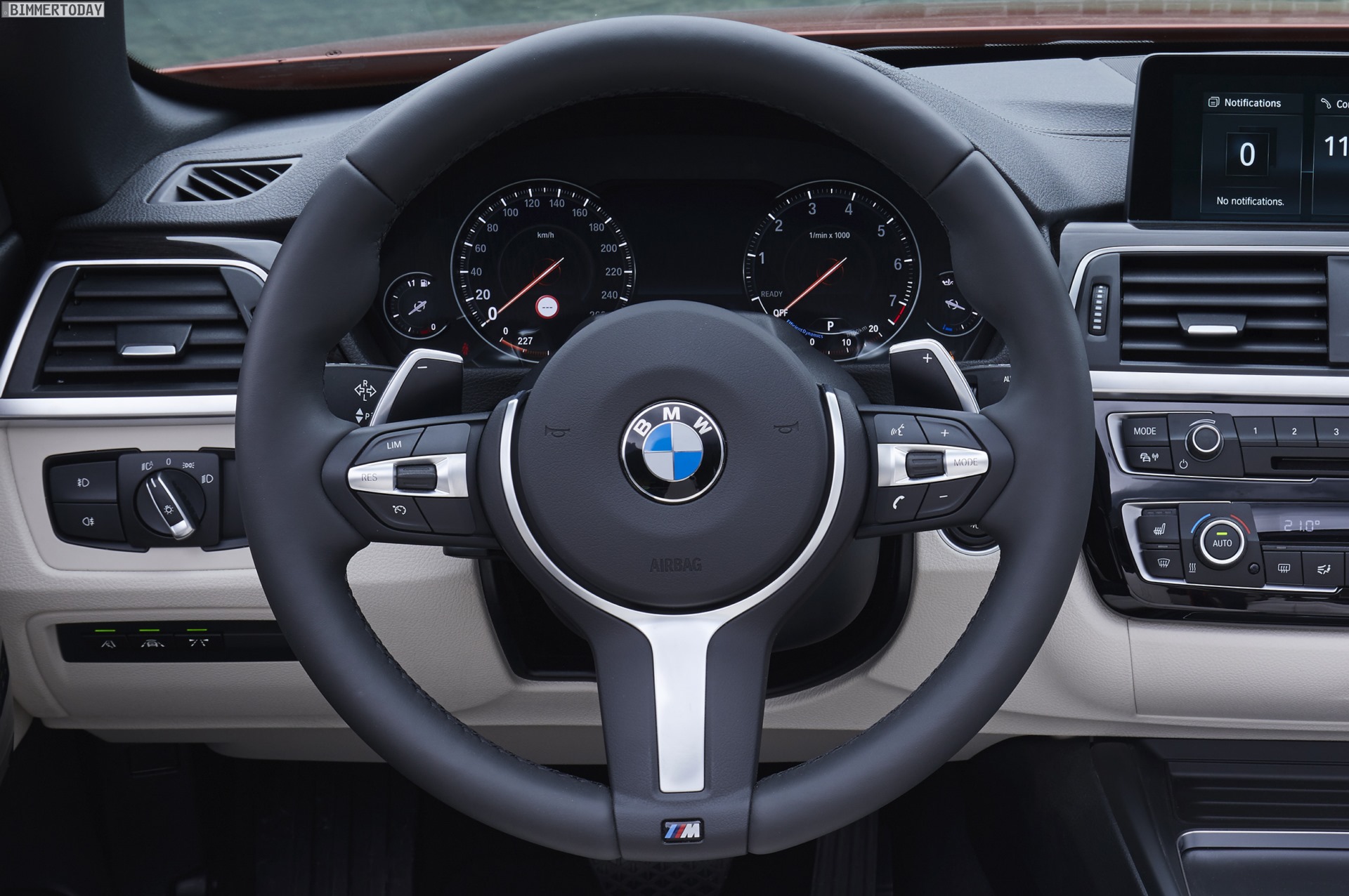 Hinter dem Lenkrad des BMW 4er Facelift 2017 versteckt sich ein neues Technik-Feature, das bald auch BMW 3er-Kunden begeistern soll. Das Multifunktionale Instrumenten-Display – oder kurz MFID – ersetzt die klassischen analogen Rundinstrumente und wirkt nicht nur hochmodern, es bietet auch einige zusätzliche Optionen. Unsere neuen Fotos zeigen die digitalen Anzeigen des 8,8 Zoll großen Black Panel-Displays in verschiedenen Fahrmodi, auch während der Fahrt.