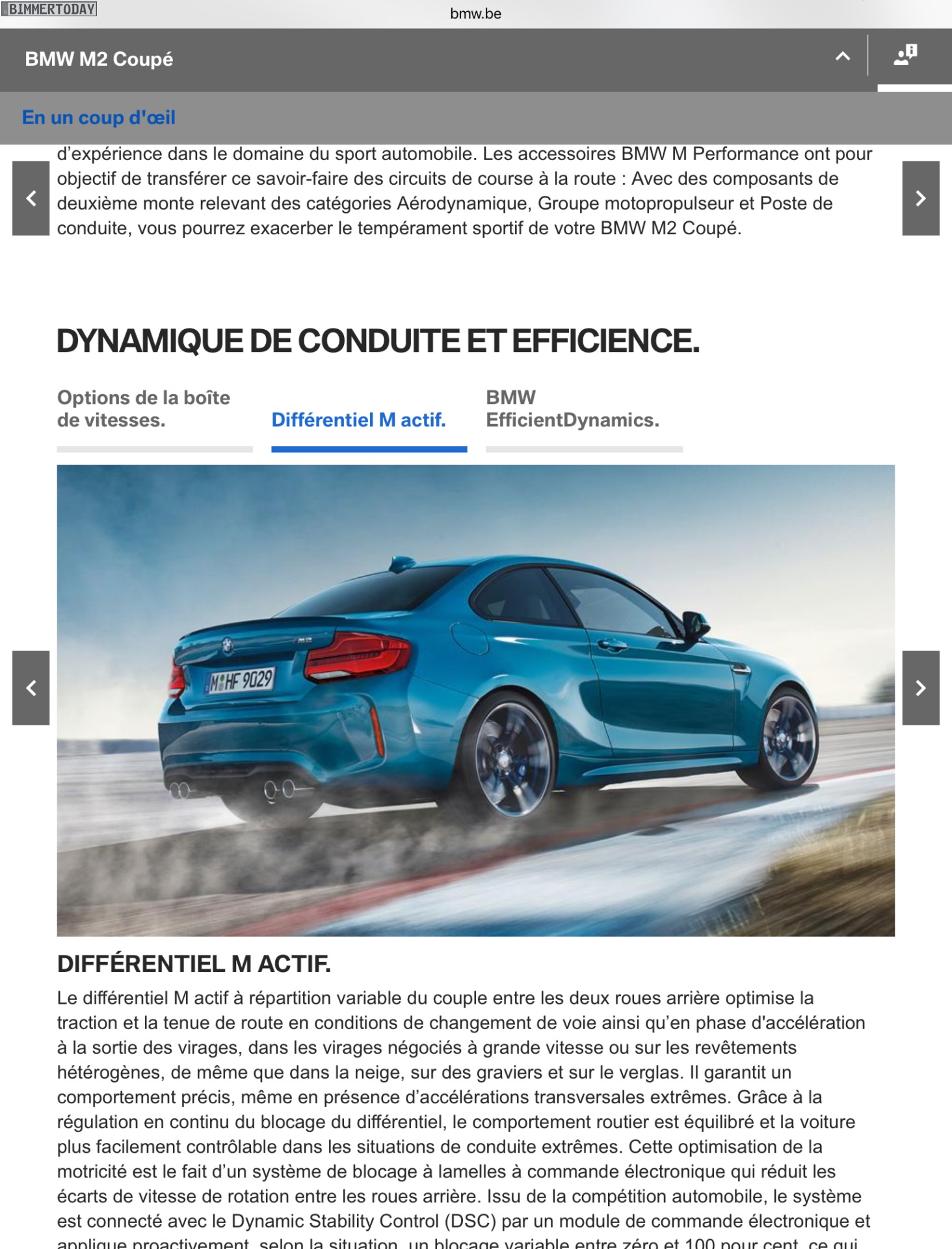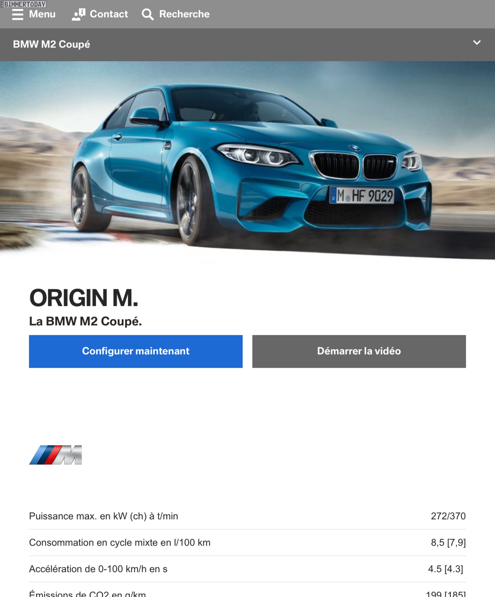 Früher als geplant wurden die ersten Fotos vom BMW M2 Facelift 2017 auf der offiziellen Website von bmw.be veröffentlicht. Der BMW M2 F87 LCI ist auf der iPad-Version der belgischen BMW-Seite bereits in voller Pracht abgebildet, hier wurden offenbar die bisherigen Motive durch bearbeitete Bilder mit geänderten Scheinwerfern ausgetauscht. Wir erhalten so den ersten Blick auf die neuen Voll-LED-Scheinwerfer des BMW 2er Facelift 2017, denn natürlich wird die Lichttechnik auch bei den schwächeren Varianten von 2er Coupé und Cabrio Einzug halten.