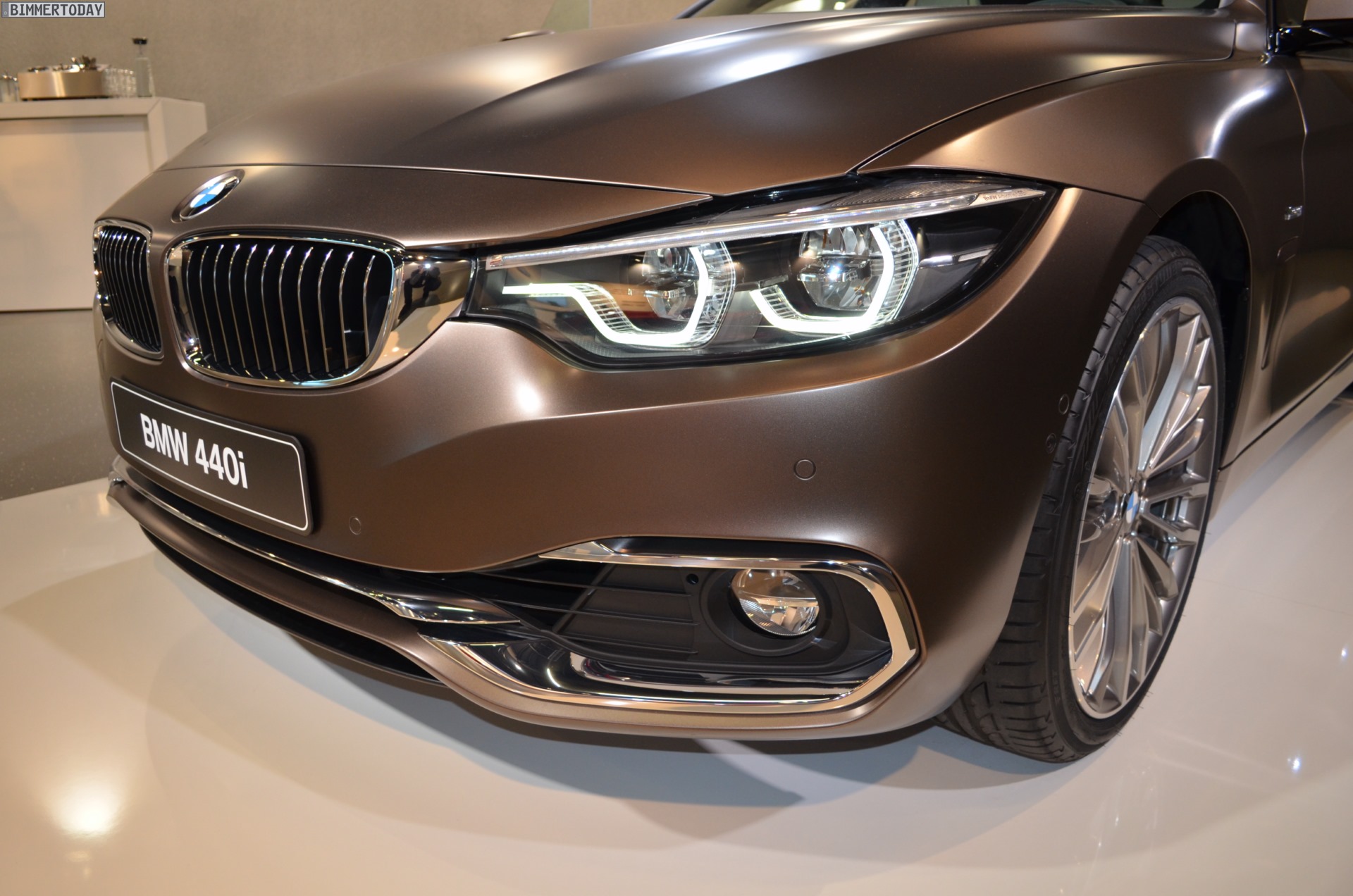 Auf unseren Fotos trägt das BMW 4er Gran Coupé Facelift 2017 die exklusiv der Luxury Line vorbehaltenen Leichtmetallräder Vielspeiche 708 in 19 Zoll. Für die Individual-Lackierung Frozen Bronze berechnet BMW einen Aufpreis von 3.300 Euro, außerdem befindet sich mit Frozen Silver noch eine weitere matte Farbe im Programm für das 4er Gran Coupé. Ausgefallenere Wünsche können gegen höhere Preise natürlich auch nach dem Facelift direkt bei BMW Individual bestellt werden.