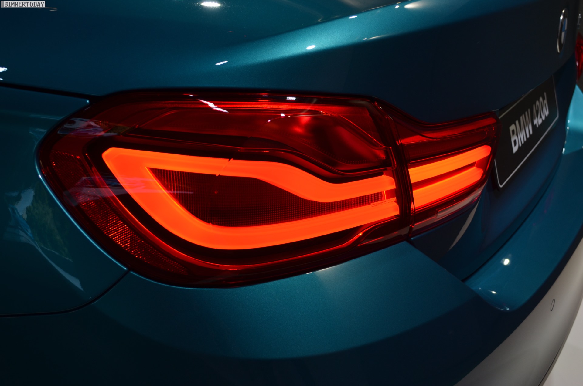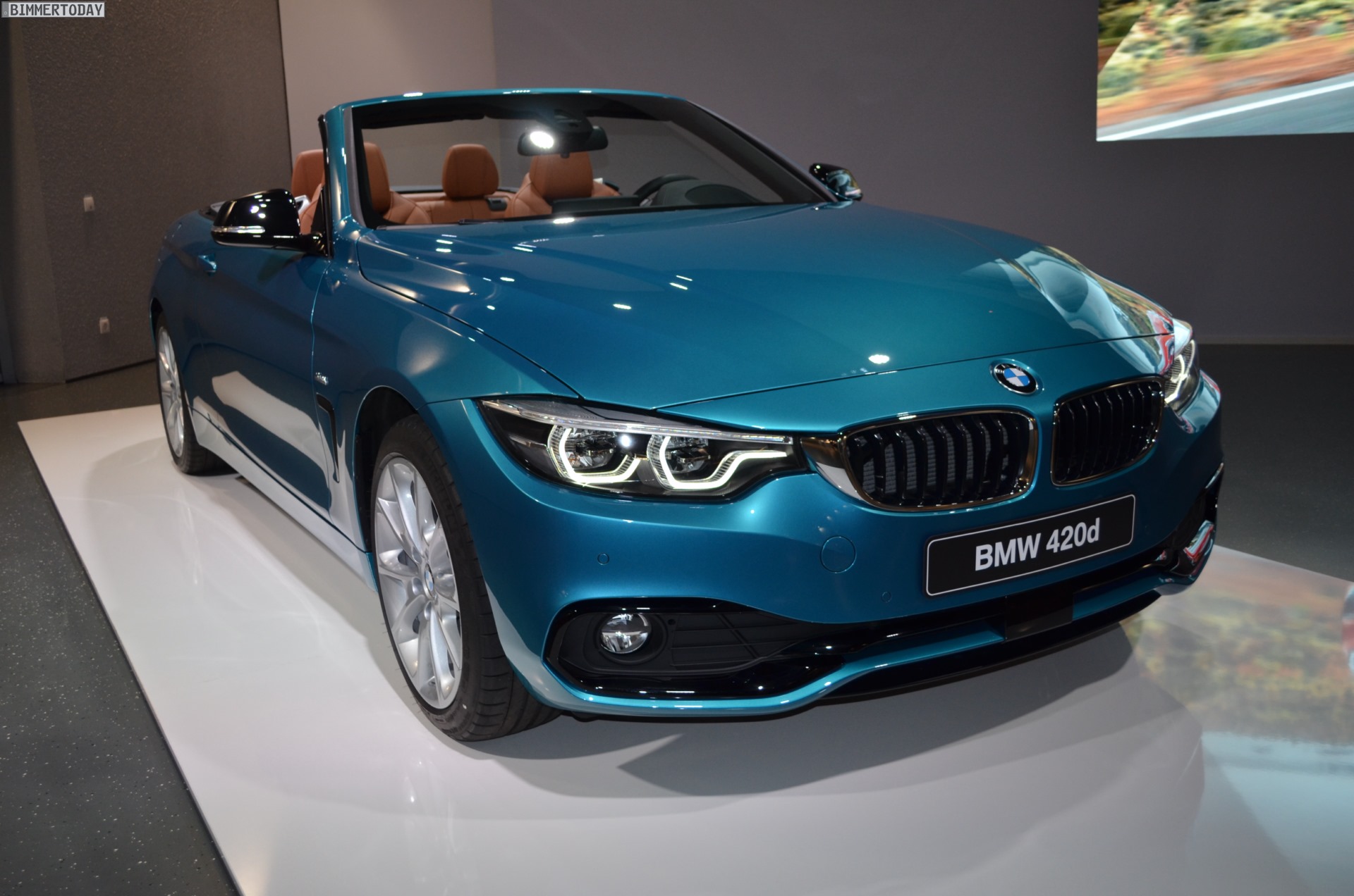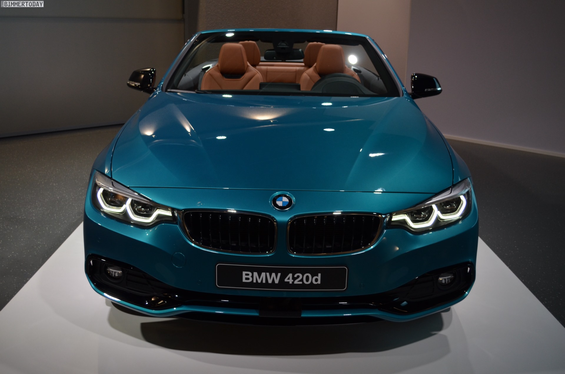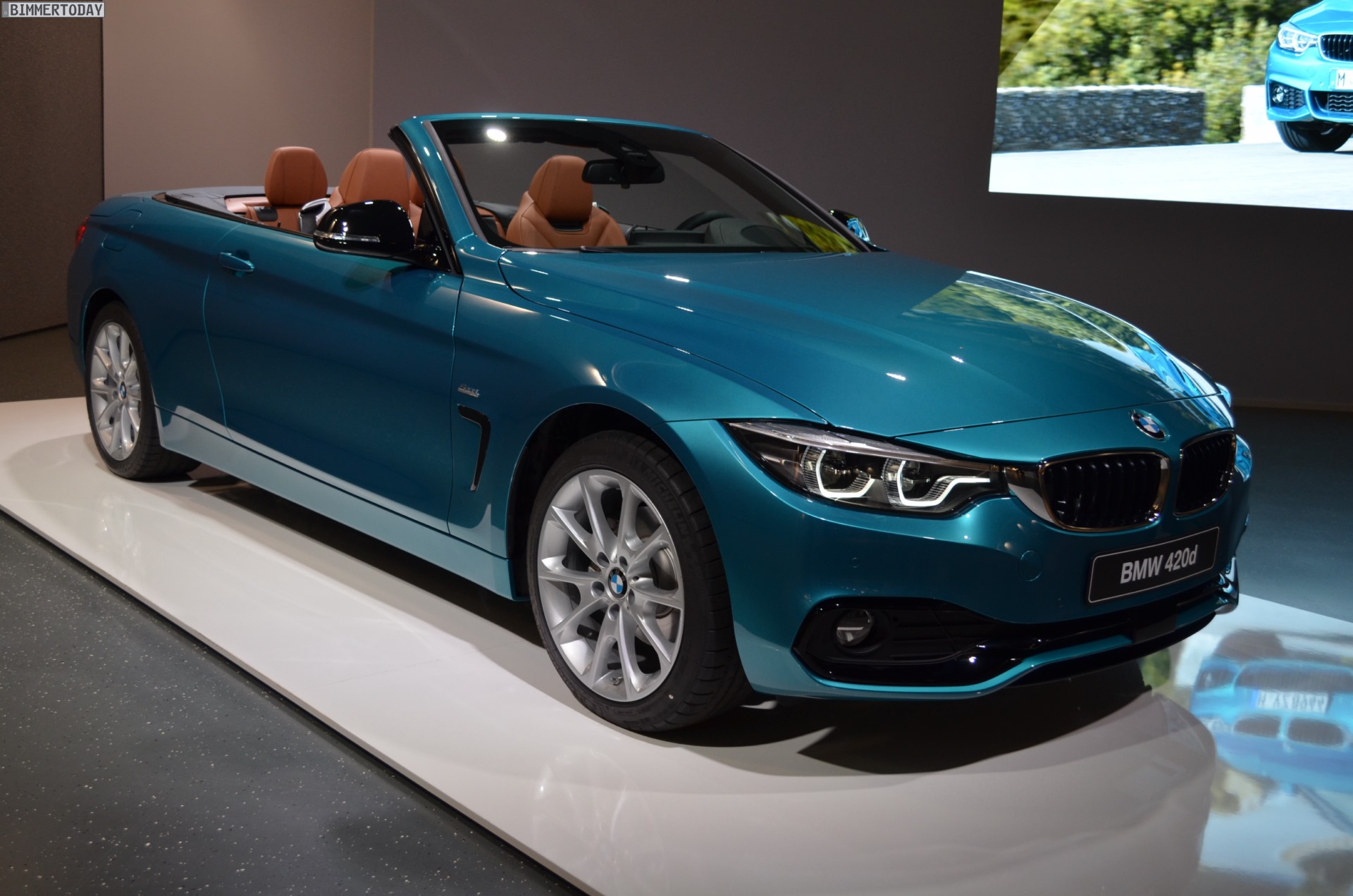 Mit dem BMW 4er Facelift 2017 feiert auch die neue Farbe Snapper Rocks Blue ihr Debüt. Auf allen bisherigen Fotos haben wir die nach einem beliebten Surfer-Strand in Australien benannte Lackierung auf dem Coupé gesehen, nun zeigen unsere Fotos auch das BMW 4er Cabrio 2017 in dem kräftigen Türkis-Blau. Die offene Variante der 4er-Reihe steht in Deutschland für rund 25 Prozent der verkauften 4er und liegt damit zwar klar hinter dem dominierenden Gran Coupé, aber auch relativ deutlich vor dem zweitürigen Coupé, das nur auf einen Anteil von 15 Prozent kommt.