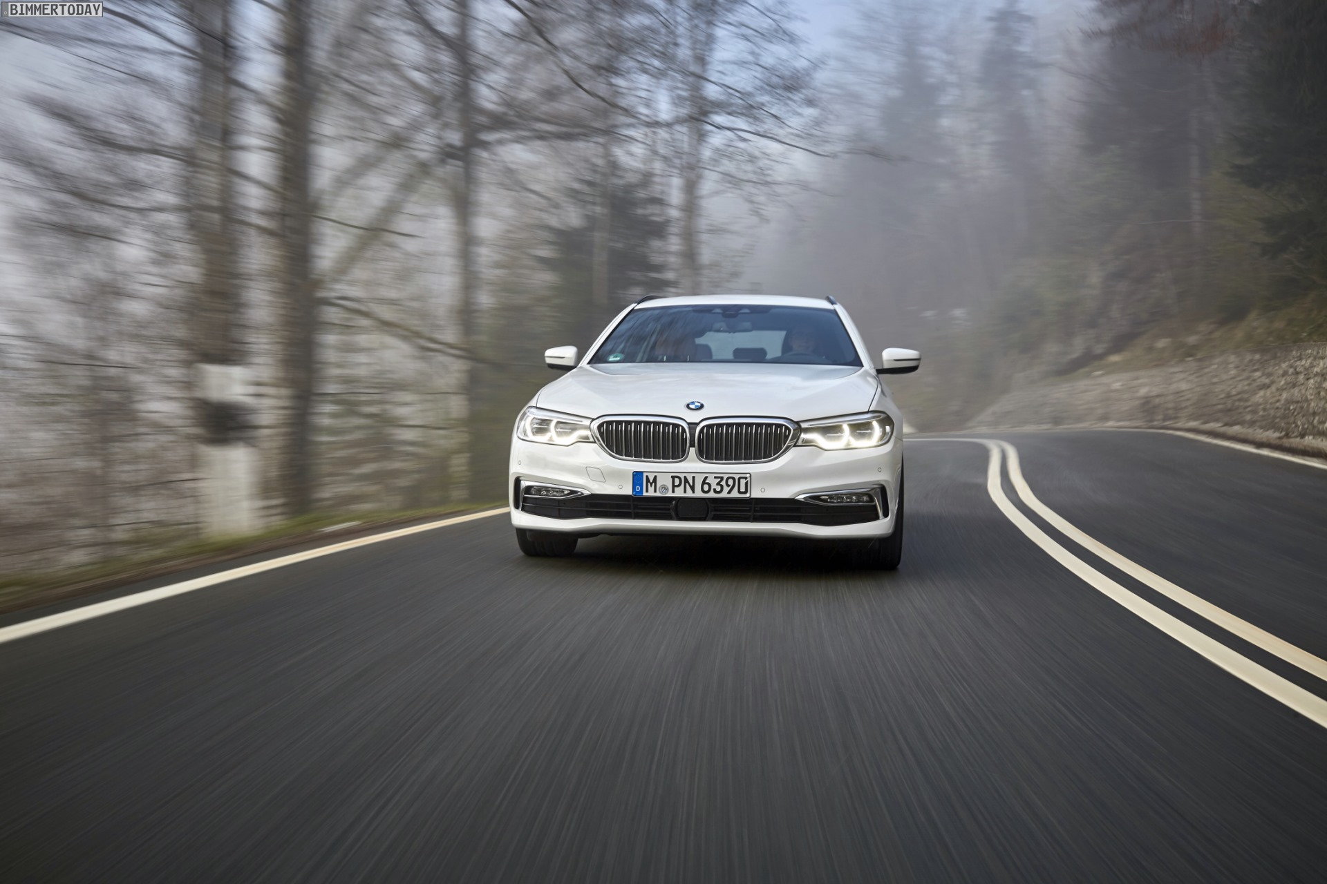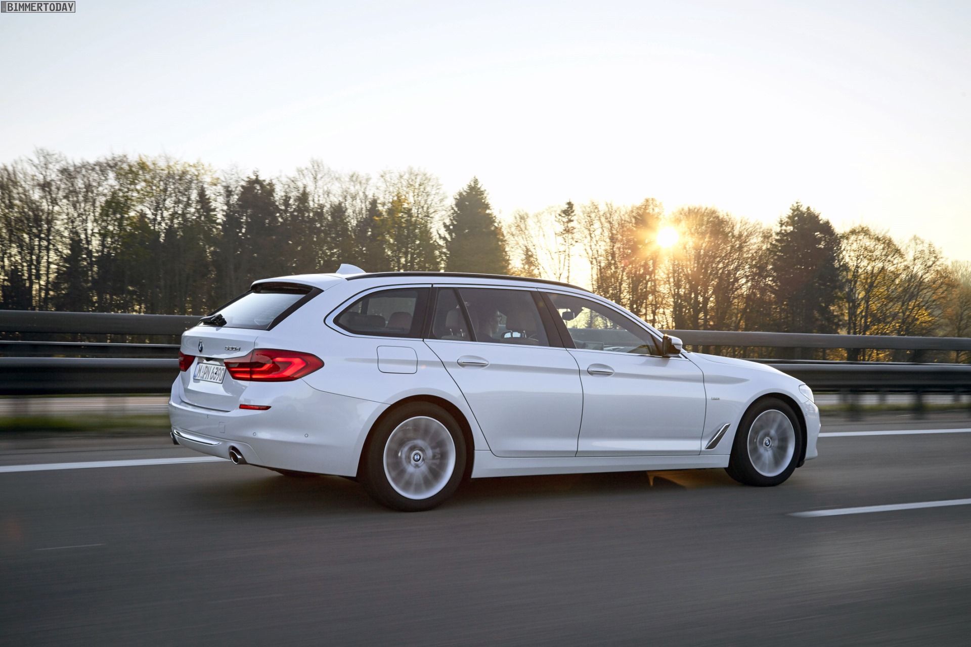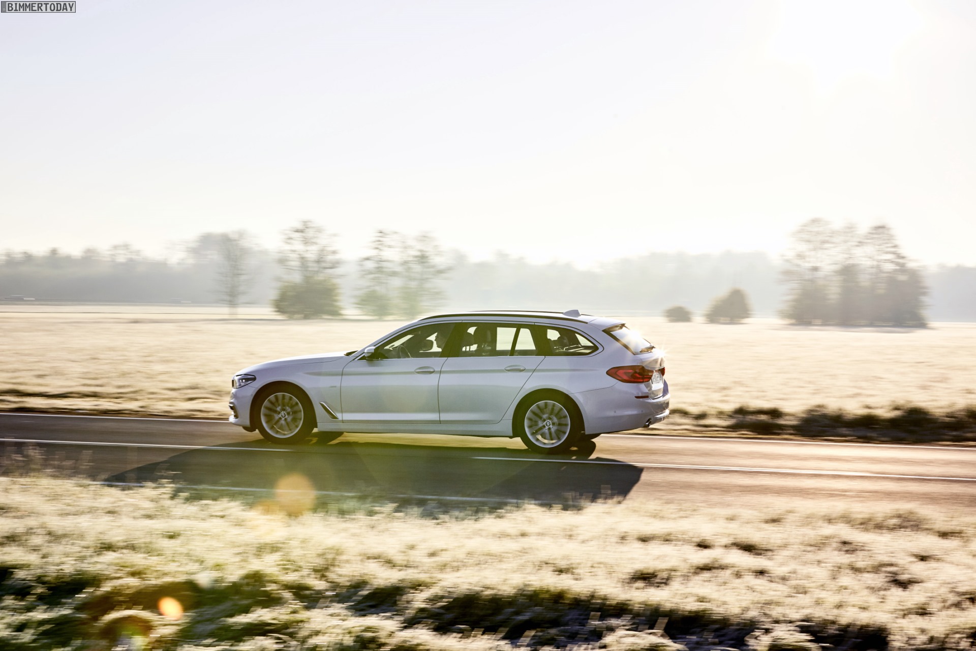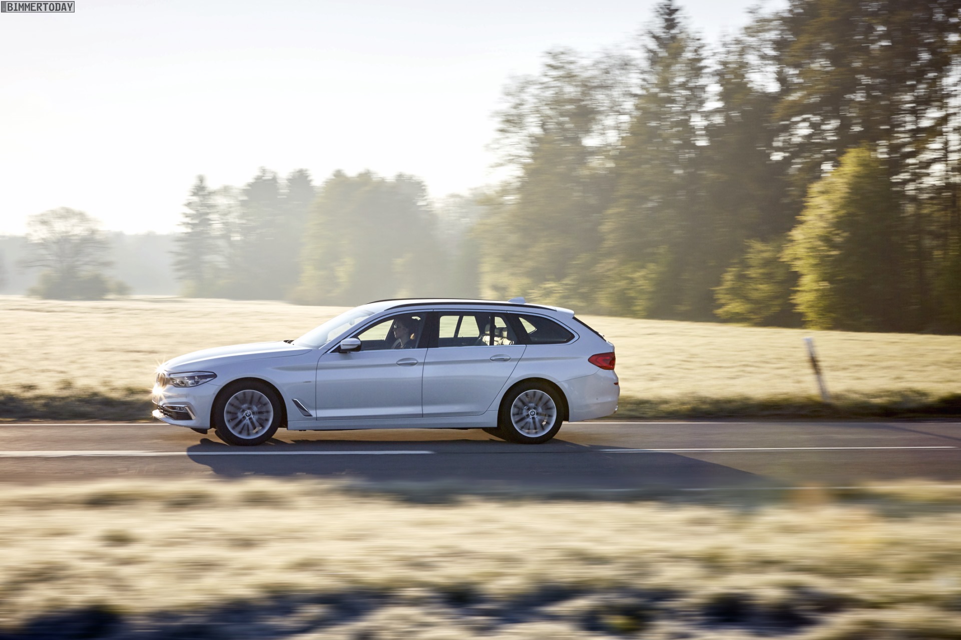 Damit dieses Ziel erreicht werden kann, haben die Entwickler weder Kosten noch Mühen gescheut. Im Vergleich zum Vorgänger ist der BMW 5er Touring 2017 um bis zu 100 Kilogramm leichter, dennoch konnte die Verwindungssteifigkeit nochmals um ein paar Prozentpunkte gesteigert werden. Der Radstand wuchs ebenso wie die Spurweite an Vorder- und Hinterachse, um den Fahrwerksentwicklern eine agilere und zugleich noch komfortablere Abstimmung zu ermöglichen. Viel Feinarbeit im Windkanal hat außerdem dazu beigetragen, dass der cW-Wert des Kombis auf bis zu 0,27 reduziert werden konnte.