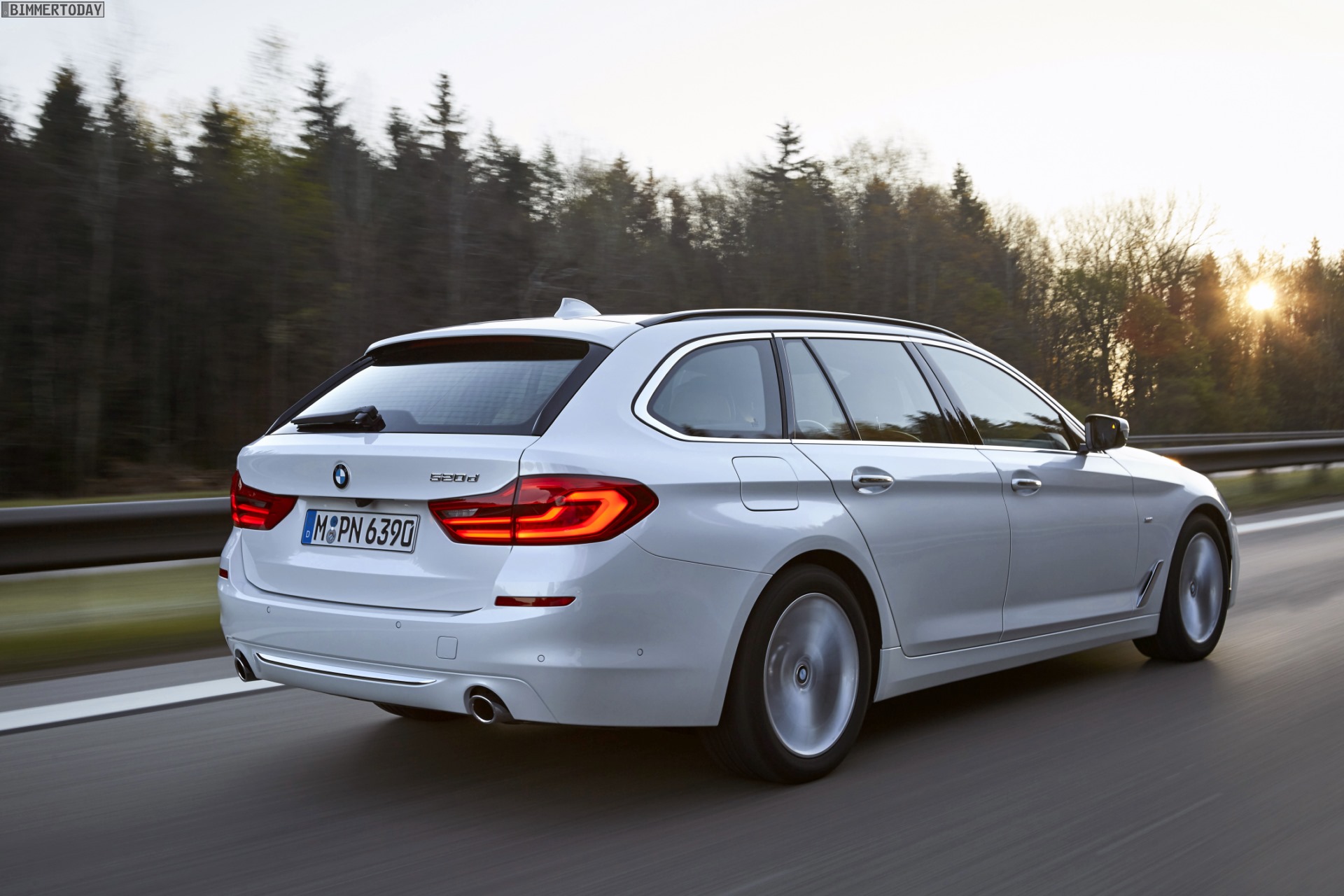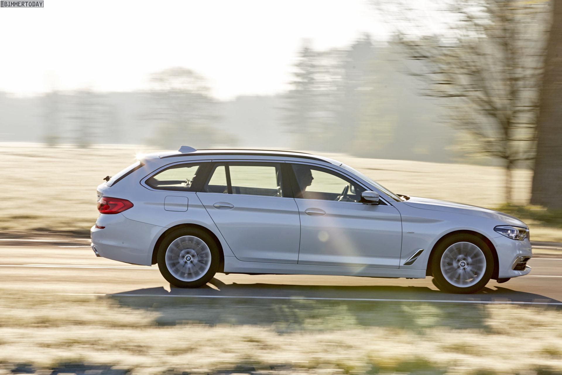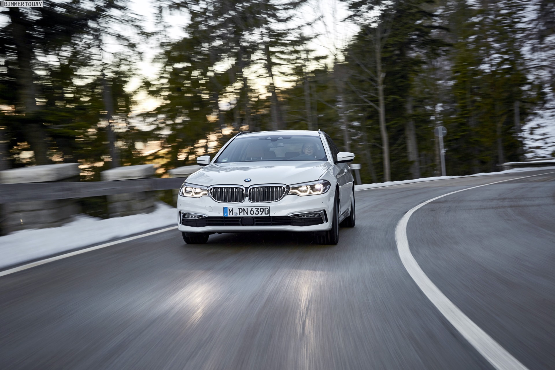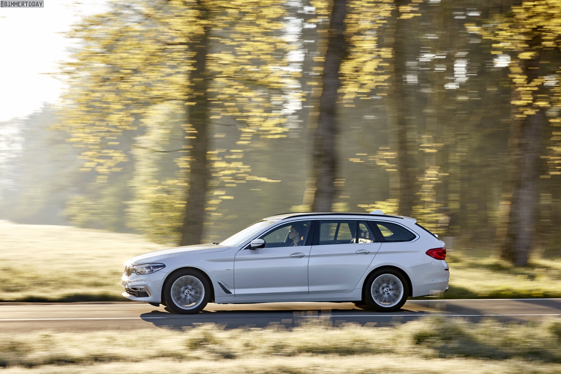 Damit dieses Ziel erreicht werden kann, haben die Entwickler weder Kosten noch Mühen gescheut. Im Vergleich zum Vorgänger ist der BMW 5er Touring 2017 um bis zu 100 Kilogramm leichter, dennoch konnte die Verwindungssteifigkeit nochmals um ein paar Prozentpunkte gesteigert werden. Der Radstand wuchs ebenso wie die Spurweite an Vorder- und Hinterachse, um den Fahrwerksentwicklern eine agilere und zugleich noch komfortablere Abstimmung zu ermöglichen. Viel Feinarbeit im Windkanal hat außerdem dazu beigetragen, dass der cW-Wert des Kombis auf bis zu 0,27 reduziert werden konnte.