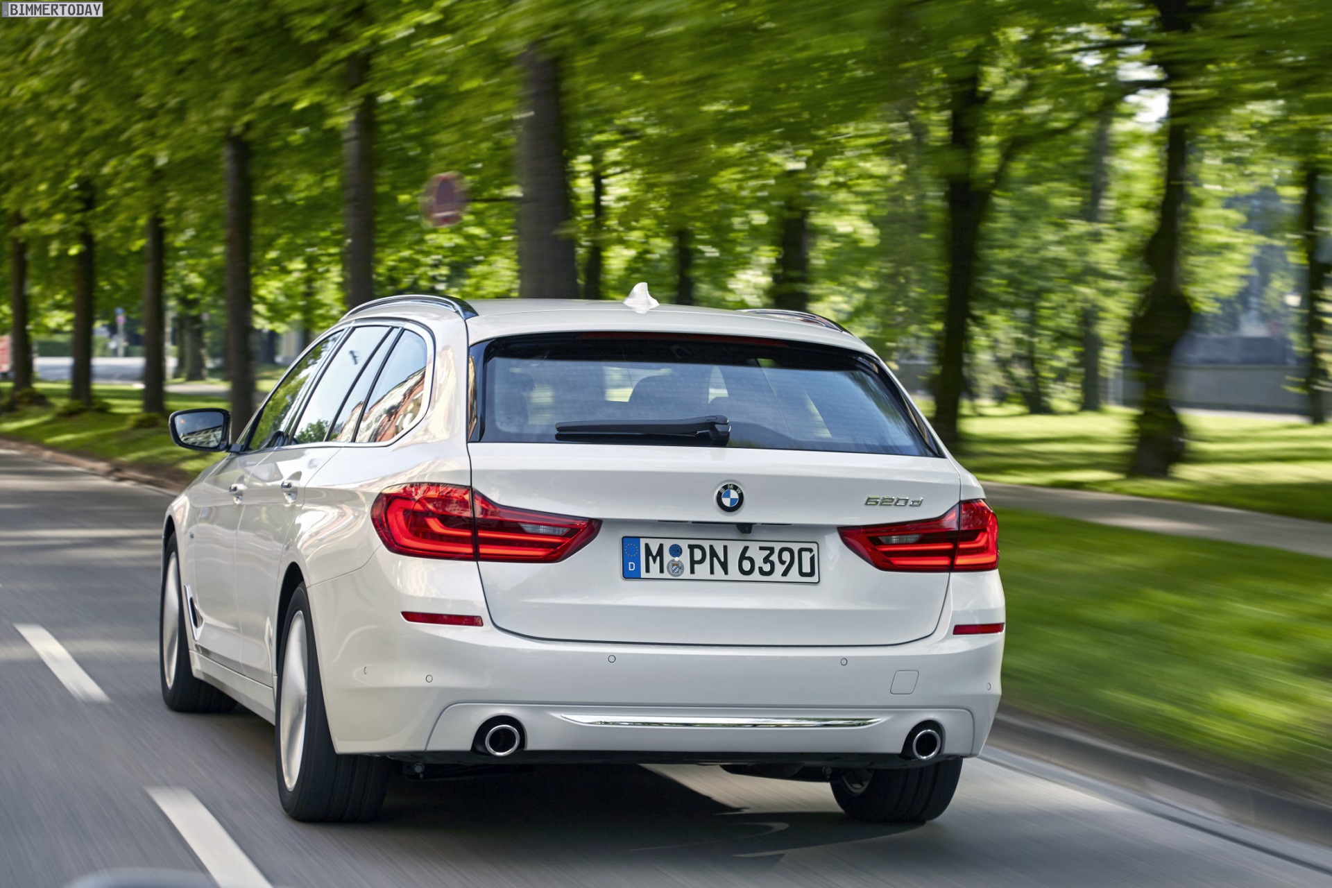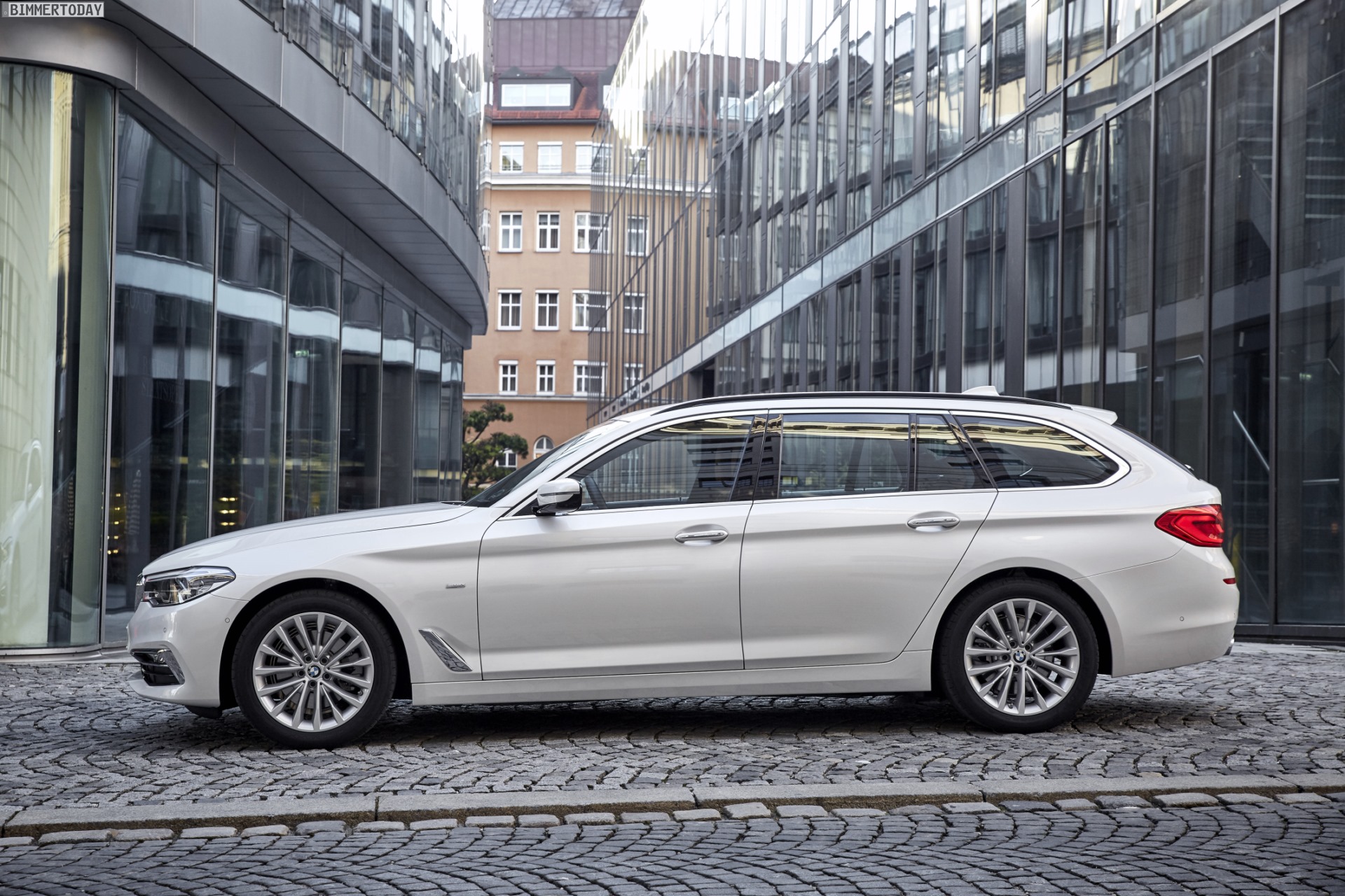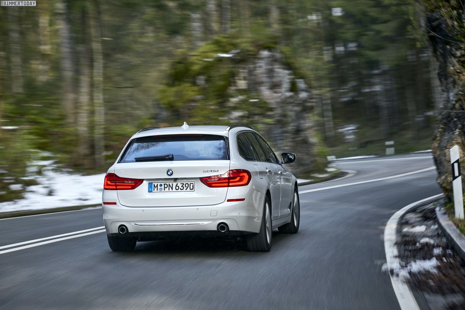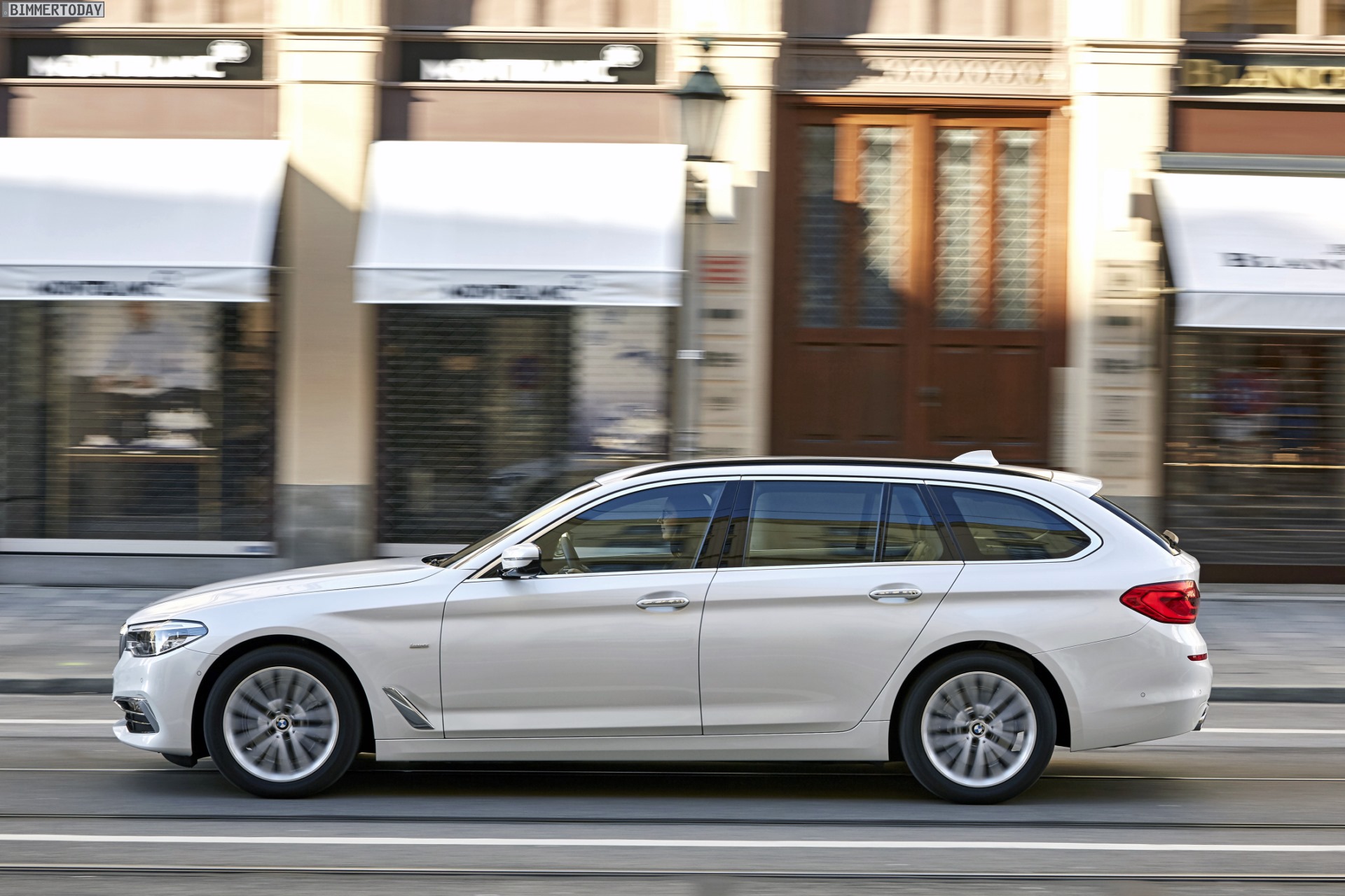 Damit dieses Ziel erreicht werden kann, haben die Entwickler weder Kosten noch Mühen gescheut. Im Vergleich zum Vorgänger ist der BMW 5er Touring 2017 um bis zu 100 Kilogramm leichter, dennoch konnte die Verwindungssteifigkeit nochmals um ein paar Prozentpunkte gesteigert werden. Der Radstand wuchs ebenso wie die Spurweite an Vorder- und Hinterachse, um den Fahrwerksentwicklern eine agilere und zugleich noch komfortablere Abstimmung zu ermöglichen. Viel Feinarbeit im Windkanal hat außerdem dazu beigetragen, dass der cW-Wert des Kombis auf bis zu 0,27 reduziert werden konnte.