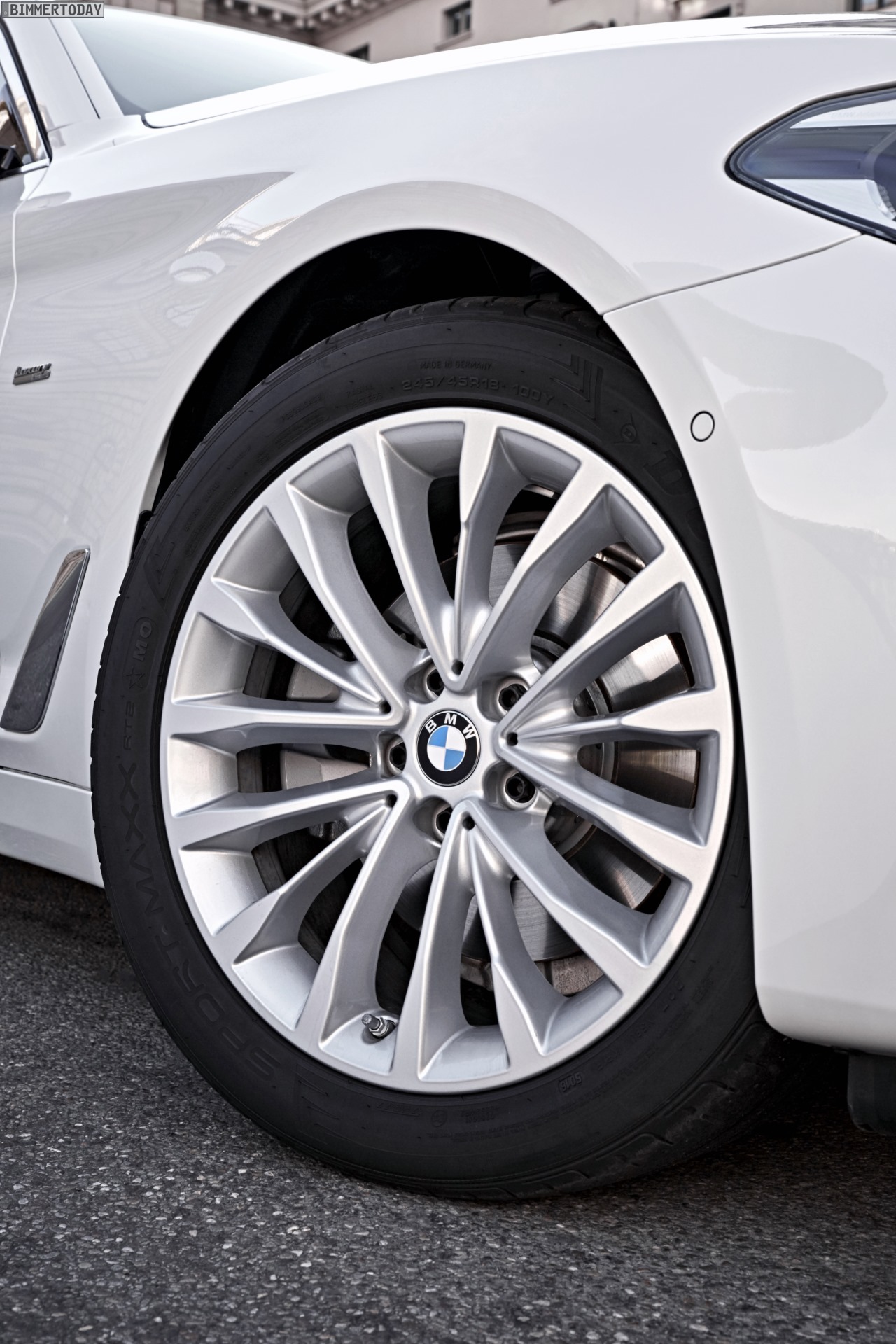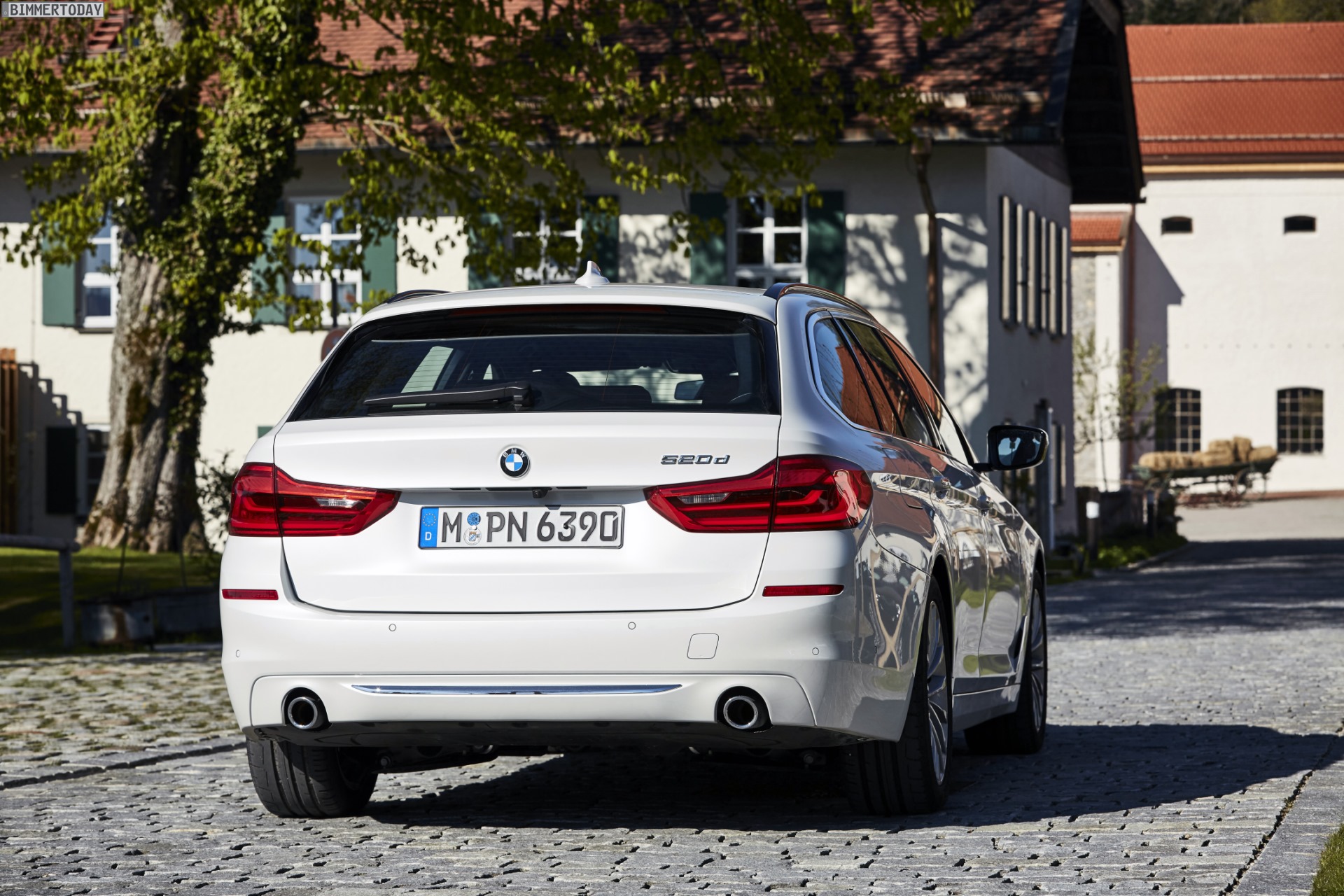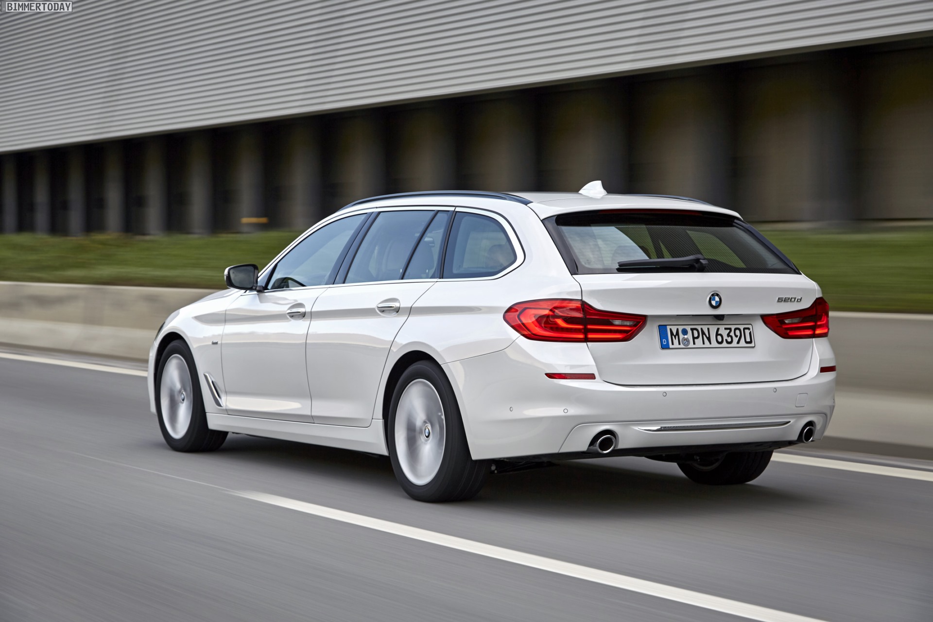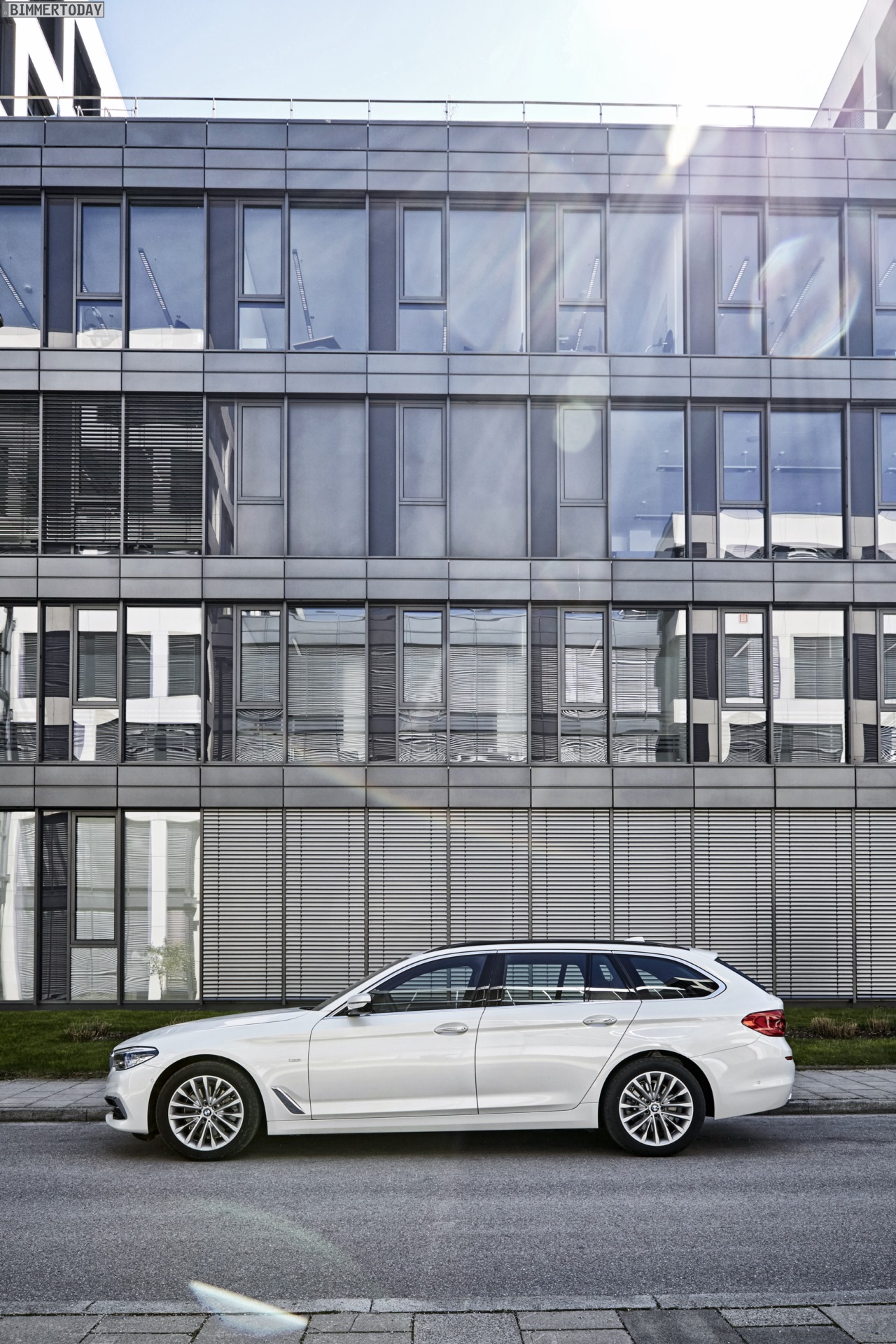 Damit dieses Ziel erreicht werden kann, haben die Entwickler weder Kosten noch Mühen gescheut. Im Vergleich zum Vorgänger ist der BMW 5er Touring 2017 um bis zu 100 Kilogramm leichter, dennoch konnte die Verwindungssteifigkeit nochmals um ein paar Prozentpunkte gesteigert werden. Der Radstand wuchs ebenso wie die Spurweite an Vorder- und Hinterachse, um den Fahrwerksentwicklern eine agilere und zugleich noch komfortablere Abstimmung zu ermöglichen. Viel Feinarbeit im Windkanal hat außerdem dazu beigetragen, dass der cW-Wert des Kombis auf bis zu 0,27 reduziert werden konnte.