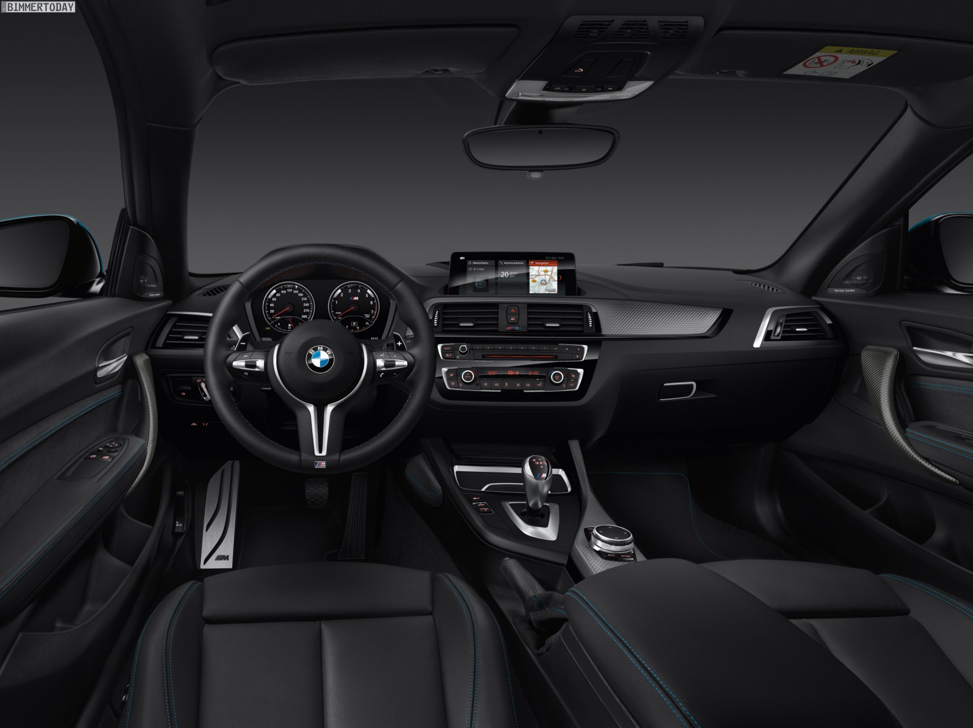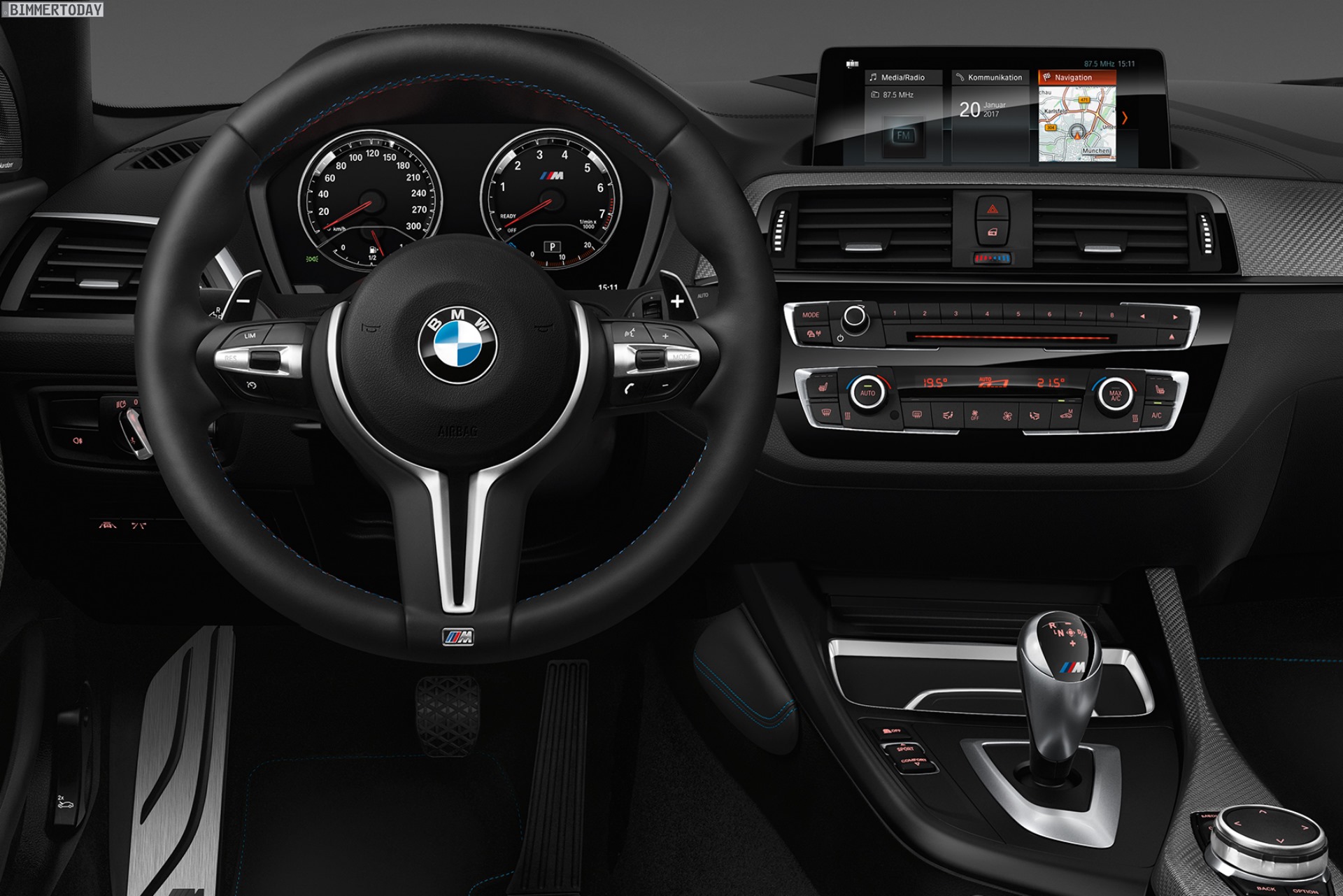 Genau wie viele andere Modelle erhält auch der BMW M2 2017 die jüngste iDrive-Generation mit Touchscreen und Kachel-Design. Die Reihenfolge der sechs Kacheln kann ganz nach den Vorstellungen des Kunden geändert werden. Die Darstellung der Kacheln wird schon im Hauptmenü mit Live-Infos gefüttert, weshalb sich sogar ohne Auswahl des entsprechenden Menüpunkts erste Infos zum Wetter am Zielort, zur aktuelle Position, zur gerade gespielten Musik und vielen weiteren Details ablesen lassen.