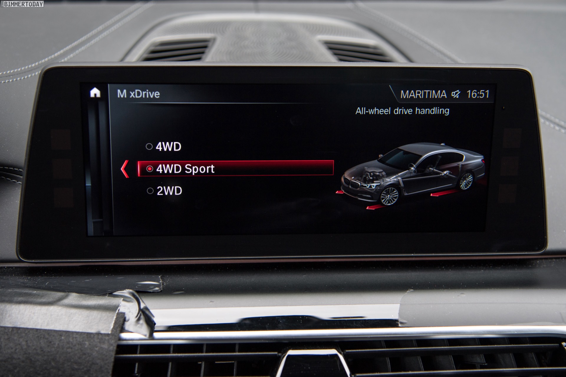 Wer sich auch in einer Power-Limousine noch mehr Agilität wünscht, kann im M Dynamic Mode (MDM) in den Modus 4WD Sport wechseln. Mit diesem Setup wird noch mehr Kraft an die Hinterräder geschickt und außerdem mehr Radschlupf zugelassen. Das Resultat ist die M-typische Agilität, allerdings gepaart mit den Traktionsvorteilen eines dynamischen Allradantriebs. Die Abstimmung ist auf den Rennstrecken-Einsatz bei Trockenheit ausgelegt und dürfte für die meisten Fahrer die optimale Einstellung für die Jagd nach Rundenzeiten darstellen.