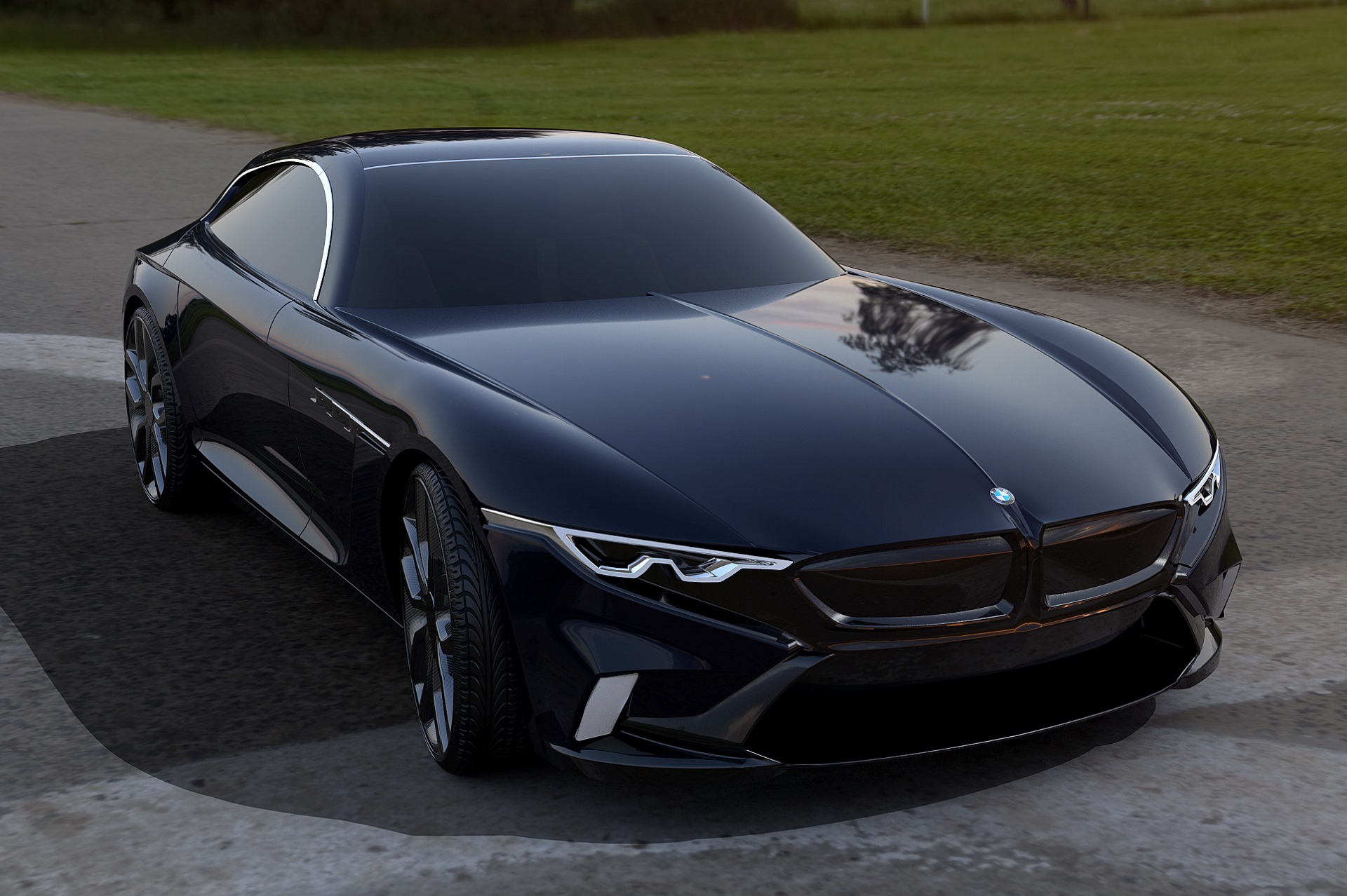 In der Seitenansicht begeistert der moderne BMW Z3 Coupé-Entwurf mit Proportionen, wie man sie fast nur vom Vorbild aus den 90er-Jahren kennt. Die lange Motorhaube bietet genügend Platz für einen Reihensechszylinder, das Greenhouse zitiert das Original und die elegante Form der rahmenlosen Türen weckt sofort das Bedürfnis, einzusteigen. Natürlich profitiert das virtuelle Fahrzeug auch von seinen riesigen Felgen, die die Radhäuser perfekt ausfüllen.