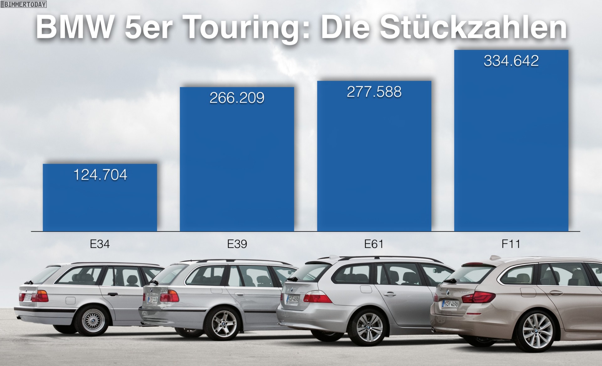 Bisher konnte der Absatz des BMW 5er Touring in jeder Generation gesteigert werden und natürlich soll auch die fünfte Generation der bisher erfolgreichste 5er Touring aller Zeiten werden. Um das zu schaffen, müssen in seinem rund siebenjährigem Lebenszyklus durchschnittlich fast 50.000 Einheiten pro Jahr verkauft werden, denn sein Vorgänger der Generation F11 hat die Latte mit 334.642 verkauften Fahrzeugen ziemlich hoch gelegt.