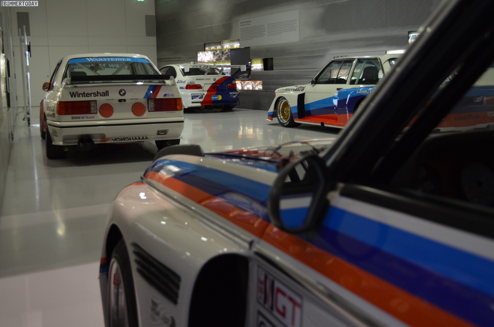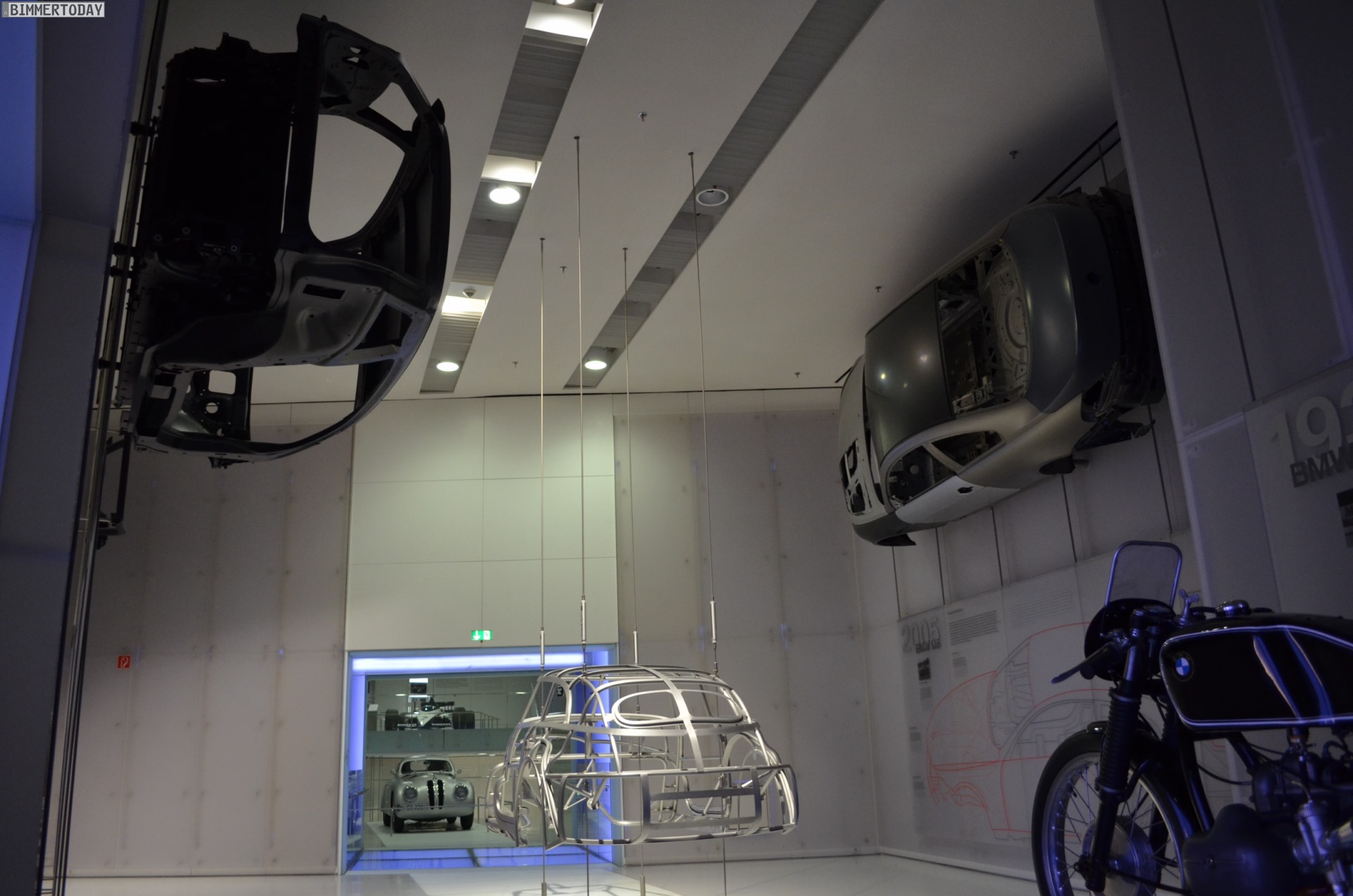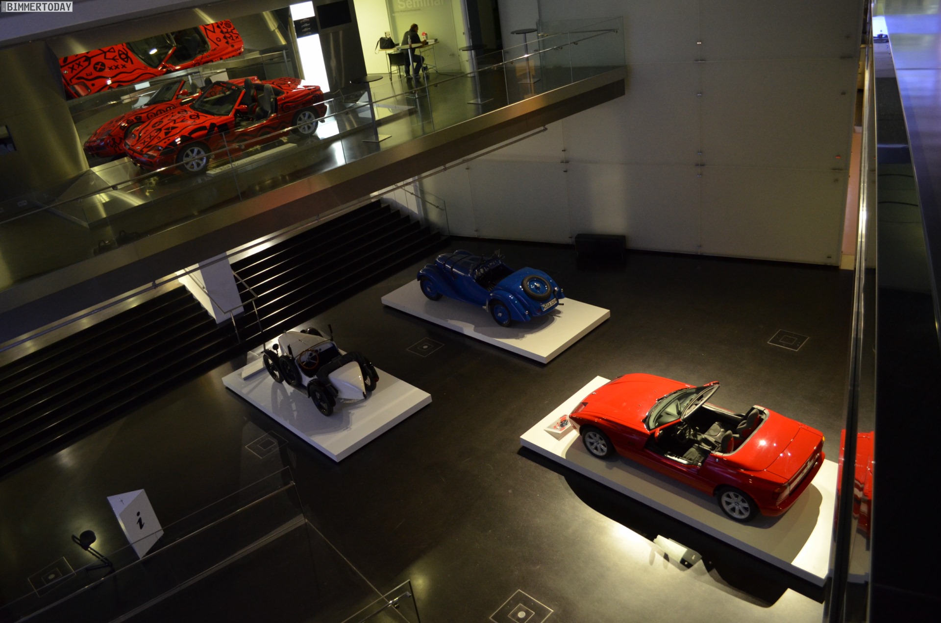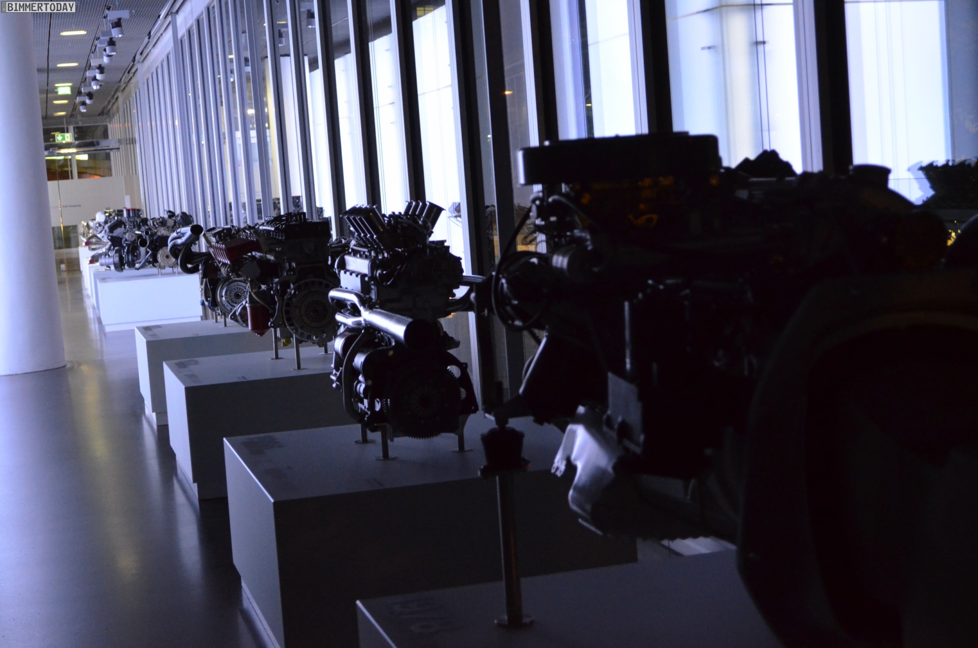 Auf eine besondere Art ließ sich während der Nacht im BMW Museum auch die Architektur des Gebäudes erleben. Die menschenleeren und nur schwach illuminierten Gänge lieferten eine einzigartige Kulisse: