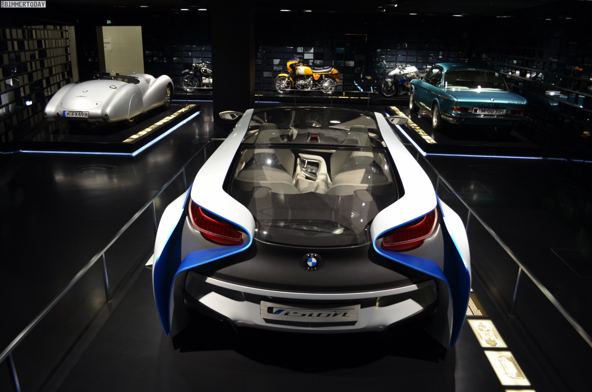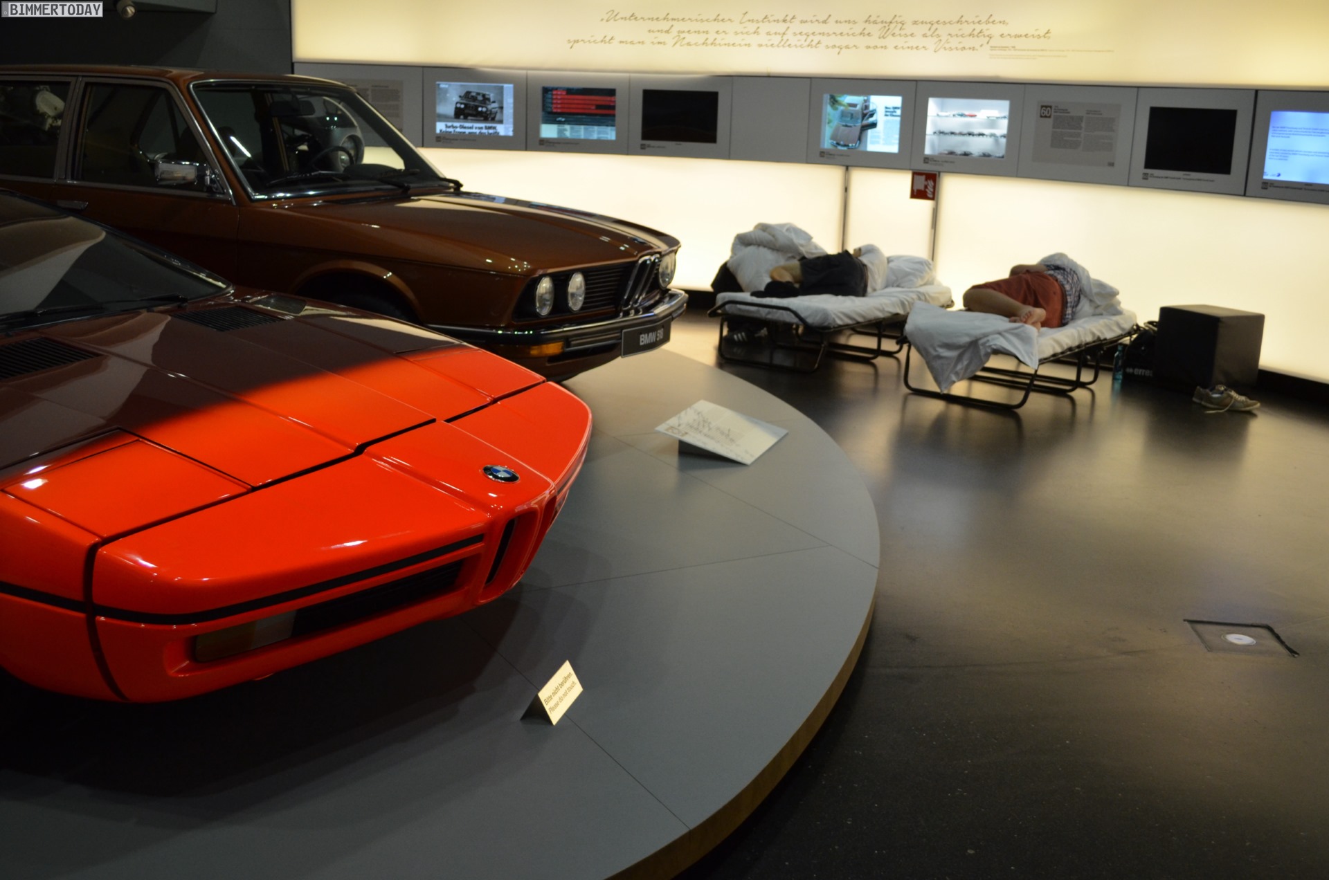 Auf der kleinen Zeitreise von den Anfängen des Unternehmens vor über 100 Jahren bis zur Gegenwart konnten alle Besucher noch etwas lernen – und erhielten außerdem schon einen ersten Eindruck davon, was in der Nacht auf sie zukommen würde. Denn während das BMW Museum zu gewöhnlichen Uhrzeiten stets gut besucht ist, bot die Nacht einmalige Möglichkeiten zum Staunen und Genießen. Wann sonst hat man die Chance, sich ganz allein mit den legendären Roadstern zu befassen und die Gedanken in aller Ruhe schwelgen zu lassen? Wann steht man vor der versammelten 3er-Historie und kann ungestört all die Erinnerungen auffrischen, die man mit den einzelnen Mitgliedern der Ahnengalerie verbindet?