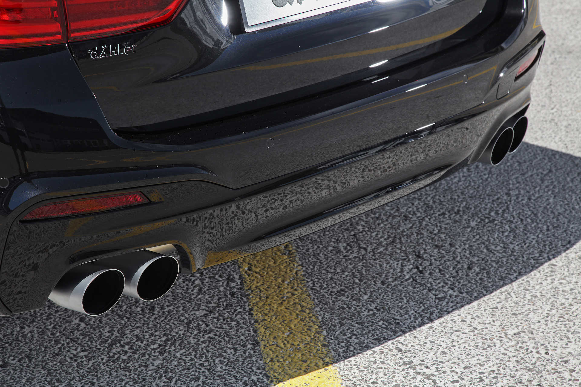 Wie die Bilder bereits erahnen lassen, hat Dähler auch eine ordentliche Sport-Abgasanlage für den BMW 5er Touring G31 entwickelt. Das leichte Edelstahl-System gibt es je nach Understatement-Bedarf mit zwei oder gleich vier Endrohren im M-Stil. Interessant klingt auch das ebenfalls noch in der Entwicklung befindliche aktive Sound-Design, das den Fahrzeugklang über ein eigenes Schnittstellensteuergerät optimieren soll.