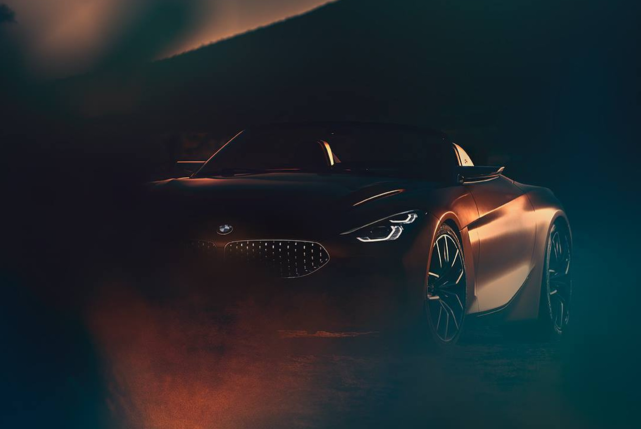 Am Abend des 17. August wird das BMW Z4 G29 Concept im Rahmen des Concours d’Elegance Pebble Beach 2017 offiziell enthüllt, schon jetzt liefert ein Teaser-Foto einen ziemlich konkreten Ausblick auf das Design des offenen Zweisitzers. Gut zu erkennen ist die Nacht-Grafik der Scheinwerfer, bei der die beiden am oberen Rand angeschnittenen und hexagonal ausgeführten Corona-Ringe eher über- als nebeneinander angeordnet sind. Auch die Form der Nieren lässt sich bereits erahnen und erinnert an das BMW 8er Concept, das vor wenigen Wochen am Comer See enthüllt wurde und ebenfalls in Pebble Beach zu sehen sein wird.