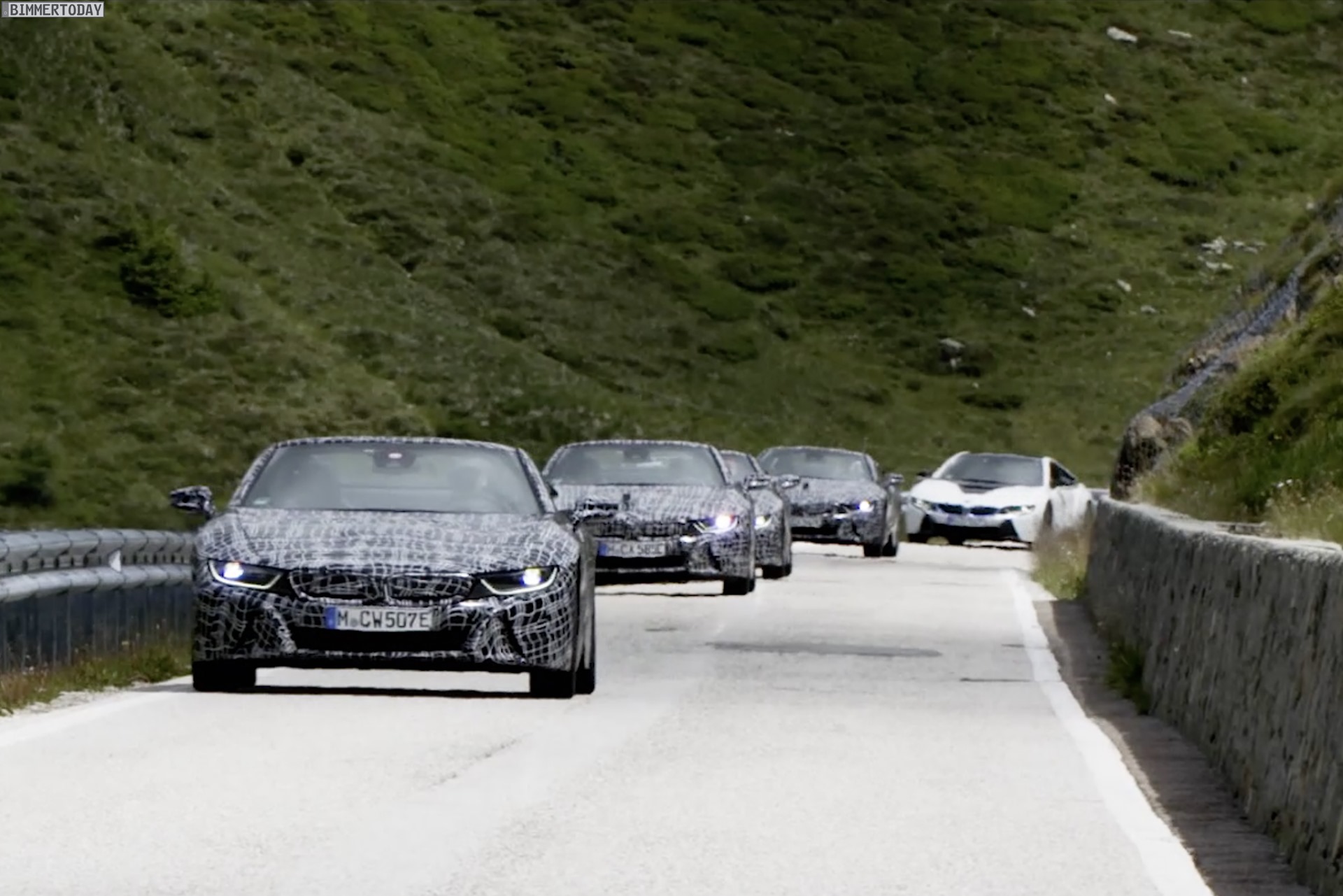 Wer diese Gruppe von Erlkönigen sieht, dürfte die Testfahrer unwillkürlich beneiden. Ein offizielles Video zeigt mehrere BMW i8 Roadster mit gewohnt starker Tarnung auf ihren Testfahrten auf unterschiedlichsten Straßen Europas und soll so unsere Vorfreude auf den ersten offenen Plug-in-Hybrid aus München steigern. Der BMW i8 Roadster wird 2018 seinen Marktstart feiern und bereits alle optischen und technischen Elemente des Facelifts bieten, das im Hintergrund auch für das Coupé vorbereitet wird.