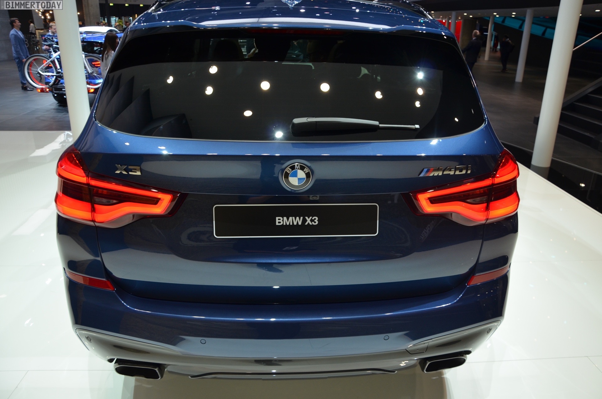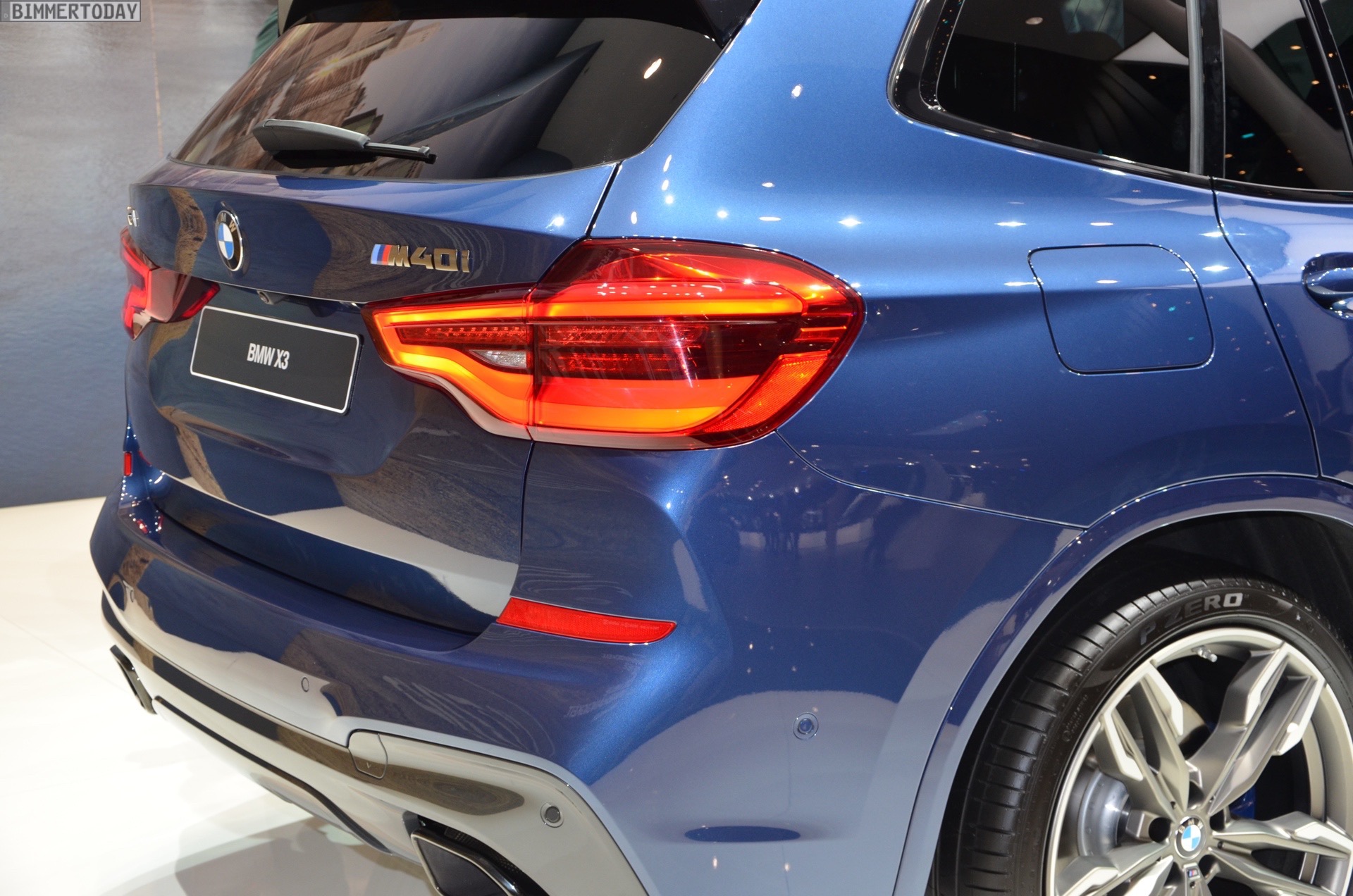 Als BMW X3 M40i beschleunigt der im US-Werk Spartanburg gebaute G01 innerhalb von 4,8 Sekunden aus dem Stand auf 100, bei 250 km/h verhindert ein Elektronikeingriff jede weitere Beschleunigung. Wie der vorläufige Top-X3 bei seiner Premiere auf der IAA 2017 wirkt, zeigen unsere Live-Fotos aus Frankfurt:
