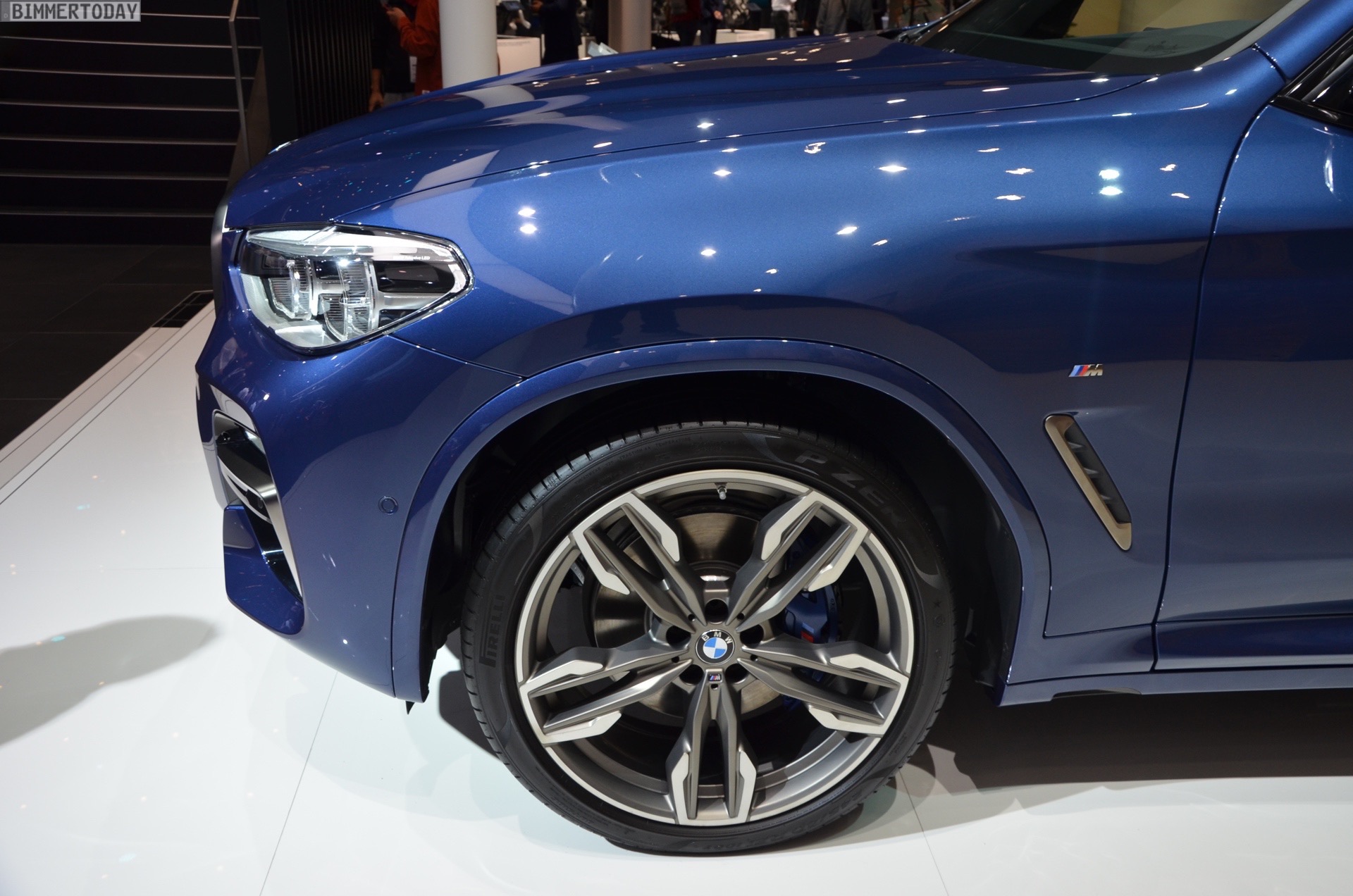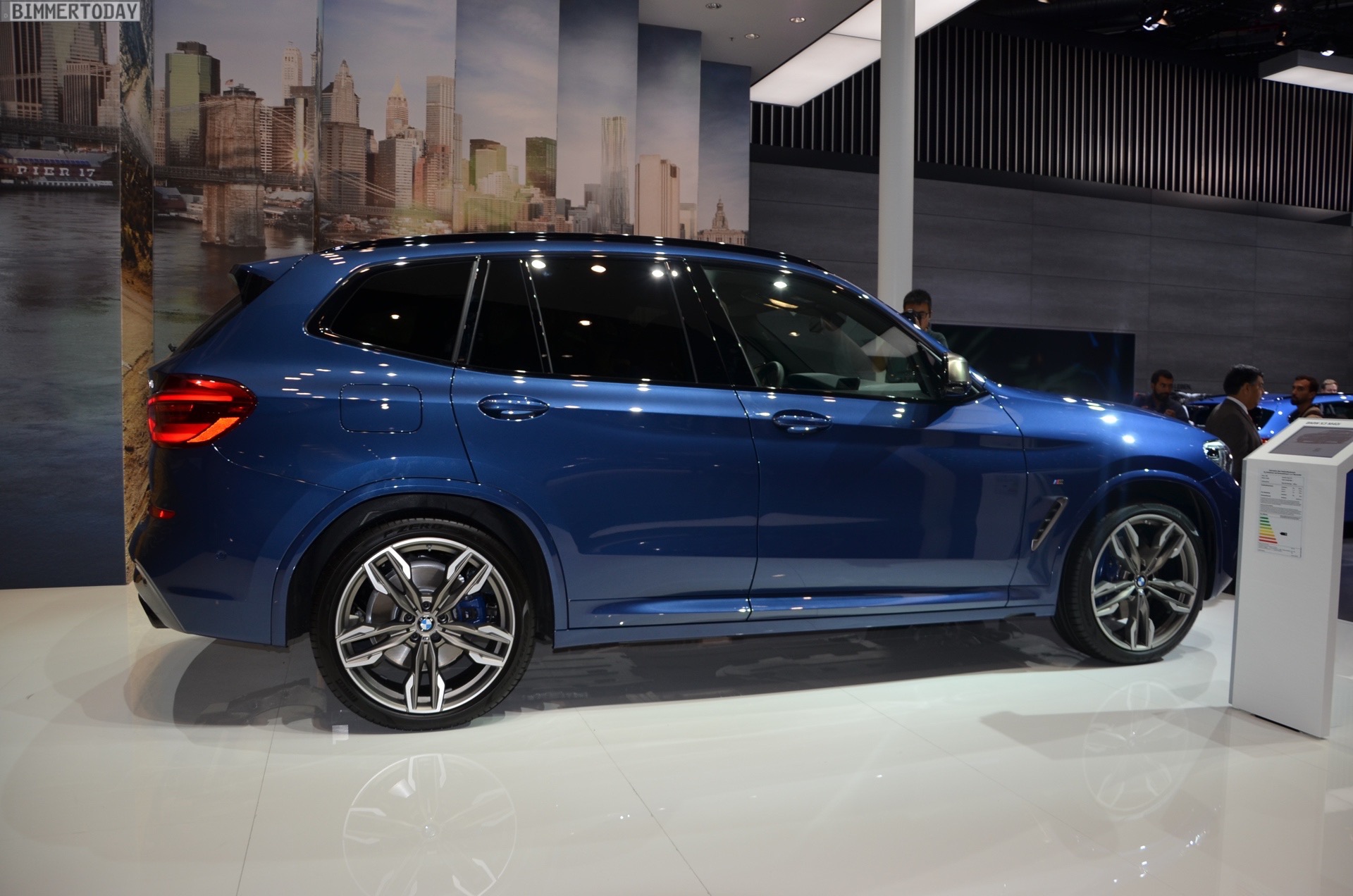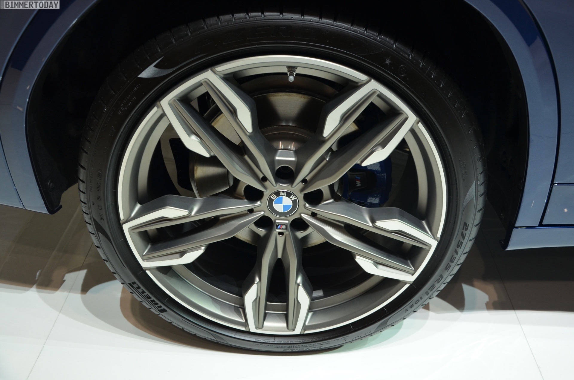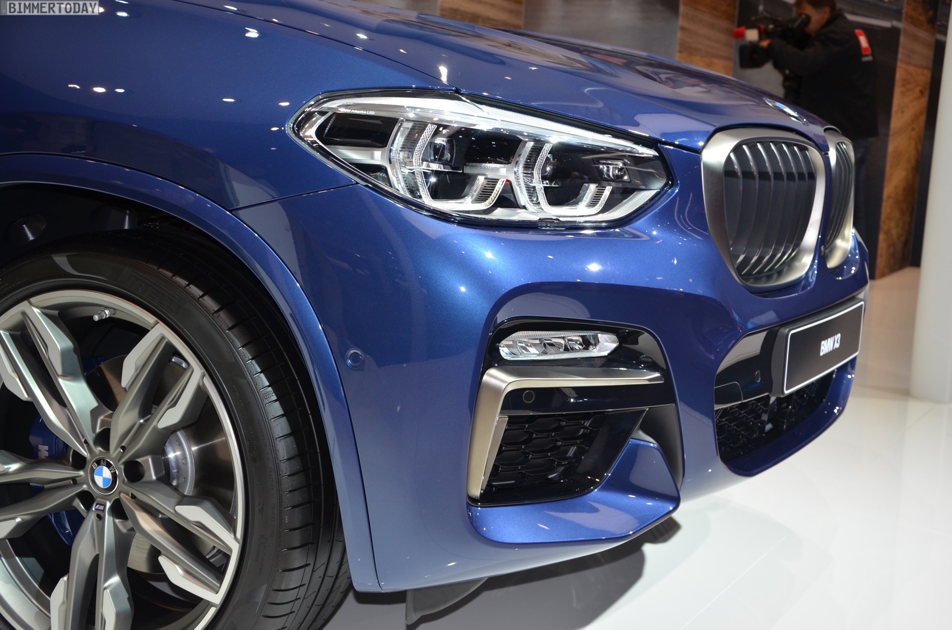 Zur Weltpremiere auf der IAA 2017 glänzt der BMW X3 M40i in der völlig neuen Lackierung Phytonic Blue, die in Deutschland unter dem Namen Phytonicblau bestellt werden kann. Das Power-SUV steht dabei auf den optionalen 21 Zoll-Felgen im Design Doppelspeiche 718 M mit breiter Mischbereifung, was den dynamischen Auftritt zusätzlich unterstreicht.