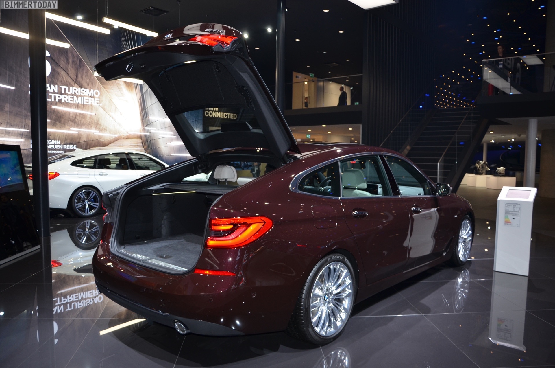 Genau hier setzt der BMW 6er GT G32 an und zeigt, dass es besser geht. Während die Formen des Vorgängers auch auf einer Messe stets ein wenig hervorstachen, fügt sich der neue Gran Turismo nahtlos in die elegant gezeichnete BMW-Palette ein – egal ob mit Luxury Line und edler Lackierung in Royal Burgundy Red oder in der sportlichen Ausführung mit M Sportpaket und Lackierung in Mineralweiß Metallic.