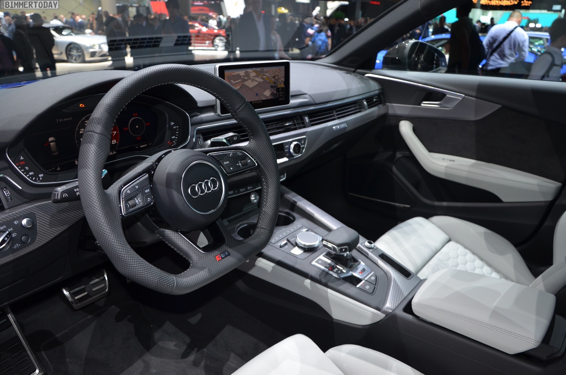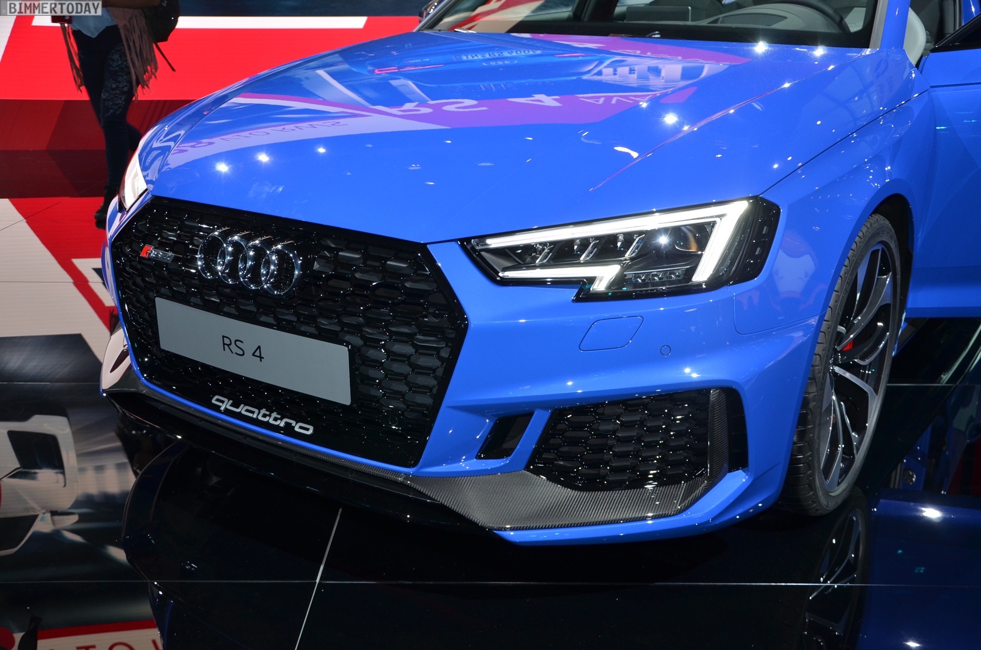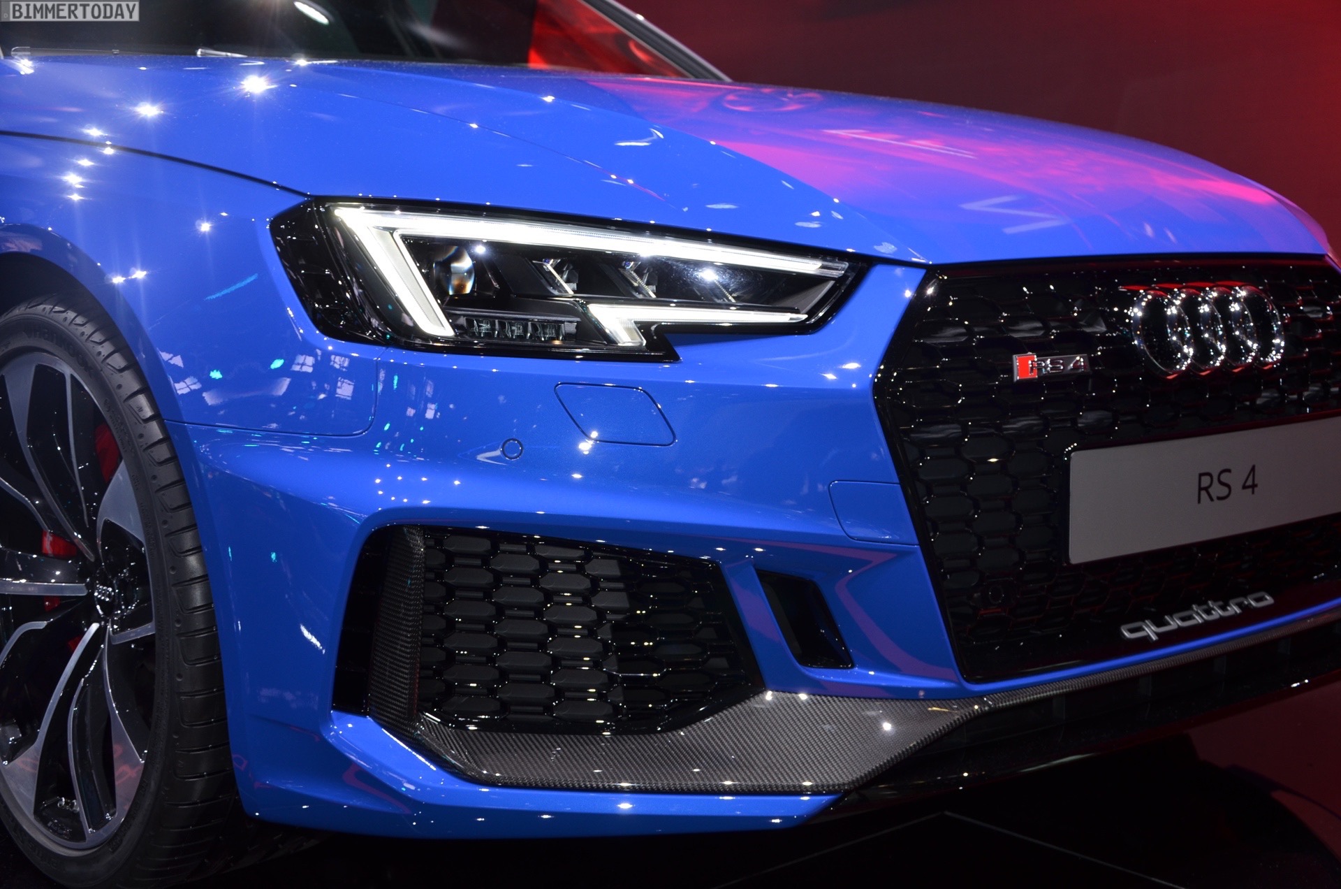 In markantem Blau präsentiert sich der neue Audi RS 4 Avant auf der IAA 2017. Der Power-Kombi aus Neckarsulm hat zwar den Hochdrehzahl-V8 seines Vorgängers verloren, aber der aus dem RS 5 bekannte Biturbo-V6 soll alle damit verbundenen Bedenken schon knapp über Leerlaufdrehzahl vom Tisch blasen. Dank doppelter Aufladung liegt seine Kraft deutlich früher an, das Drehmoment fällt mit maximal 600 Newtonmeter nicht nur viel höher aus, es steht auch schon ab 1.900 U/min zur Verfügung.