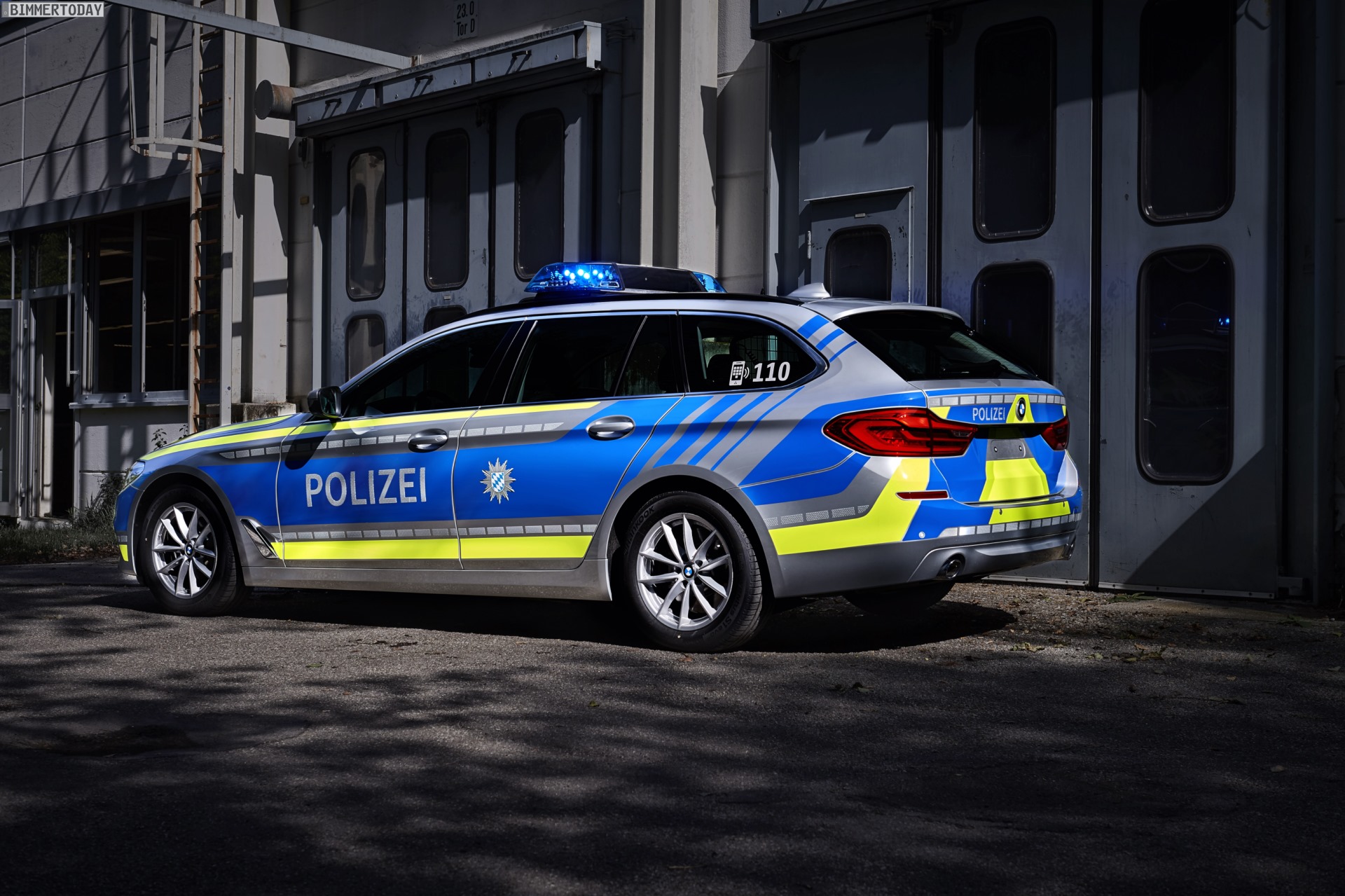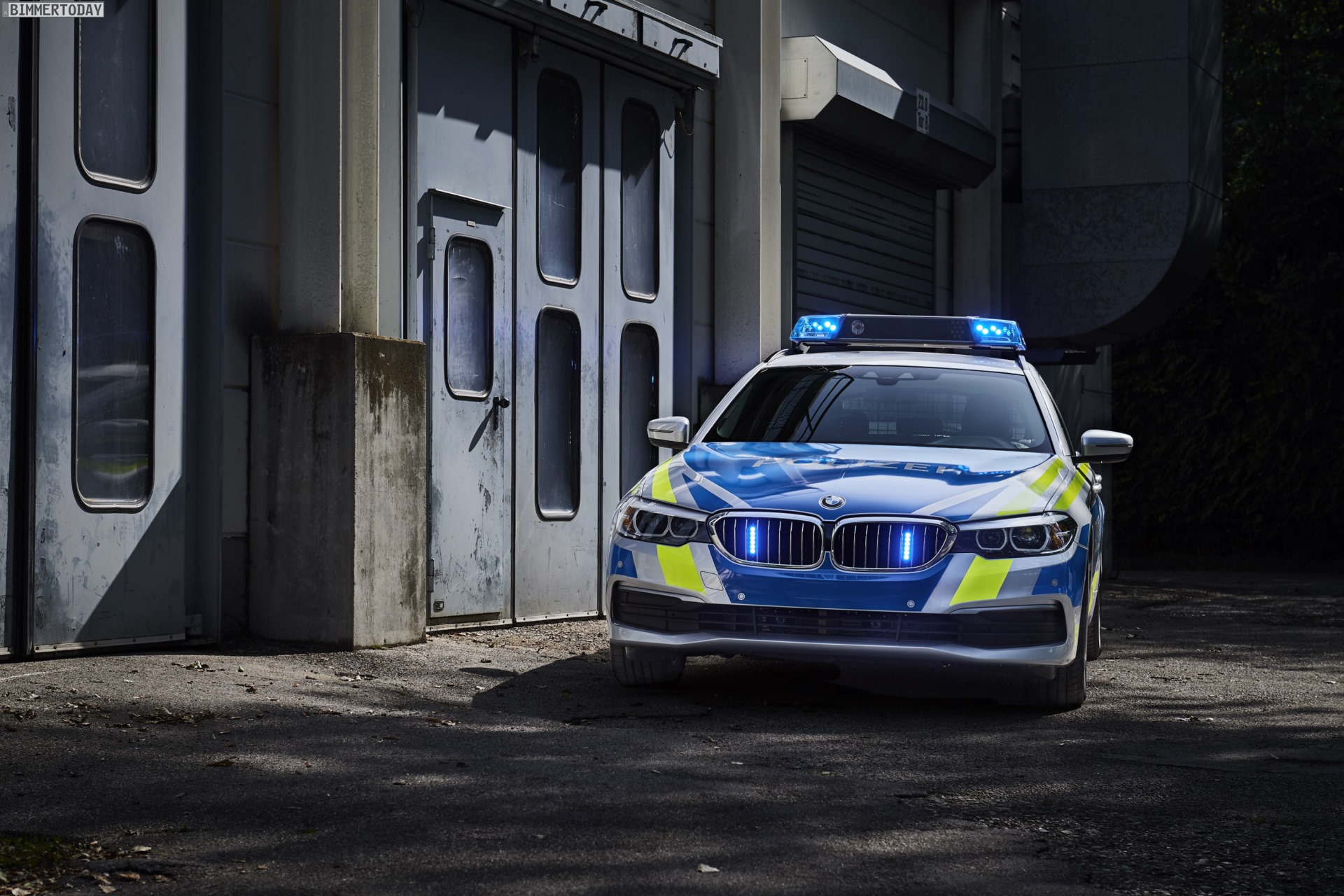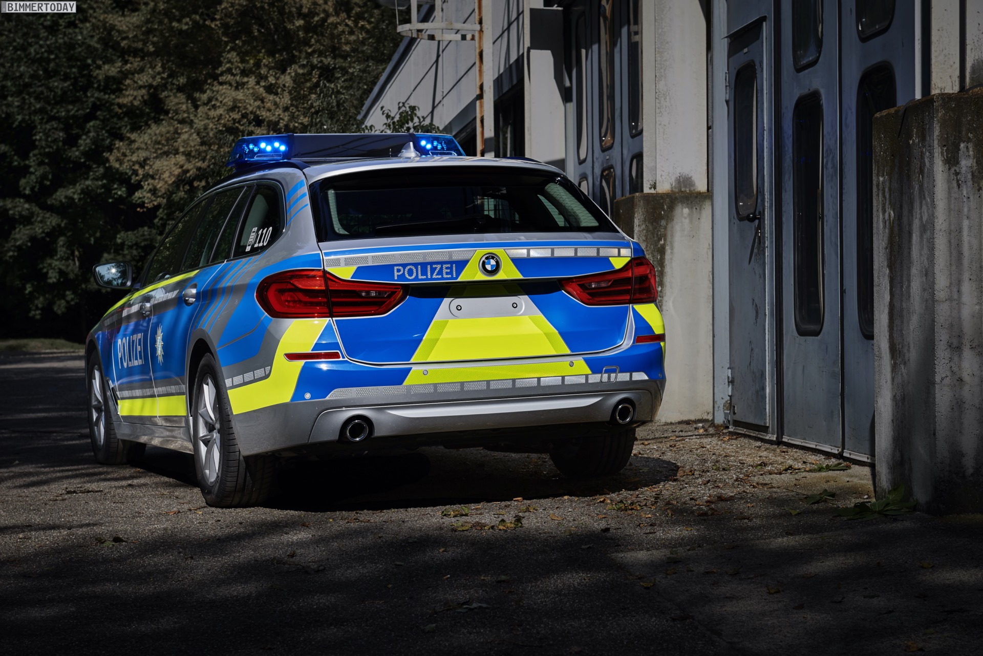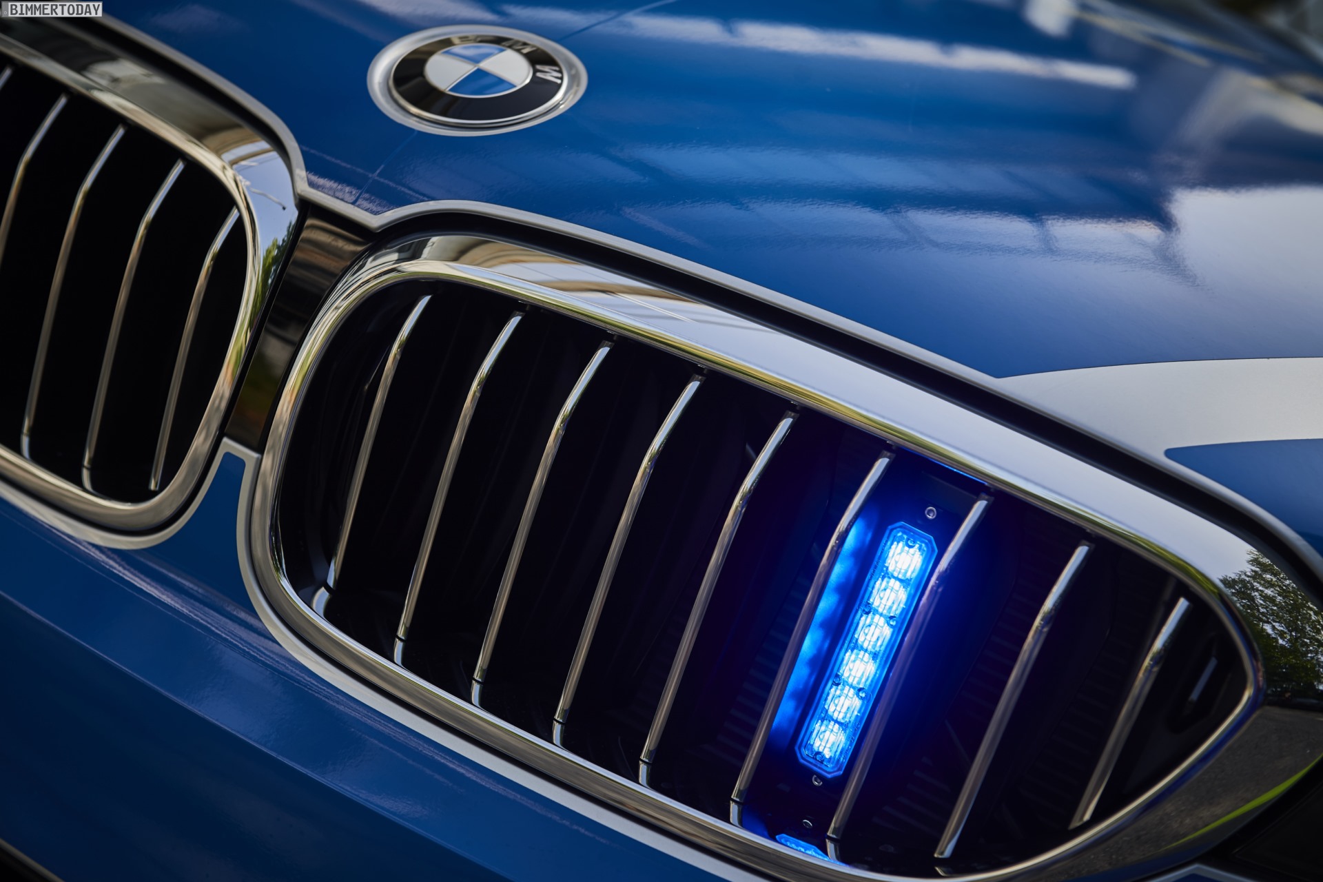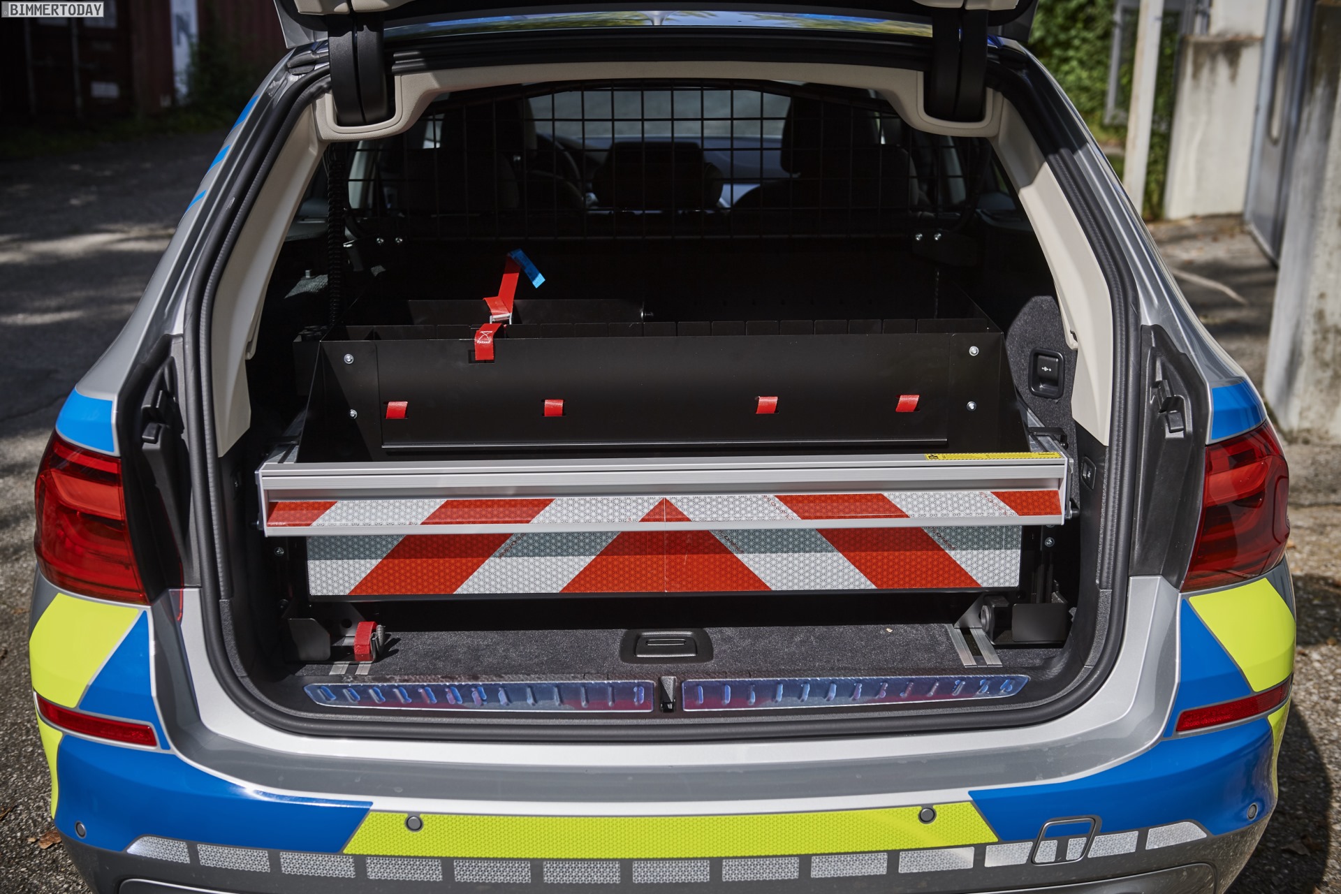 Der Polizei-BMW auf der IAA 2017 trägt unter anderem eine komplette Signalanlage auf dem Dach, zusätzliche Heckblitzleuchten und Frontblitzer in den Nieren sowie ein passendes Steuergerät in der Mittelkonsole. Damit die Licht- und Signaltechnik auch bei längeren Einsätzen uneingeschränkt genutzt werden kann, verfügt das Einsatzfahrzeug über einen stärkeren Generator und eine Zusatzbatterie im Gepäckraum. Im Kofferraum sind außerdem verschiedene Konfigurationen möglich, die sich je nach konkretem Einsatzzweck anpassen lassen.