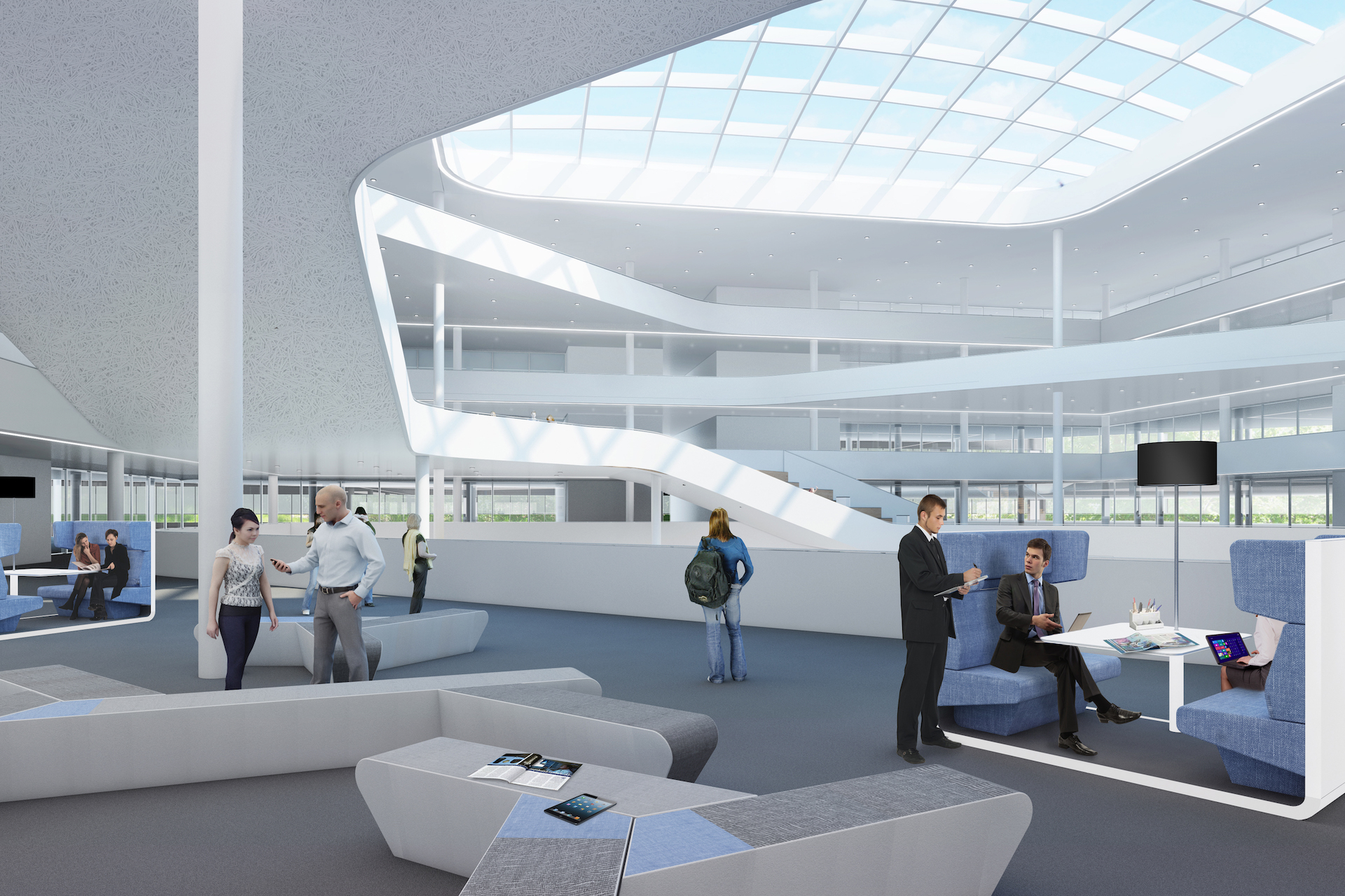 Erste Computersimulationen des FIZ-Ausbaus zeigen eine großzügige und offene Arbeitsumgebung. Kurze Wege sollen die enge Zusammenarbeit zwischen den verschiedenen Abteilungen fördern. So soll es möglich sein, eine neue Software in der nur wenige Meter entfernten Werkstatt sofort an einem Fahrzeugprototypen zu testen.