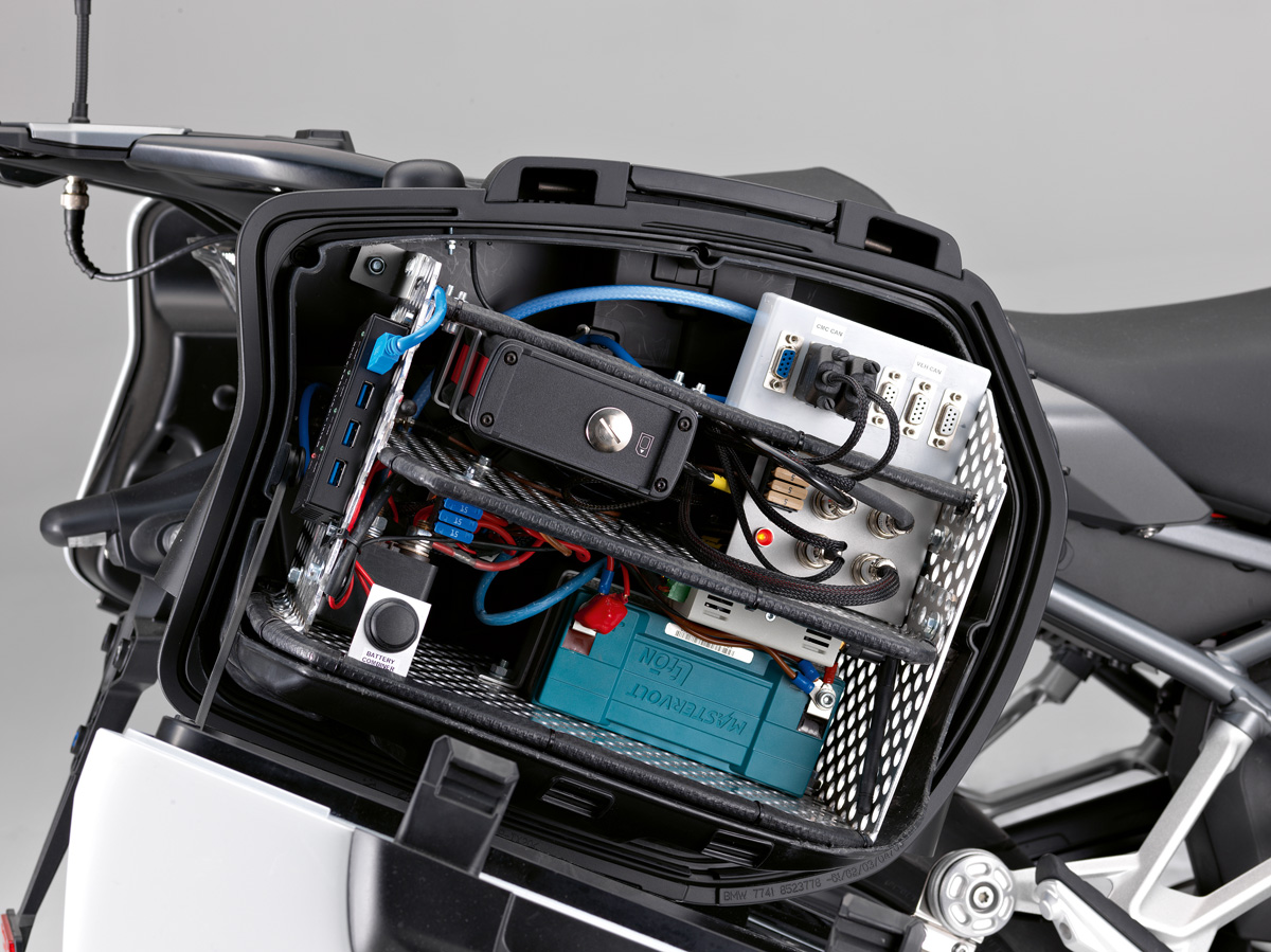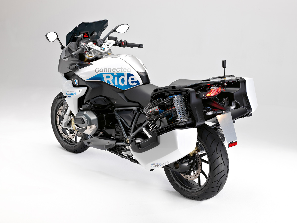 Damit auch die Fahrzeuge von BMW Motorrad immer sicherer werden, haben die Entwickler den Sport-Tourer BMW R 1200 RS ConnectedRide zu einem mit Technik vollgestopften Prototypen gemacht. In der seit 2016 laufenden Zusammenarbeit mit Honda und Yamaha, die nun ebenfalls ihre Visionen – Prototypen auf Basis einer Honda CRF 1000 L Africa Twin und einer Yamaha Tracer 900 – vorgestellt haben, hat man Technologien zur besseren Vernetzung entwickelt, die das Unfallrisiko senken sollen.