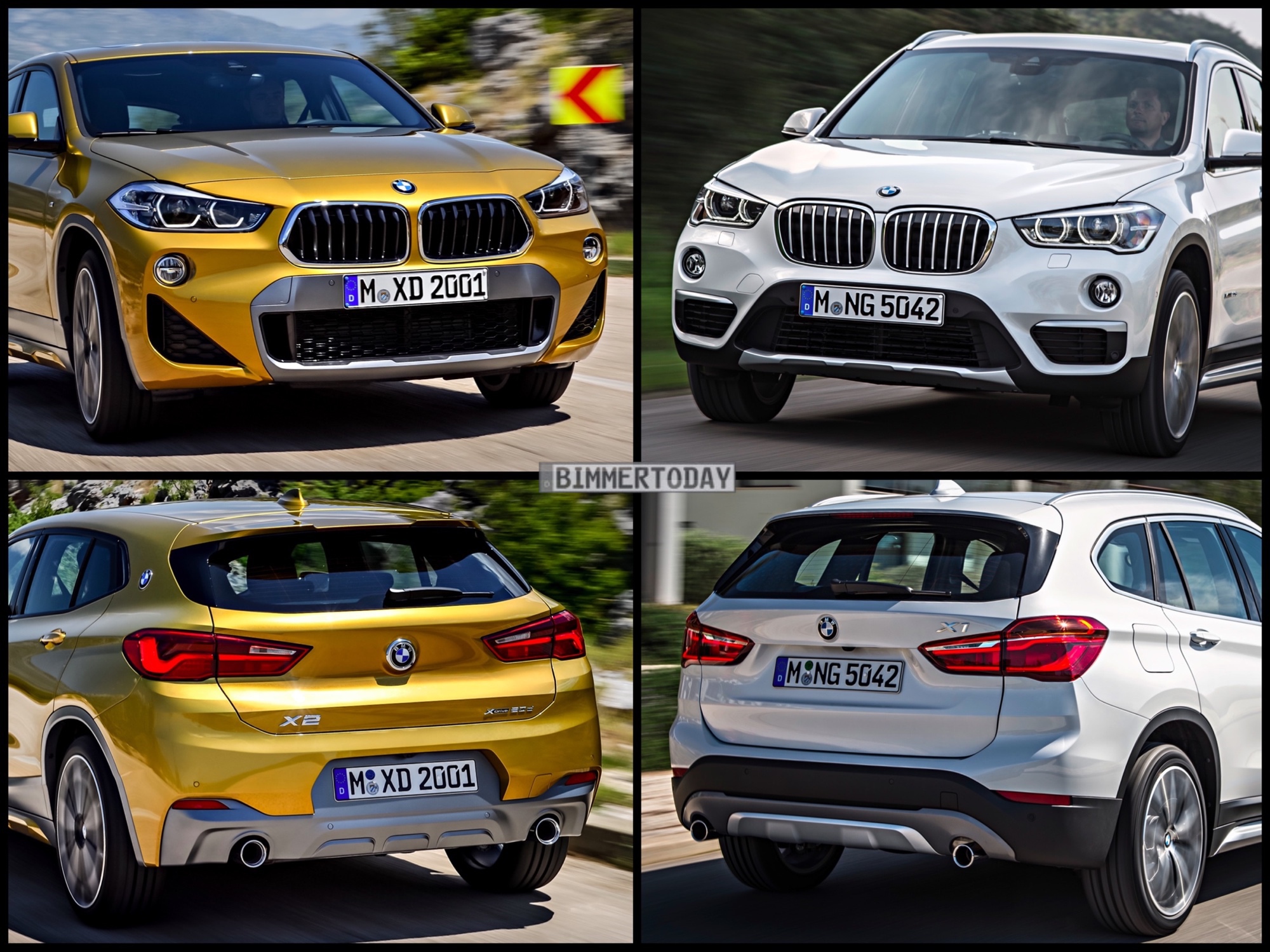 Wie unterschiedlich das Design der beiden Kompakt-SUV ist, wird in unserem Bild-Vergleich deutlich. Ganz egal aus welcher Perspektive – Verwechslungen zwischen X1 und X2 sind praktisch ausgeschlossen. Die umgekehrte Niere, die stärker abfallende Dachlinie, die breite C-Säule mit BMW-Logo und die flacher gezeichneten Rückleuchten lassen den BMW X2 aus jedem Blickwinkel noch etwas dynamischer und agiler wirken als seinen wenige Zentimeter größeren Bruder.