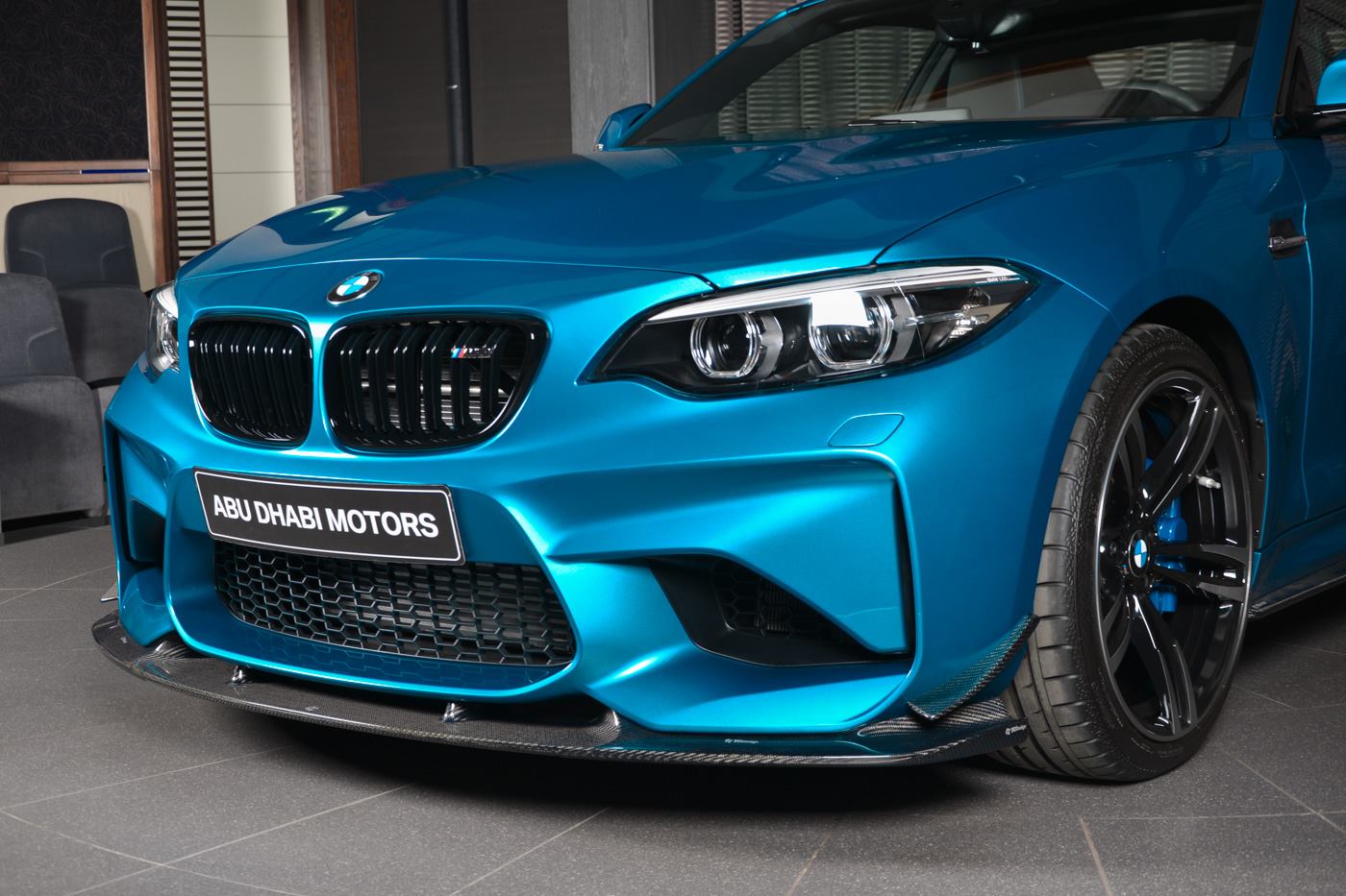 An sich ist das BMW M2 Coupé (F87) ja schon kein Kind von Traurigkeit und sieht richtig scharf aus, aber ein paar Anbauteile aus Carbon gehen eben immer. Das haben sich wohl jetzt auch die Herrschaften von BMW Abu Dhabi Motors gedacht und haben dem 2er-Sportcoupé das Body-Kit von 3D Design verpasst. Das Ergebnis: Ein Carbon-Traum in Long Beach Blue.