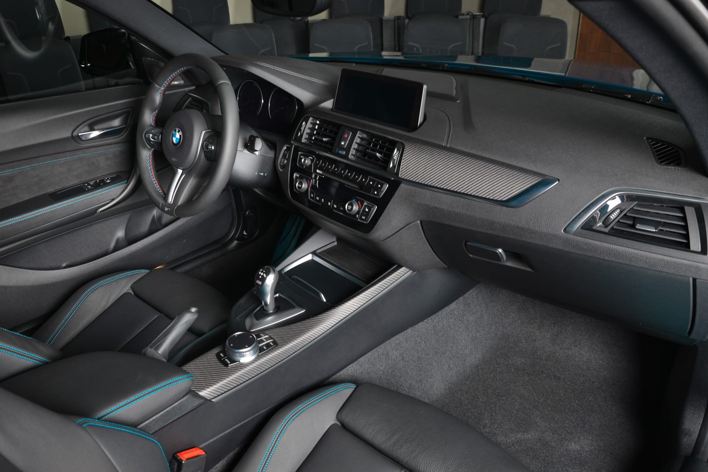 Vorne umschmeichelt ein Carbon Frontsplitter die großen Lufteinlässe. Dahinter arbeitet unangetastet der originale Dreiliter-Sechszylinder, der den BMW M2 durch seine Drehfreude und 370 PS zu einem ernsthaften Gegner für die Sport-Coupés höherer Fahrzeugklassen macht. Von null auf hundert beschleunigt der jüngst modellgepflegte M2 in gerade einmal 4,3 Sekunden.