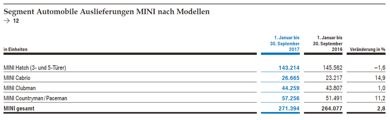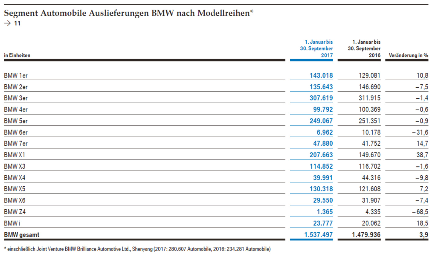 Dennoch bleibt man trotz der teilweise schwierigen Marktbedingungen weiter auf Wachstumskurs. Im dritten Drei-Monats-Zeitraum 2017 konnten weltweit 590.415 Autos der Marken BMW, MINI und Rolls-Royce ausgeliefert werden, was einem Plus im Vergleich zum dritten Quartal 2016 von 1,2 Prozent entspricht. Auch über das bisherige Jahr (1. Januar bis 30. September 2017) erzielte BMW mit 1.811.234 ausgelieferten Fahrzeugen ein Plus von 3,7 % im Vergleich zum Vorjahreszeitraum erzielen.