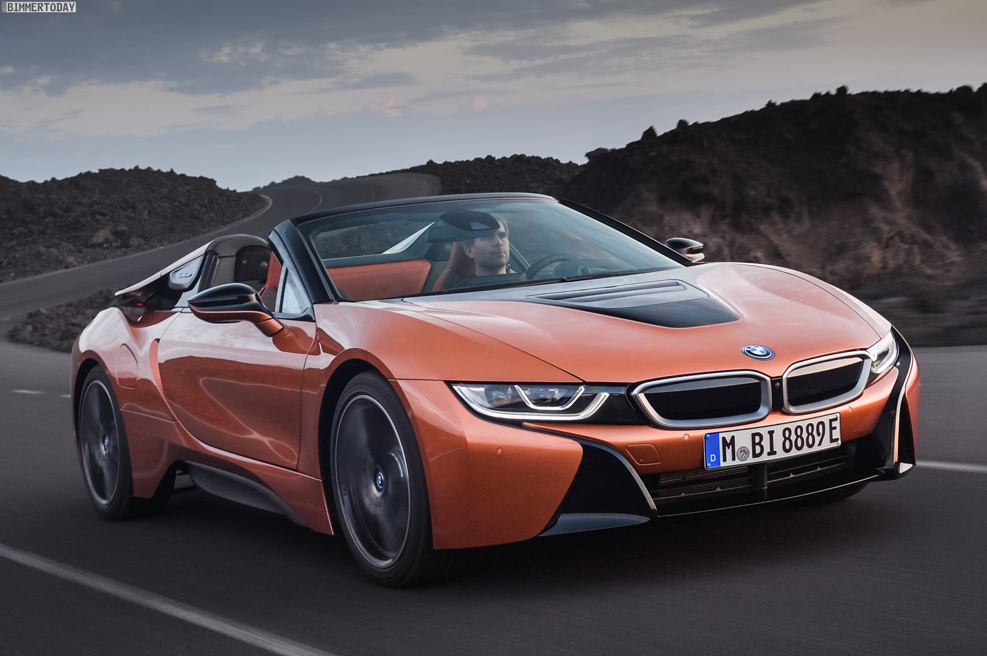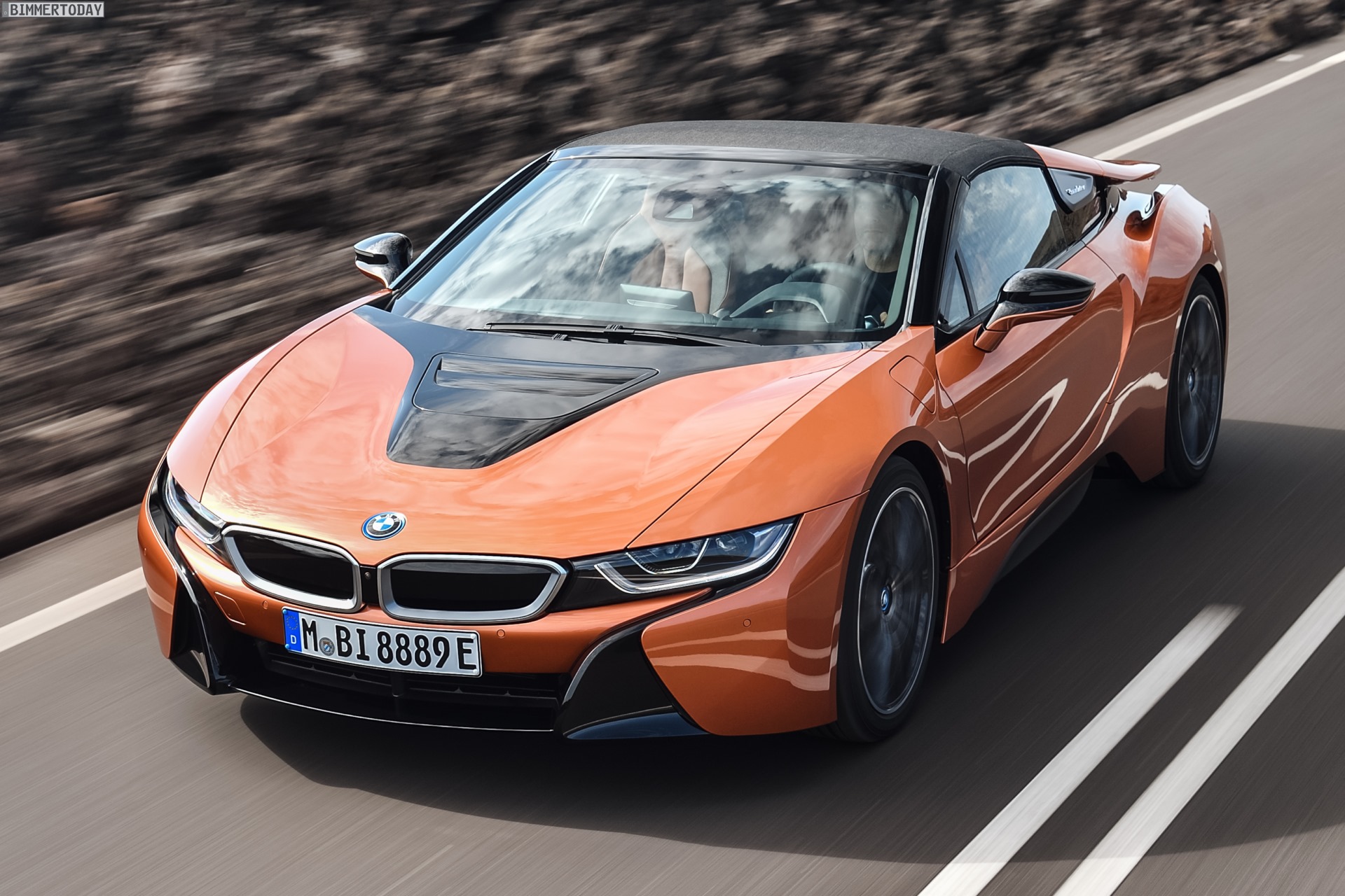 Weil der BMW i8 Roadster mit einem DIN-Leergewicht von 1.595 Kilogramm etwas schwerer als das Coupé ausfällt, erhöht sich auch die Werksangabe für den Sprint von 0 auf 100 km/h um 0,2 auf 4,6 Sekunden – was die meisten Kunden aber voraussichtlich spätestens dann mühelos verschmerzen können, wenn das Stoffverdeck zuvor hinter den Insassen verstaut wurde. Dieser Vorgang dauert 15 Sekunden und kann bei bis zu 50 km/h auch während der Fahrt stattfinden. Unabhängig vom Verdeck kann die versenkbare Heckscheibe betätigt werden, diese dient bei geöffnetem Stoffdach auch gleich als Windschott.
