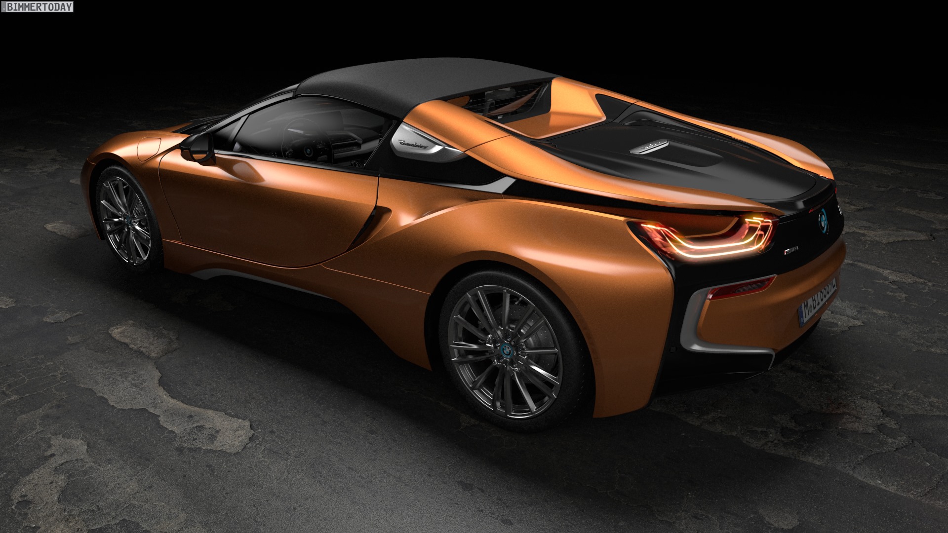 Das Exterieur des BMW i8 Roadster übernimmt einige Details, die eher an ein Concept Car erinnern und bringt diese in Serie. Hierzu zählen Roadster-Schriftzüge auf der C-Säule und am Heck, aber natürlich auch die bei geöffnetem Dach noch spektakulärer wirkenden Flügeltüren mit rahmenlosen Scheiben. Die Farb-Palette wird um die Varianten E-Copper und Donington Grey ergänzt, wodurch eine weitere Abgrenzung von den bisherigen i8 einfach wird.
