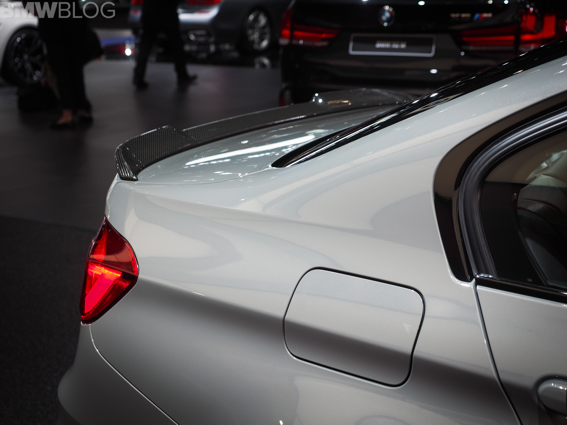 Zum serienmäßigen Carbon-Dach gesellen sich im Fall des BMW M3 CS auch eine Carbon-Motorhaube, eine an den M4 GTS angelehnte Frontschürze mit großem Carbon-Splitter und eine auffällige Carbon-Spoilerlippe auf der Kofferraumhaube. Gemeinsam sollen die Leichtbau-Komponenten für spürbar mehr Anpressdruck sorgen und so dazu beitragen, dass der CS auch auf der Rennstrecke Bestwerte liefern kann.