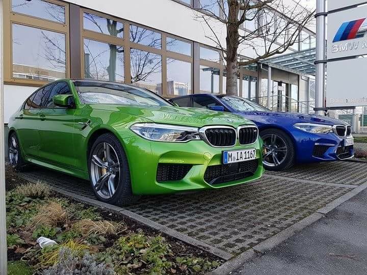 Dank BMW Individual haben die Käufer des neuen BMW M5 F90 eine viel breitere Farb-Palette zur Auswahl, als man beim ersten Blick in den Konfigurator denken könnte. Wer wie Todor Todorov regelmäßig an der M-Zentrale in Garching vorbeikommt, kann die neue Power-Limousine daher auch schon vor dem Marktstart in besonders knalligen Farben zu Gesicht bekommen – wie wäre es beispielsweise mit Java Grün, das man sonst eher auf Kompakt- und Mittelklasse-Sportlern zu sehen bekommt, das aber auch dem Alpina B7 gut zu Gesicht steht?