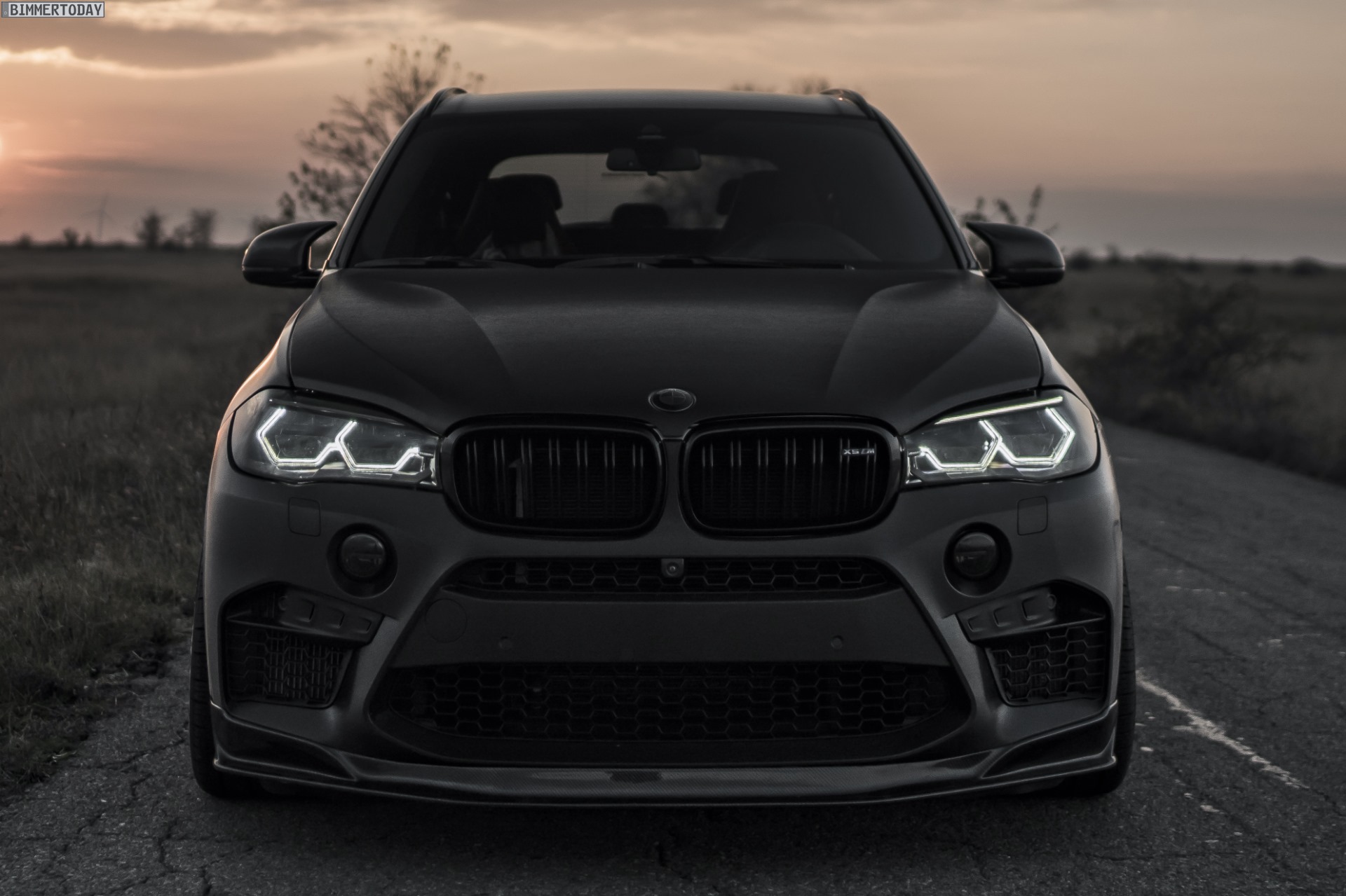 Die Front-Scheinwerfer entsprechen dabei keineswegs dem aktuellen Serienstand, denn sie wurden genau wie die Heckleuchten nachträglich abgedunkelt. Außerdem haben sie von OSSDesign ein mattschwarzes Innengehäuse und den auffälligen Blick mit hexagonalen und am oberen Rand angeschnittenen Tagfahrlicht-Ringen erhalten, was sie noch angriffslustiger wirken lässt. Positiver Nebeneffekt: Der BMW X5 M nähert sich der Nachtoptik der aktuellsten Modelle an und wirkt so noch frischer.