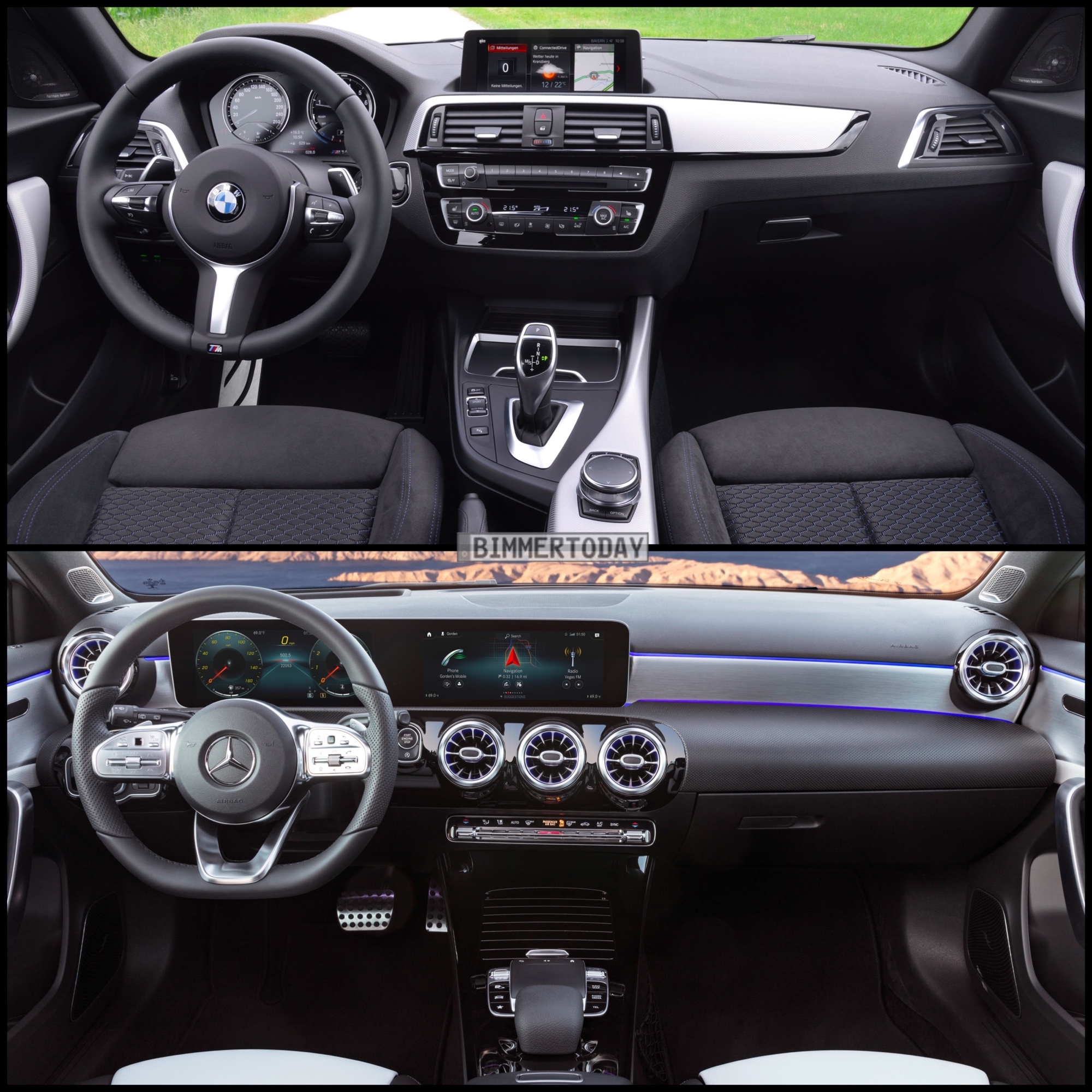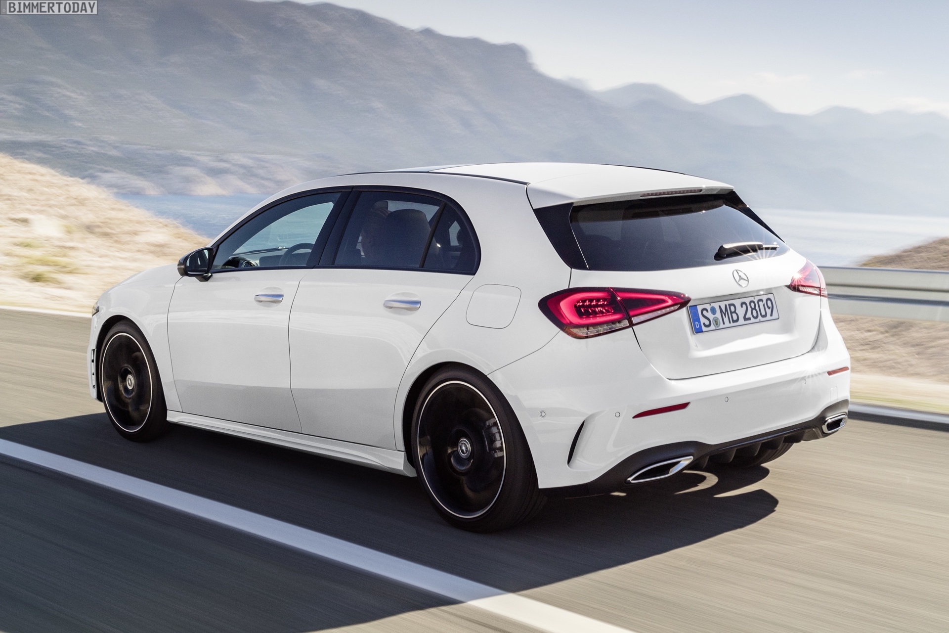 Ganz neu präsentiert sich der Innenraum mit dem Infotainment-System MBUX, das aus S-Klasse & Co. bekannte Widescreen-Cockpit in die A-Klasse bringt. Optional werden zwei 12,3 Zoll große Displays zur Anzeige aller relevanten Informationen genutzt, auch ein Head-Up-Display steht zur Wahl.  Mit umfassender Vernetzung und natürlicher Sprachbedienung will die Mercedes A-Klasse nicht nur das iDrive-System des BMW 1er F20 übertrumpfen.