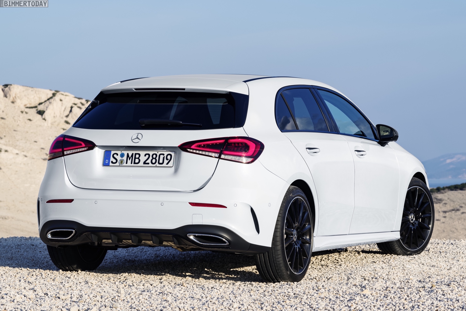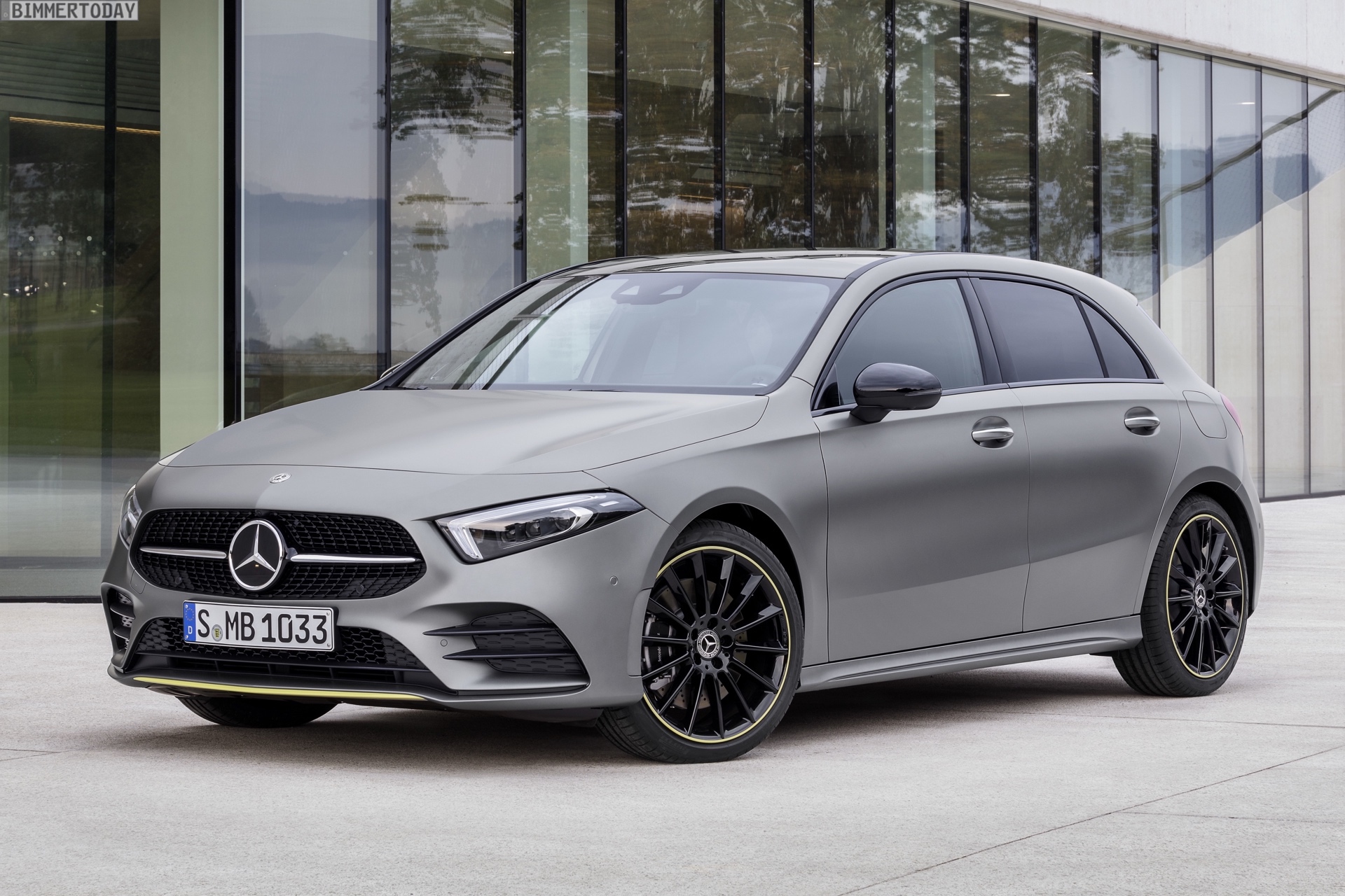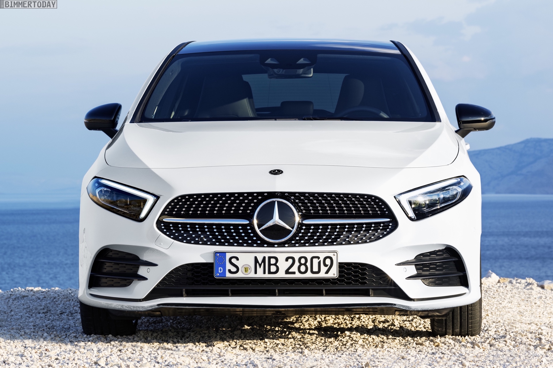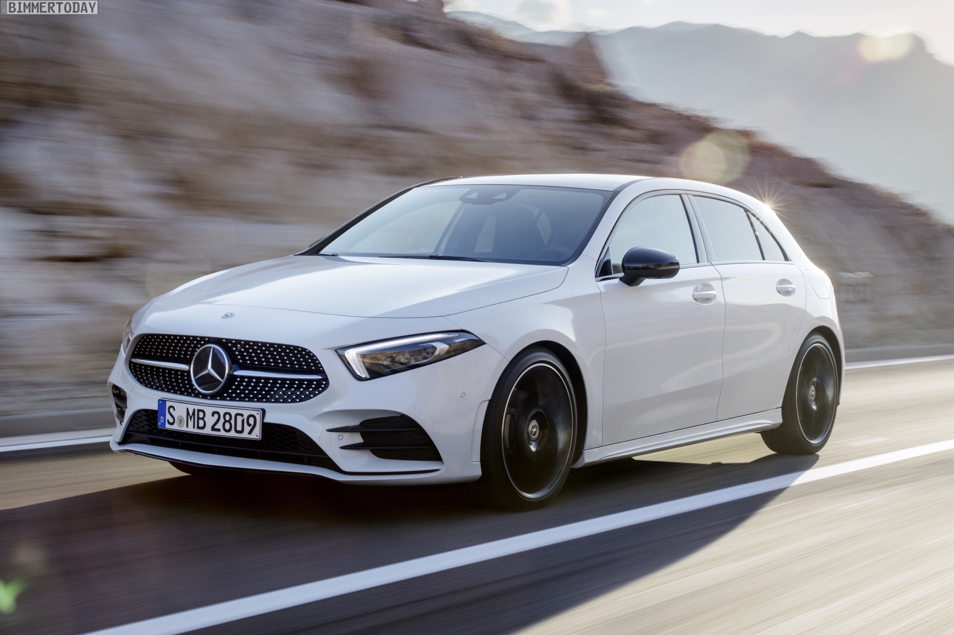 Mit der neuen Mercedes A-Klasse W177 feiert einer der wichtigsten Rivalen des BMW 1er seine Premiere auf dem Genfer Autosalon 2018. Die Neuauflage der Premium-Kompaktklasse aus Stuttgart setzt auf ein deutlich weiterentwickeltes Design mit schmaleren und dadurch sportlicher wirkenden Scheinwerfern, einer aufgeräumten und von vielen Linien befreiten Seitenansicht und einer Heckpartie, die dank zweigeteilter Rückleuchten einen besser beladbaren Kofferraum verspricht.