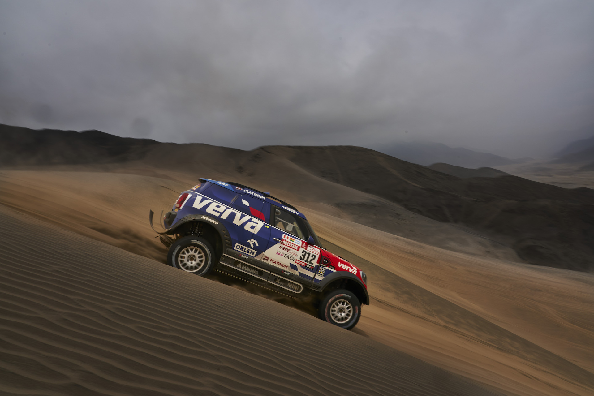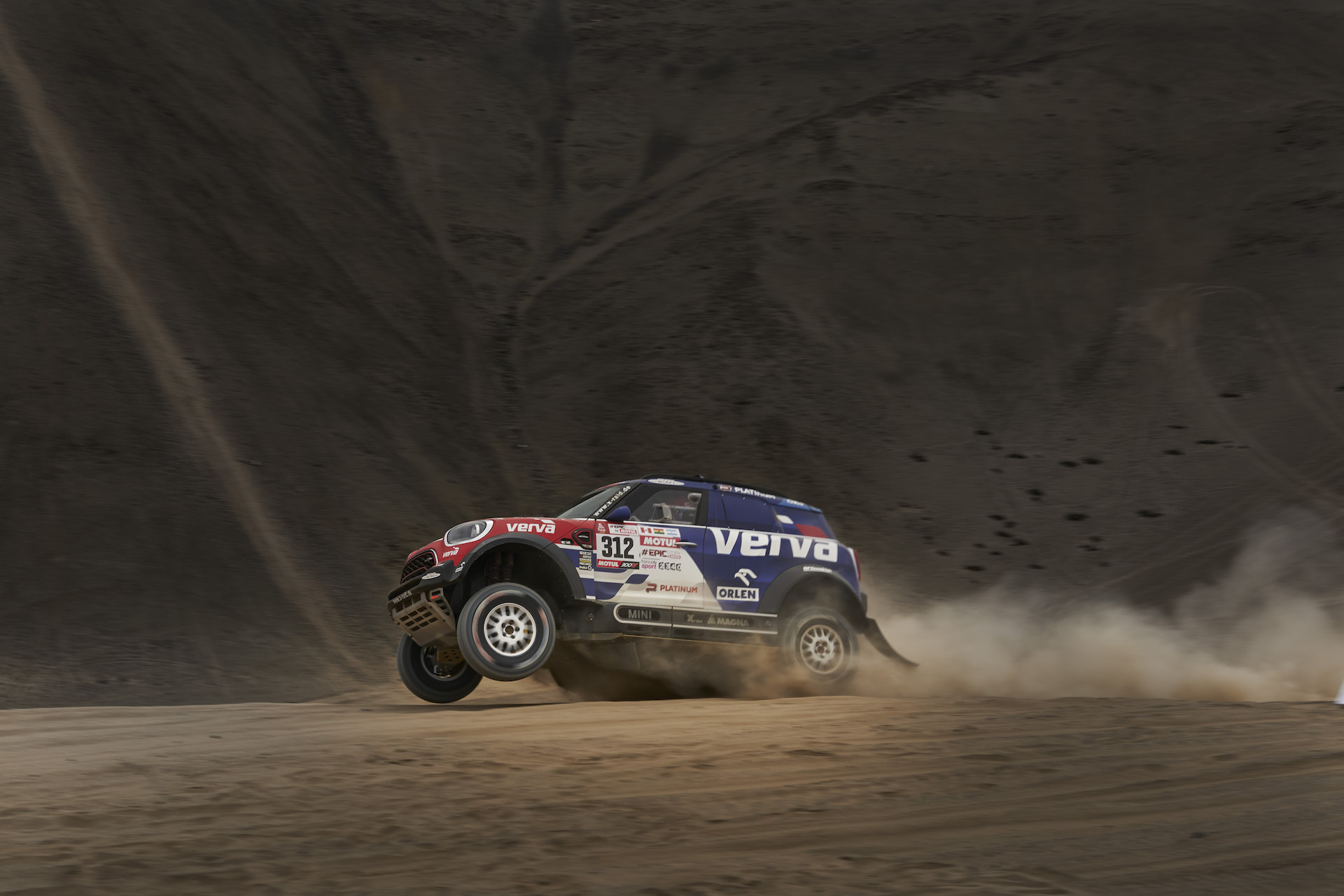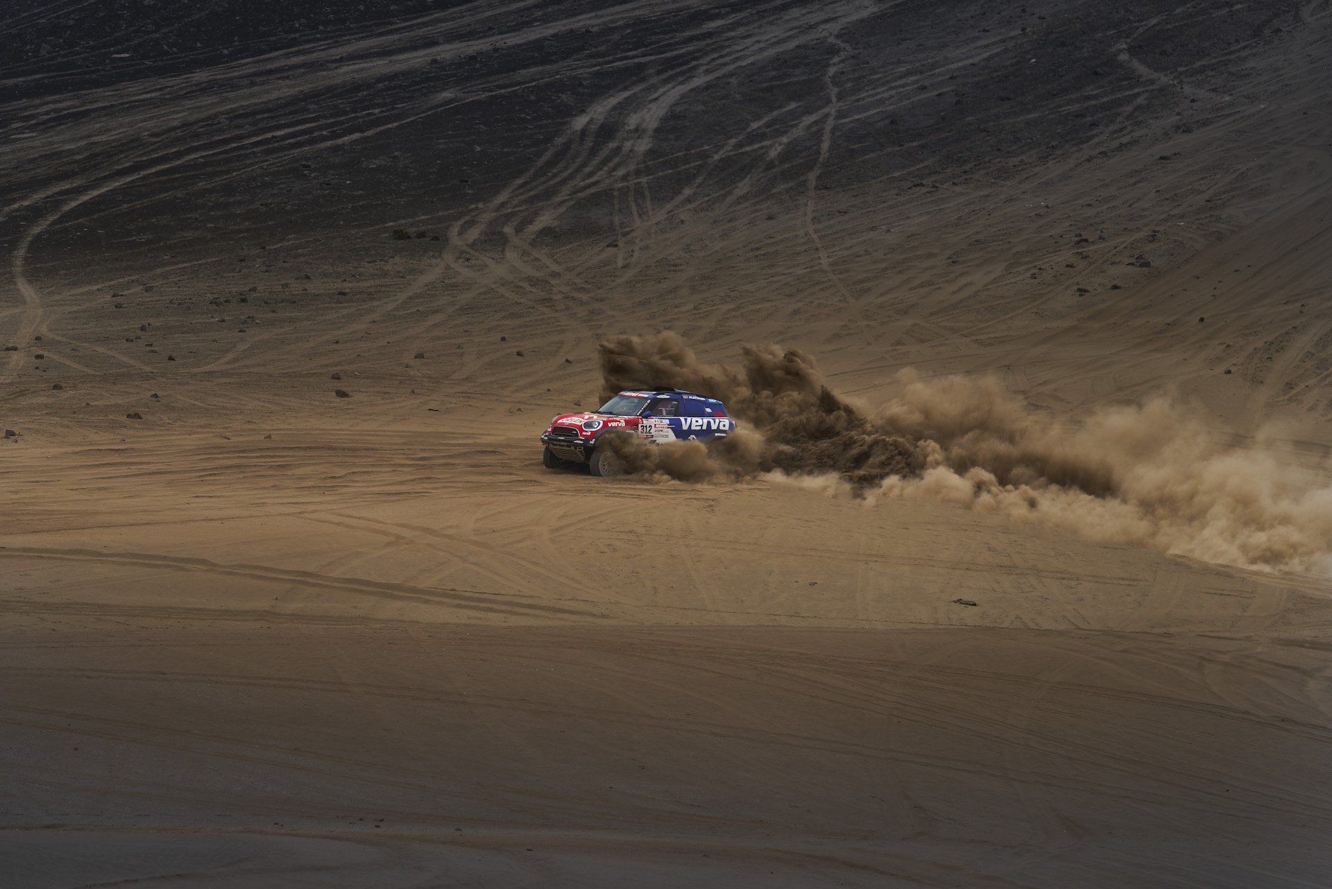 Oder man macht es so wie wir, sitzt auf dem Beifahrersitz eines MINI John Cooper Works Rally und schaut ungläubig zu, wie Jakub Przygonski die lebensfeindlichen Sand-Massen Kraft der vier angetriebenen Räder zur Rennstrecke werden lässt. Es ist Anfang Januar und das MINI Rallye-Team X-Raid hat sich zwei Tage vor dem Start der Rallye Dakar 2018 im Niemandsland 50 Kilometer hinter Lima eingefunden, um seine Fahrzeuge einem finalen Funktionstest zu unterziehen.