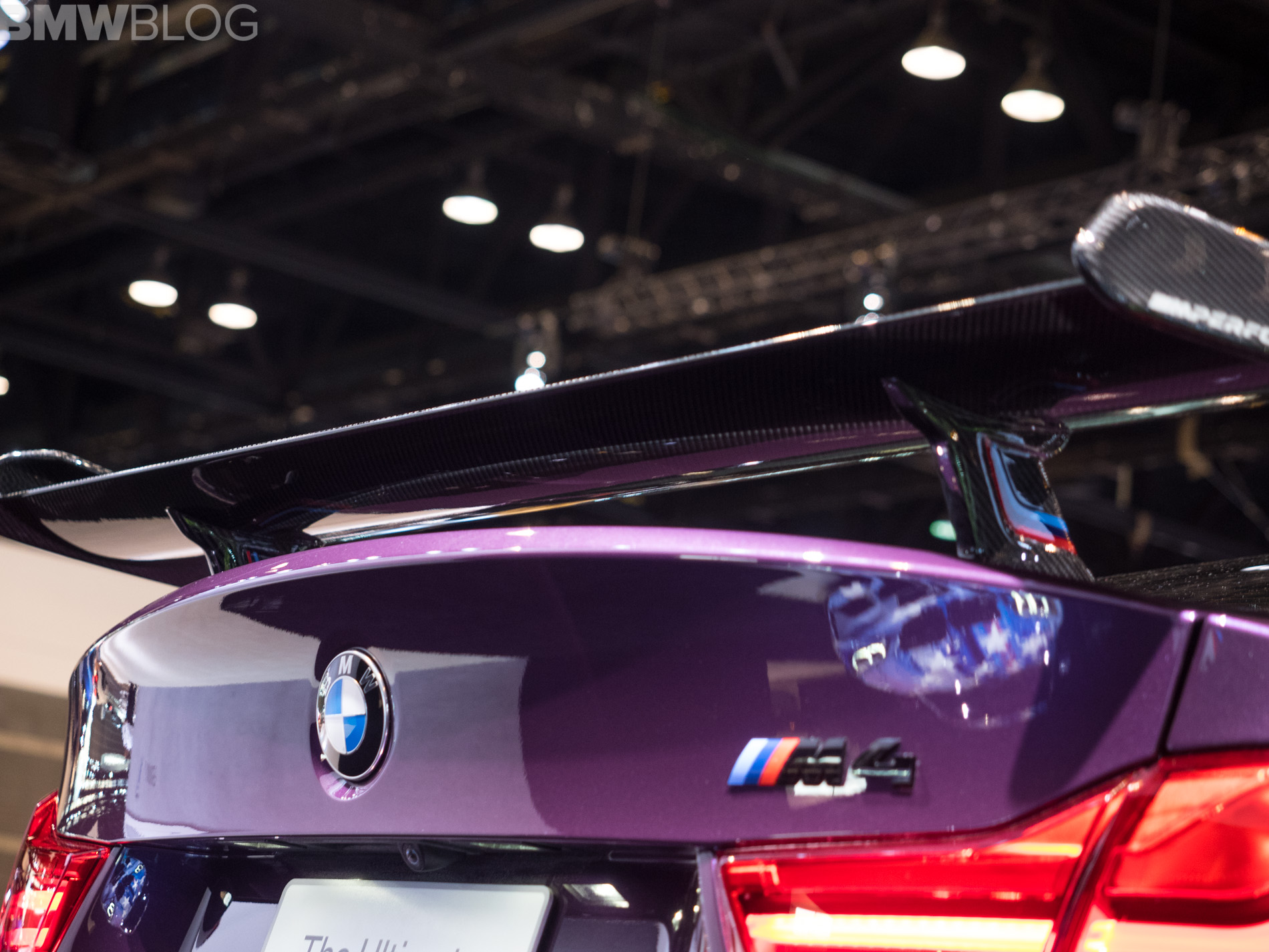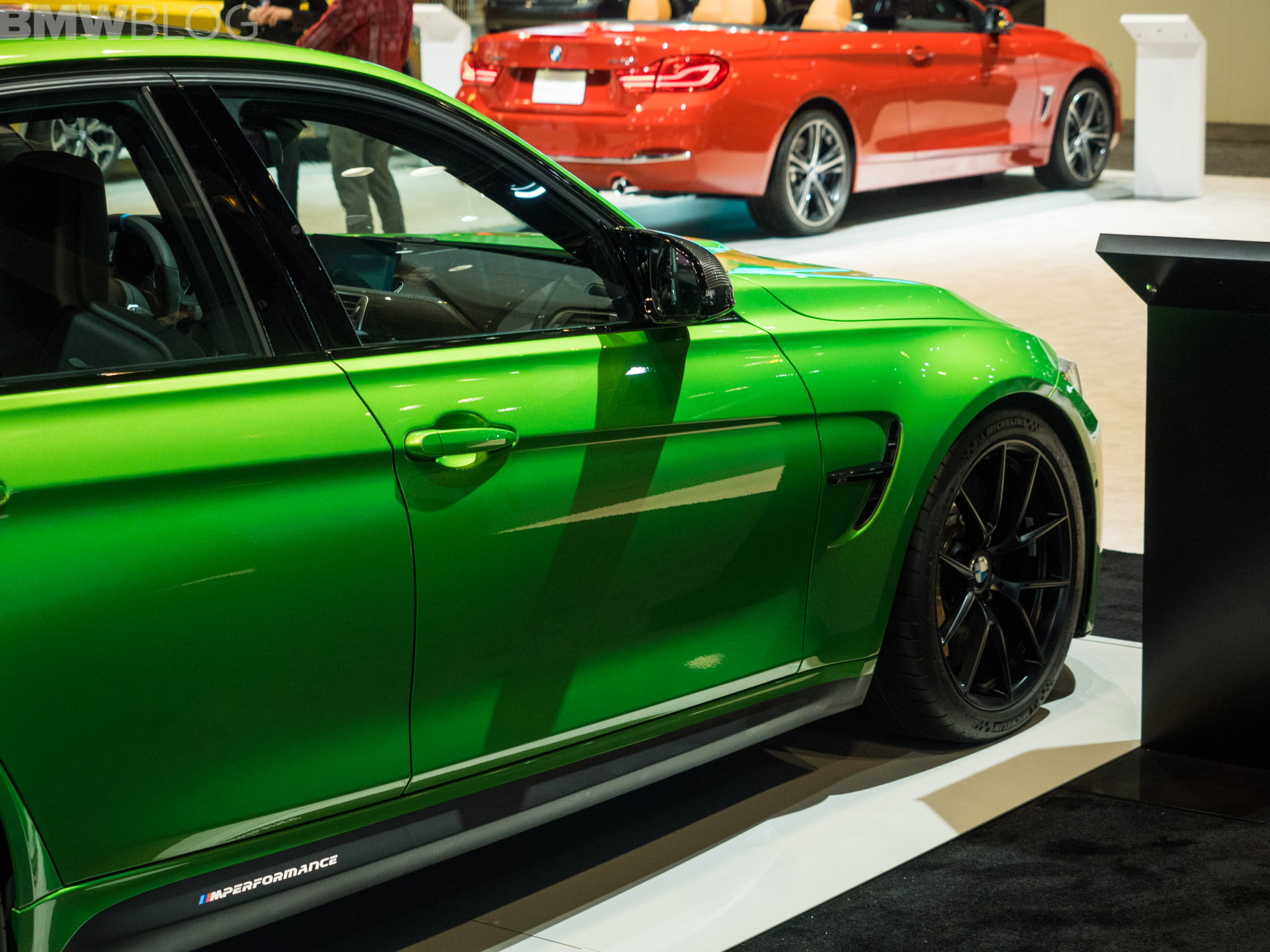 Besonders farbenfroh präsentieren sich BMW M3 und BMW M4 auf der Chicago Auto Show 2018. Wie die Fotos von der Messe zeigen, hatte BMW Individual großen Einfluss auf die gezeigten Fahrzeuge und konnte so dafür sorgen, dass sie zu echten Hinguckern werden. Der in Chicago ausgestellte BMW M3 F80 LCI glänzt in der seit Jahren bei allen Freunden extrovertierter Farben beliebten Individual-Lackierung Java Grün, an seiner Seite steht ein BMW M4 F82 LCI in Purple Silk.