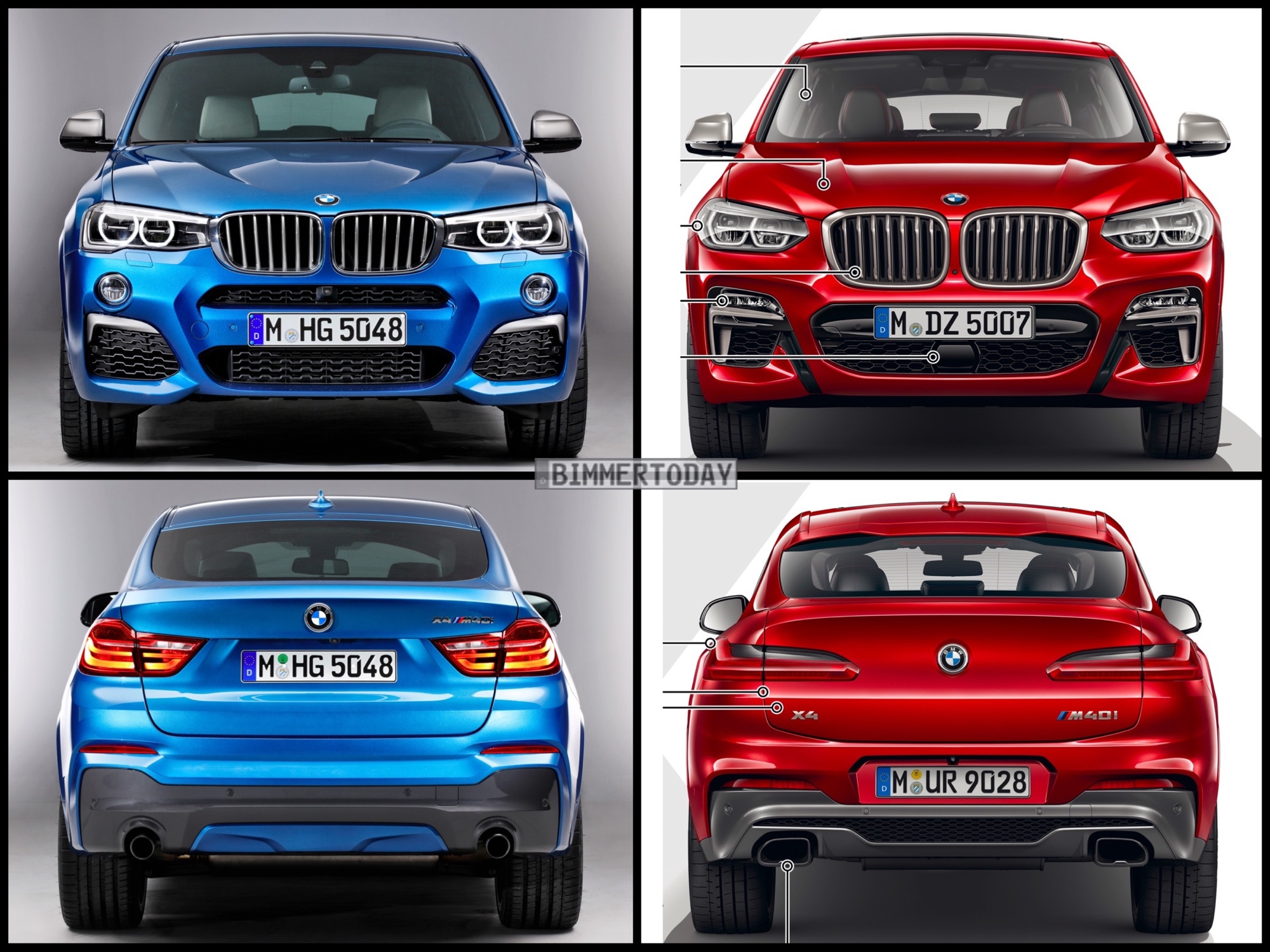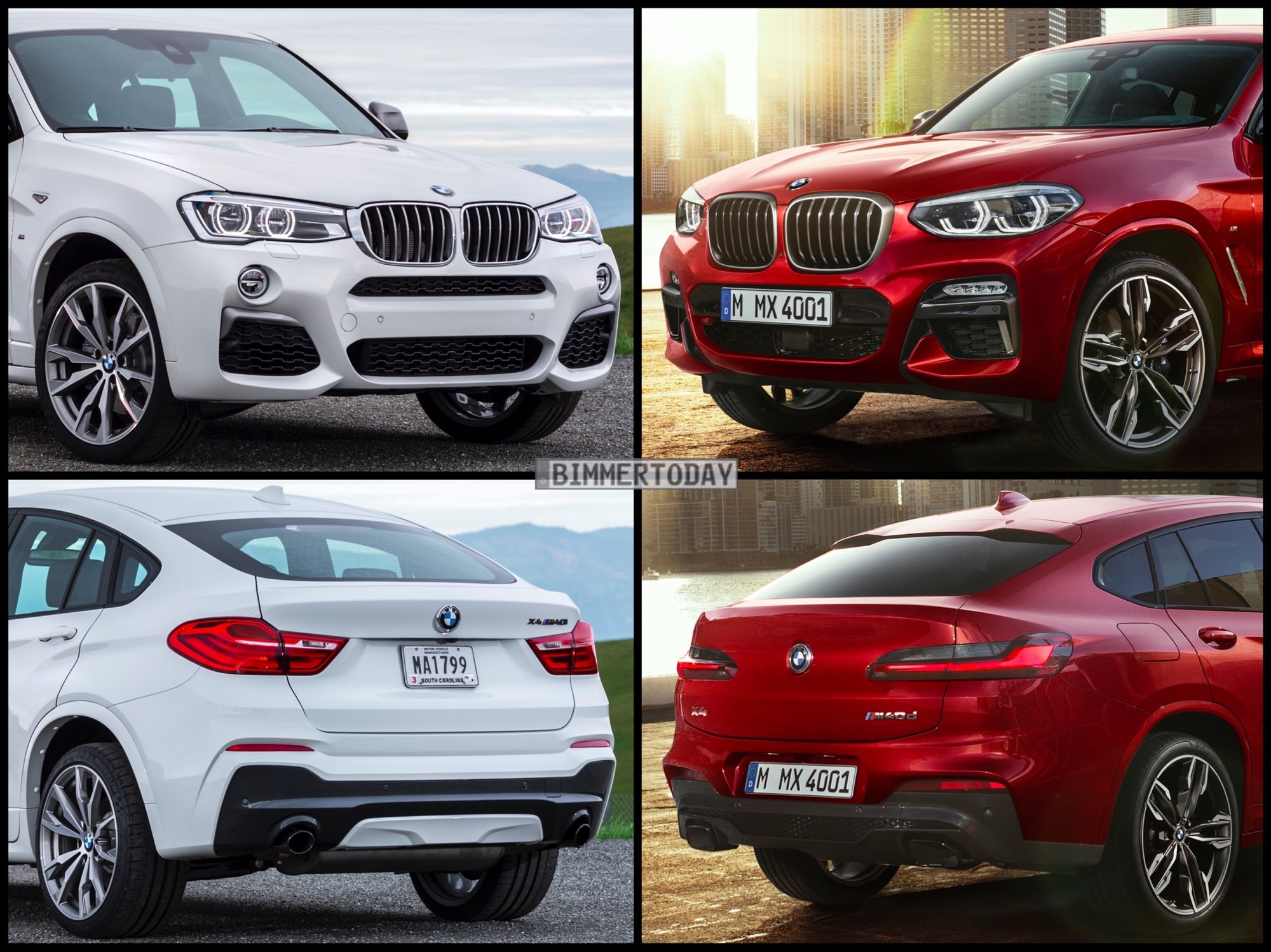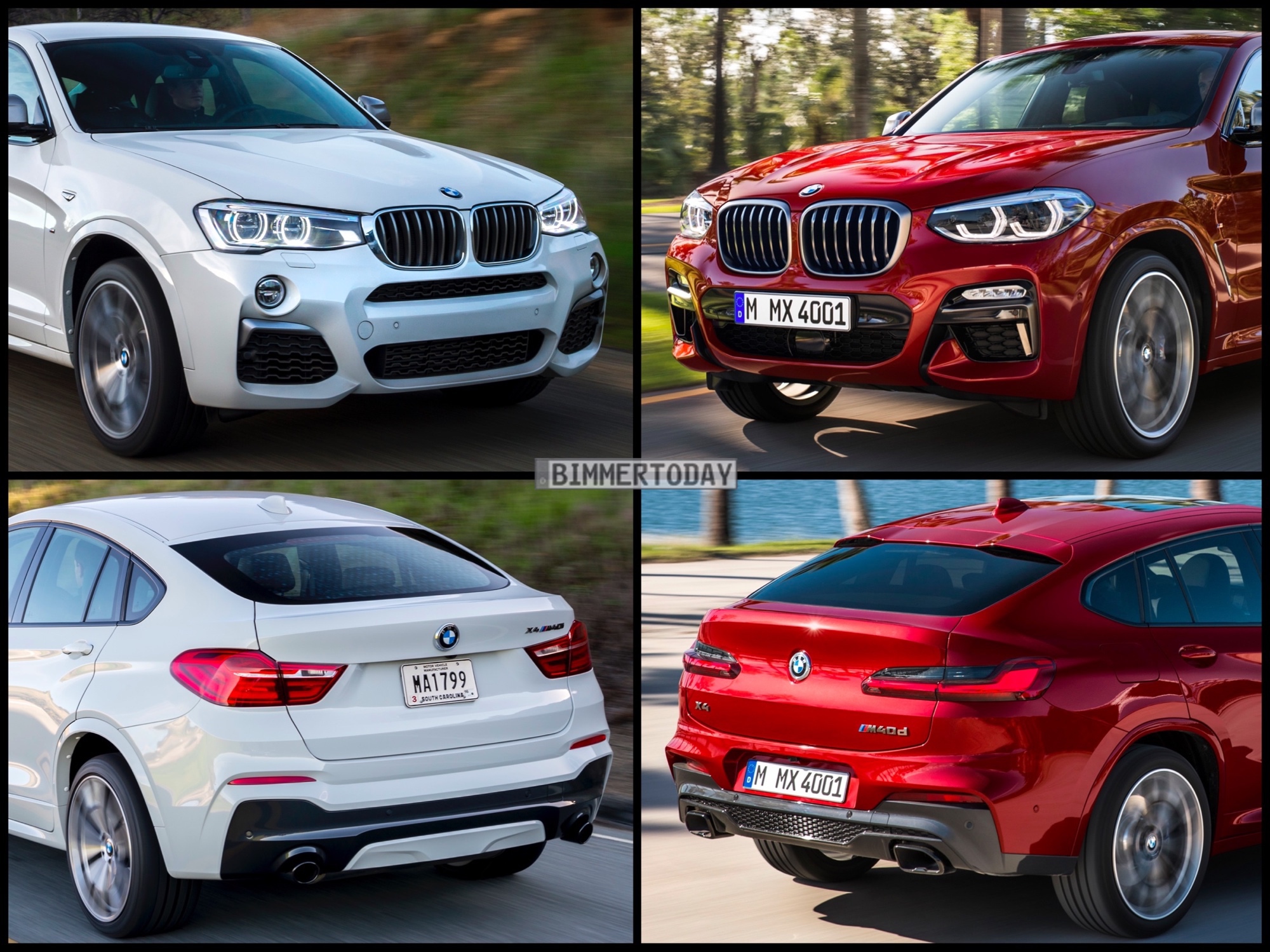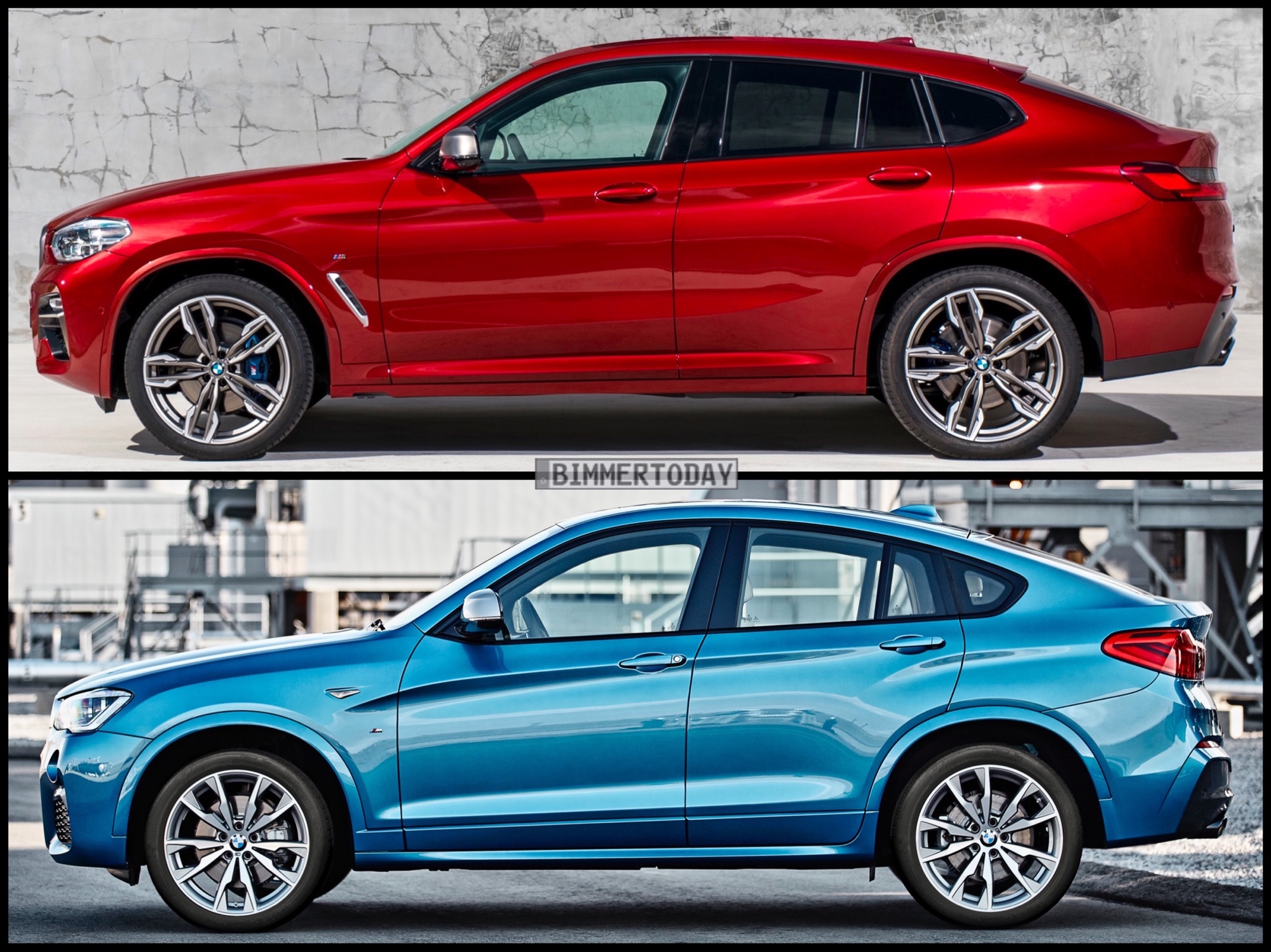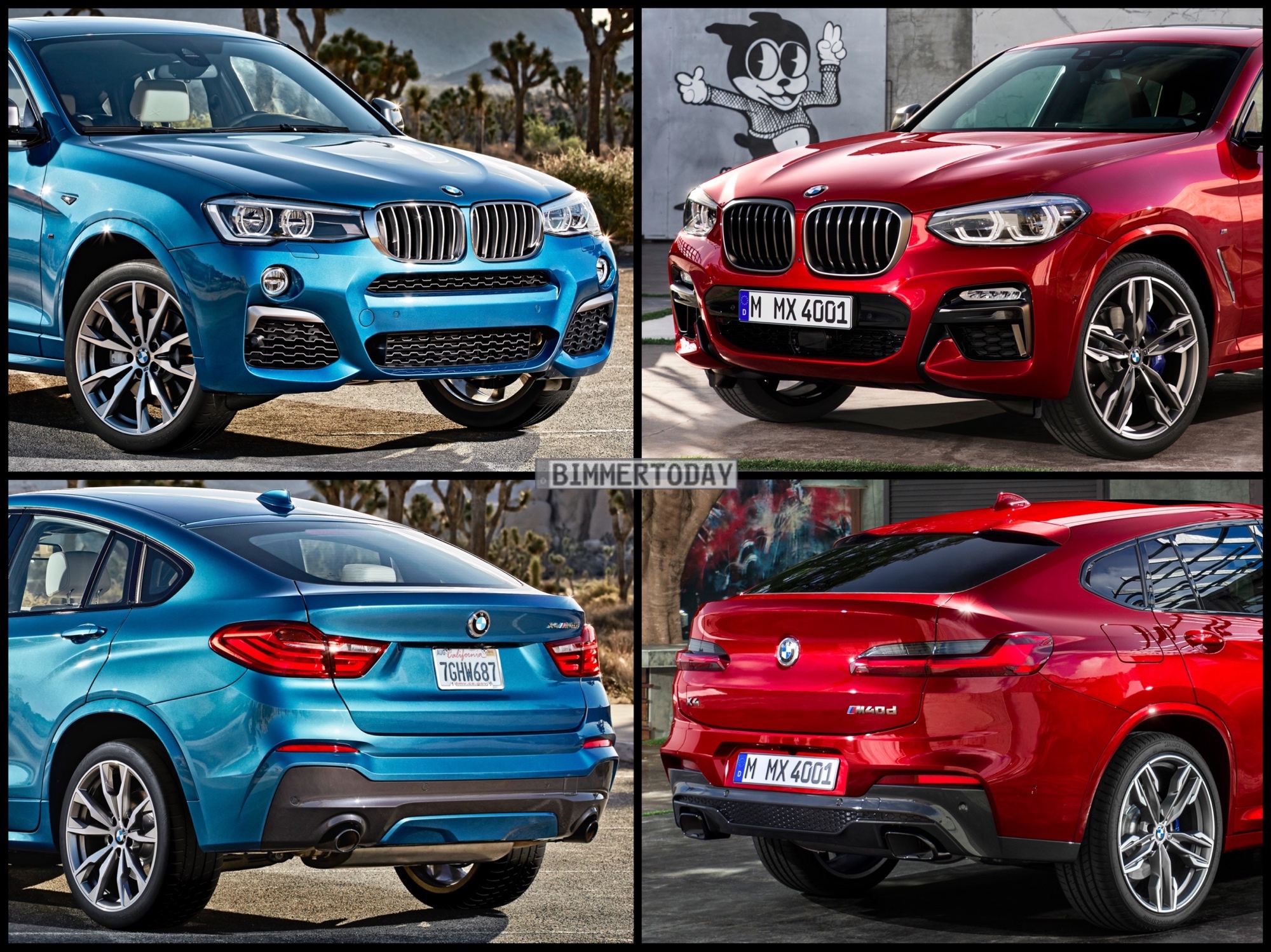 Nur vier Jahre nach dem ersten X4 feiert in Kürze der neue BMW X4 2018 seinen Marktstart. Wie unser Bild-Vergleich der beiden X4-Generationen zeigt, hat sich der Begründer des Segments der Mittelklasse-SUV-Coupés nicht nur technisch, sondern auch beim Design deutlich weiterentwickelt.Zu sehen ist jeweils die sportliche BMW M Performance Variante: Im Fall des X4 F26 das Modell M40i, alle Fotos der neuen Generation zeigen den Biturbo-Diesel X4 M40d.