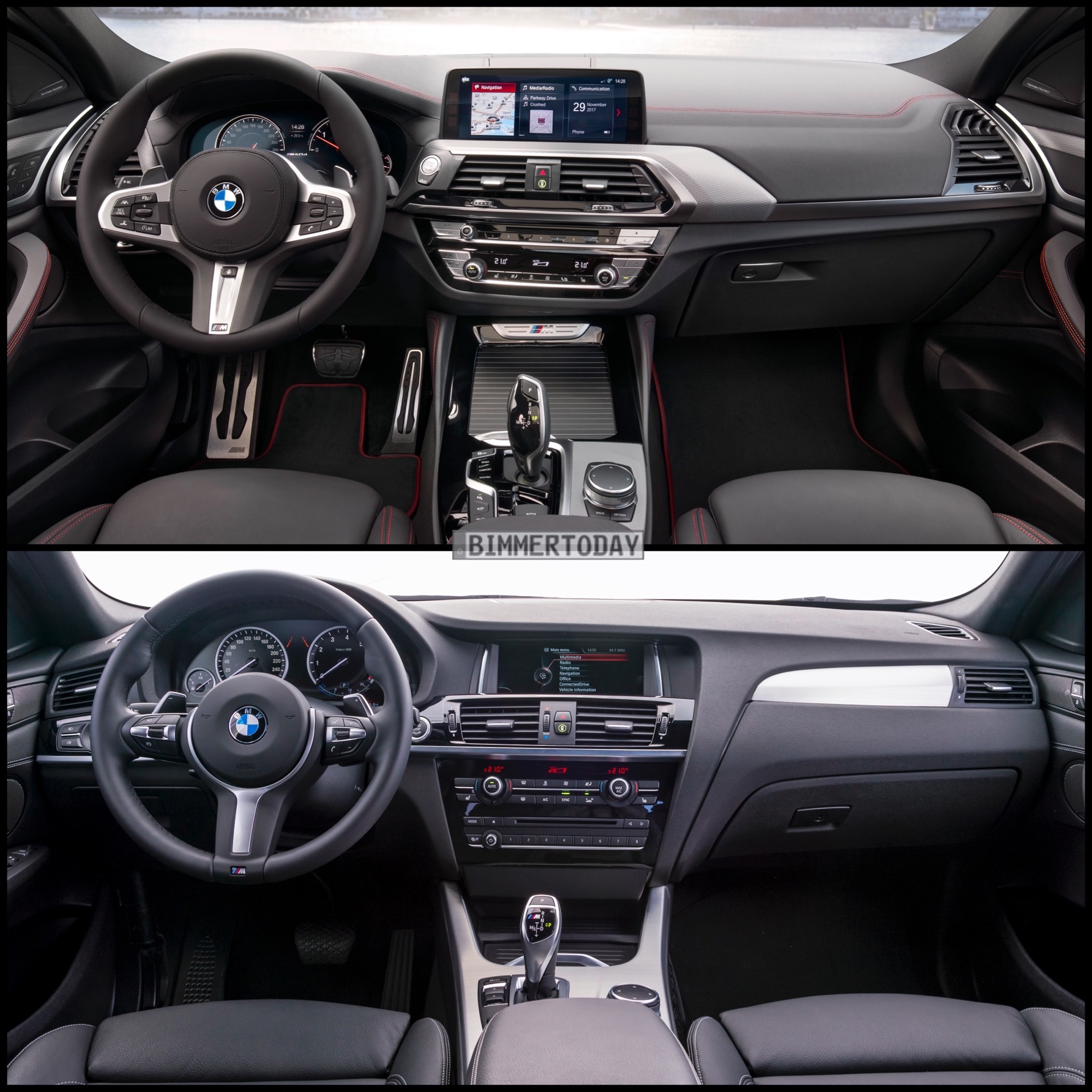 Im Innenraum präsentiert sich der BMW X4 2018 ebenfalls runderneuert. Mit freistehendem Infotainment-Display, Gestensteuerung, Multifunktionalem Instrumenten-Display, Head-Up-Display mit 70 Prozent größerer Anzeigefläche und dem deutlich erweiterten Funktionsumfang der aktuellsten iDrive-Generation mit Live-Kacheln im Hauptmenü stellt die Neuauflage ihren Vorgänger klar in den Schatten.