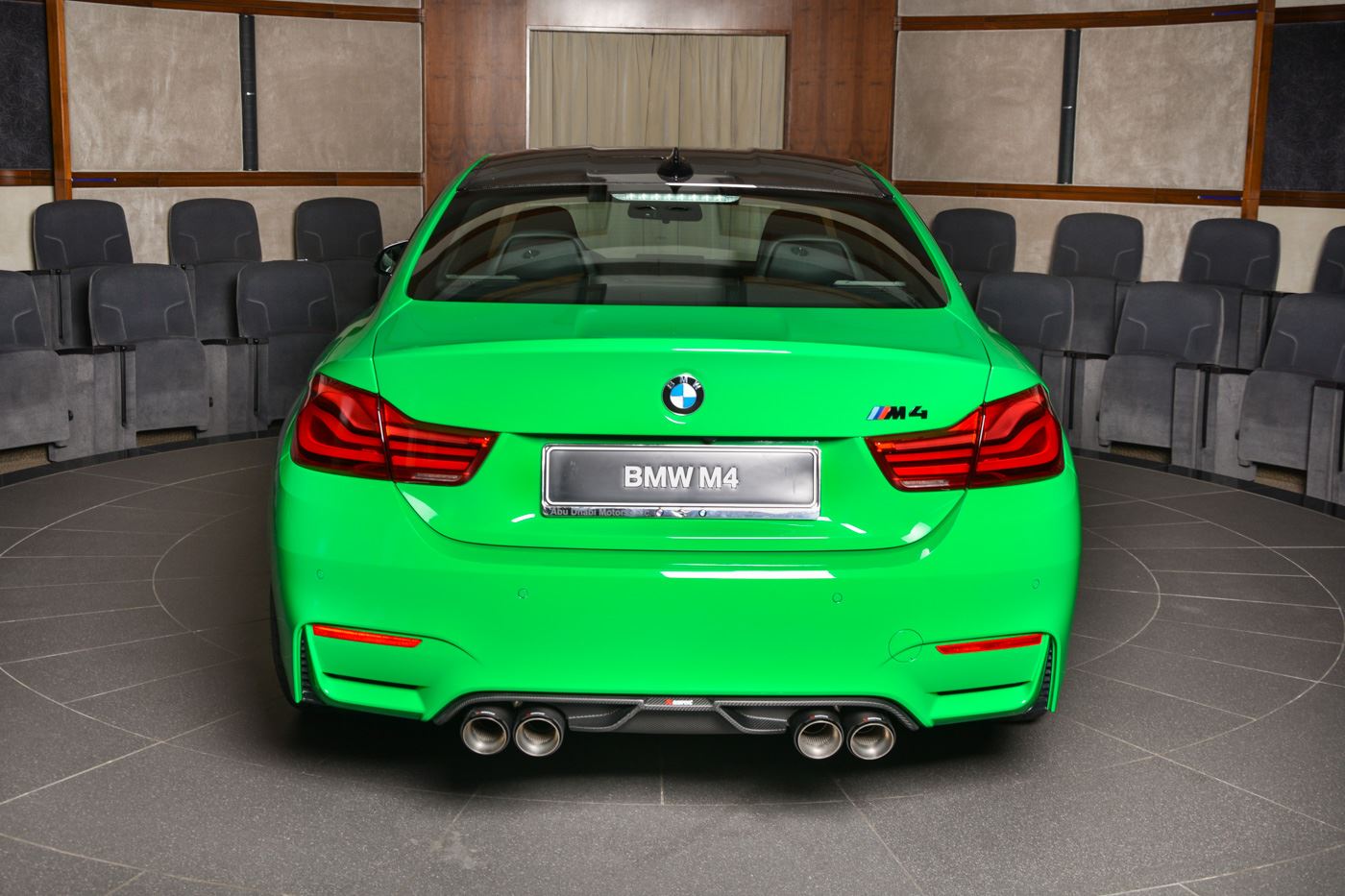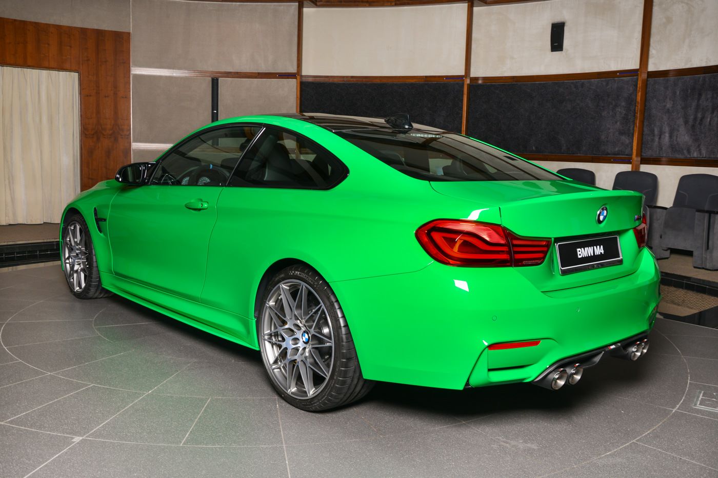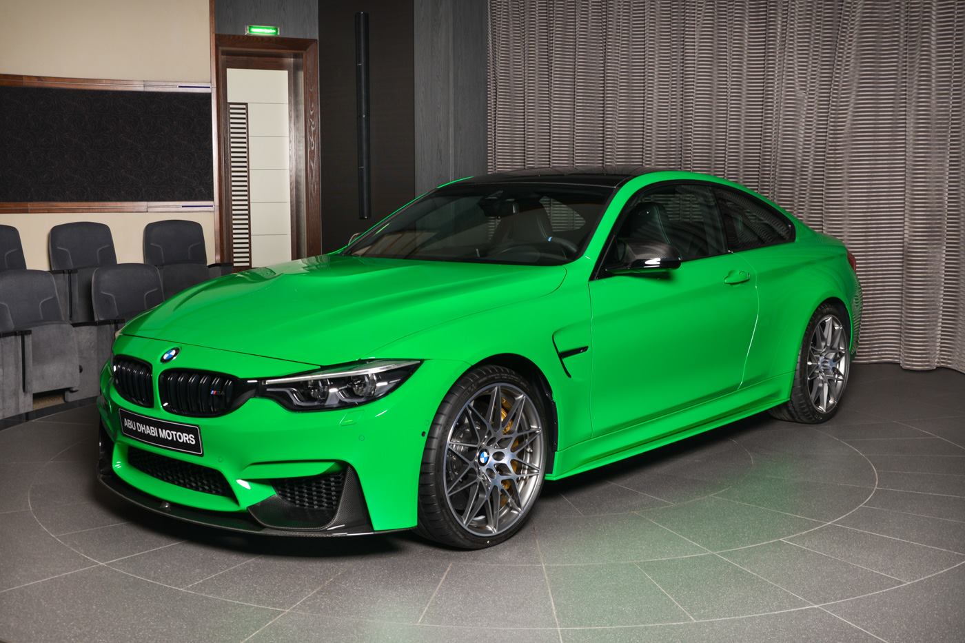 Wenn Auffallen über alles geht, ist die Individual-Lackierung Signal Green genau die richtige Wahl. Neue Fotos von BMW Abu Dhabi Motors zeigen ein BMW M4 Coupé in der extrem auffälligen Farbe, die schon mit ihrem Namen alle Zweifel beseitigt: Wer dieses Auto fährt, möchte auf keinen Fall übersehen werden. Das kräftige Signalgrün dürfte in ausnahmslos jedem Umfeld für Erstaunen sorgen und erinnert nicht nur auf den ersten Blick an die eher im Motorsport als im öffentlichen Straßenverkehr üblichen Lackierungen.