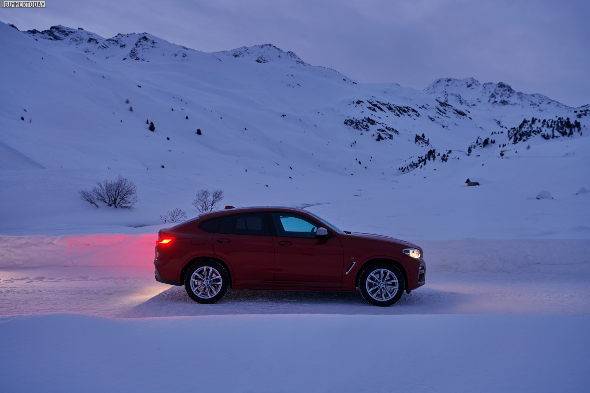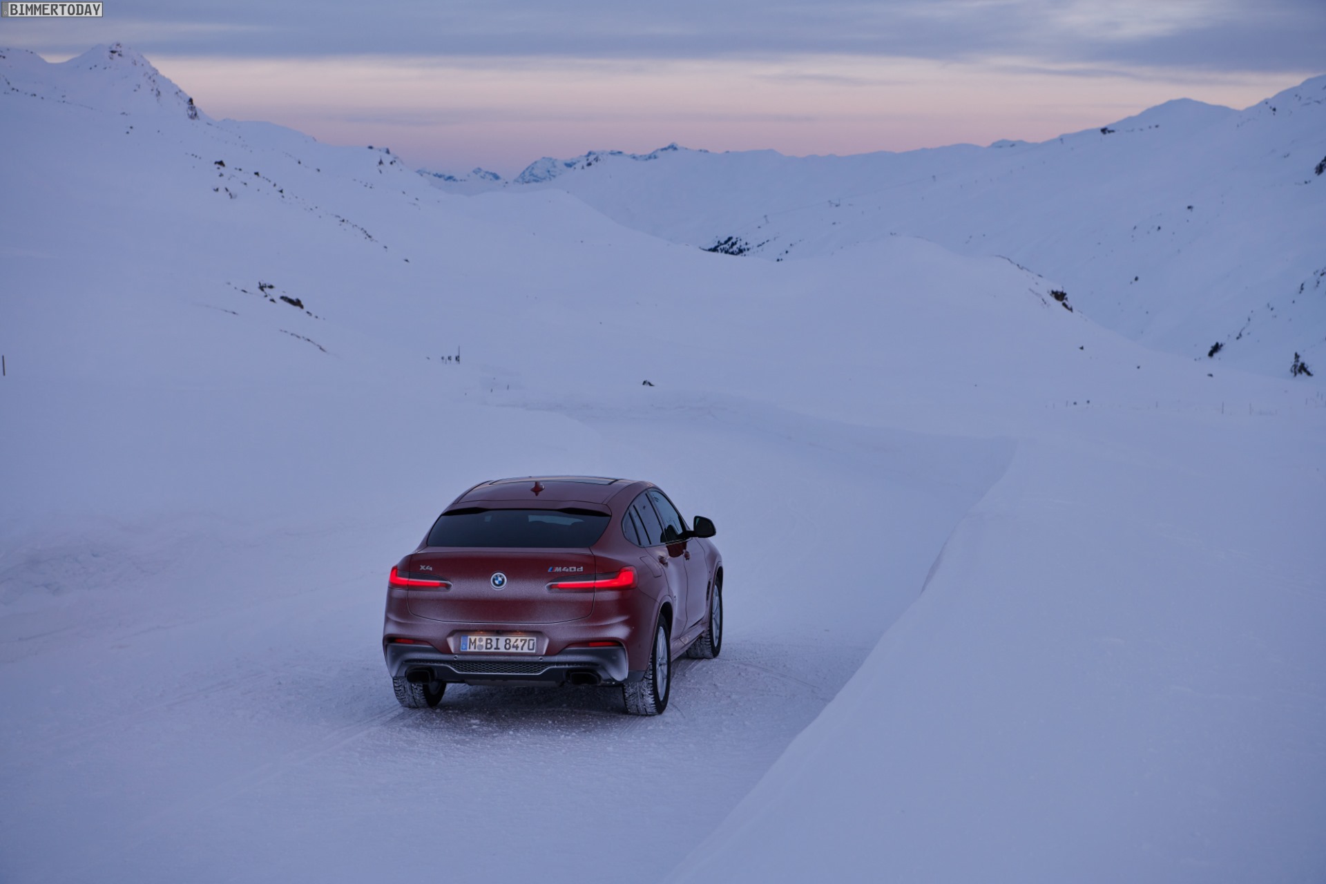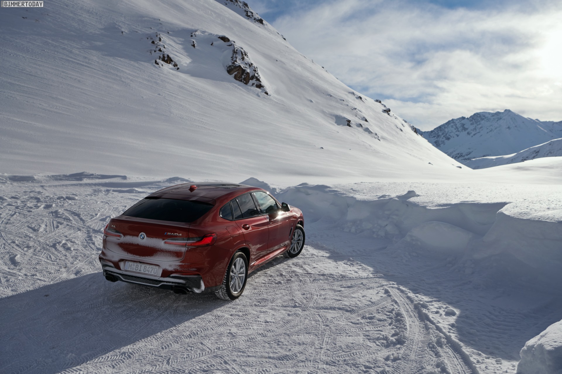 Auf seiner Tour von München nach Genf absolvierte der BMW X4 G02 den Flüelpass, der auf 2.383 Meter derzeit Schneehöhen von über einem Meter bietet. Die zahlreichen Serpentinen des Alpenpasses und der verschneite Untergrund sind dank serienmäßigem Allradantrieb xDrive mit vollvariabler, heckbetonter Kraftverteilung kein Problem für das SUV-Coupé, das sich seine Technik mit dem X3 teilt.