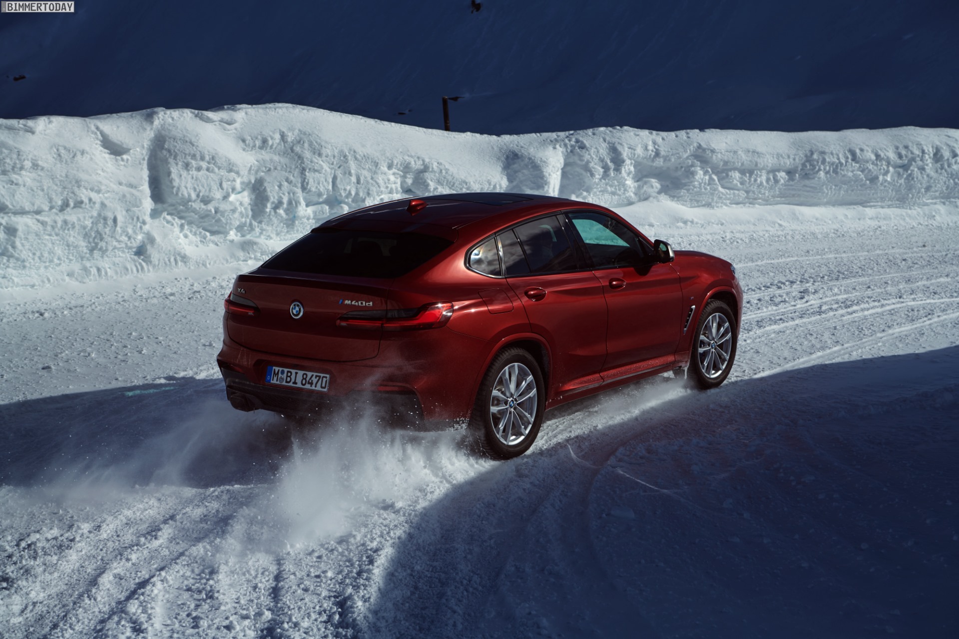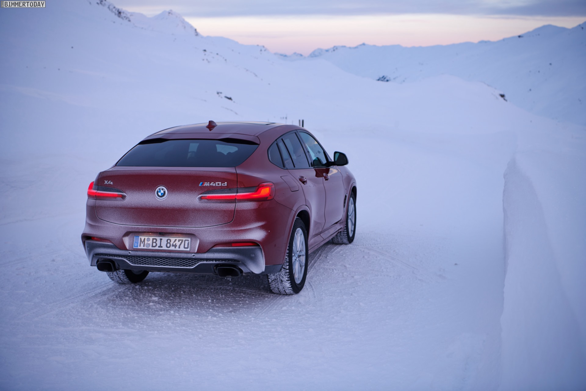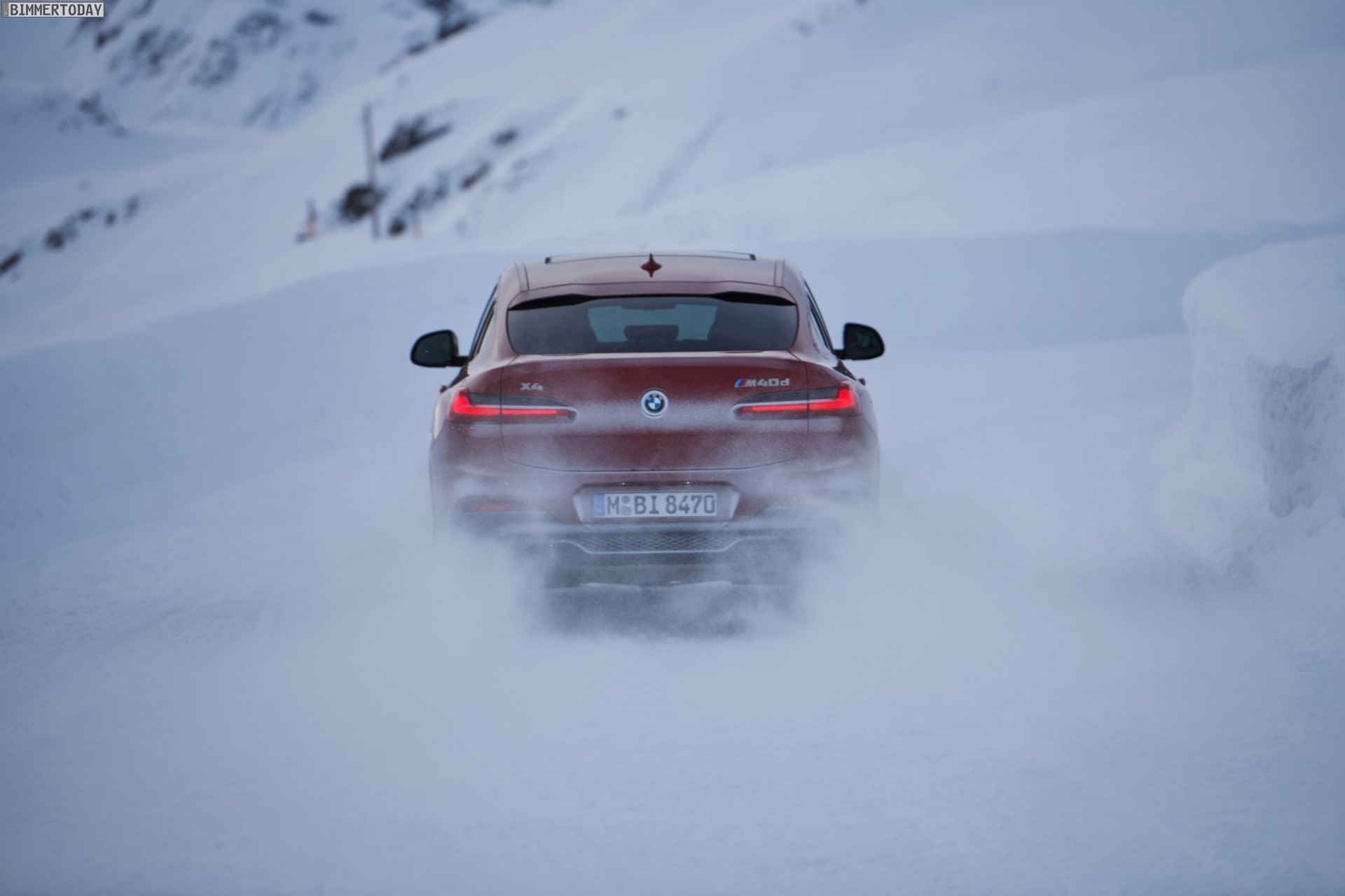 Auf seiner Tour von München nach Genf absolvierte der BMW X4 G02 den Flüelpass, der auf 2.383 Meter derzeit Schneehöhen von über einem Meter bietet. Die zahlreichen Serpentinen des Alpenpasses und der verschneite Untergrund sind dank serienmäßigem Allradantrieb xDrive mit vollvariabler, heckbetonter Kraftverteilung kein Problem für das SUV-Coupé, das sich seine Technik mit dem X3 teilt.