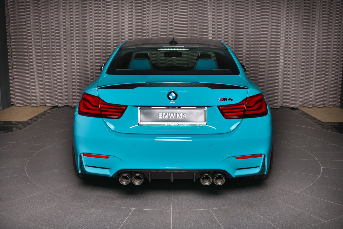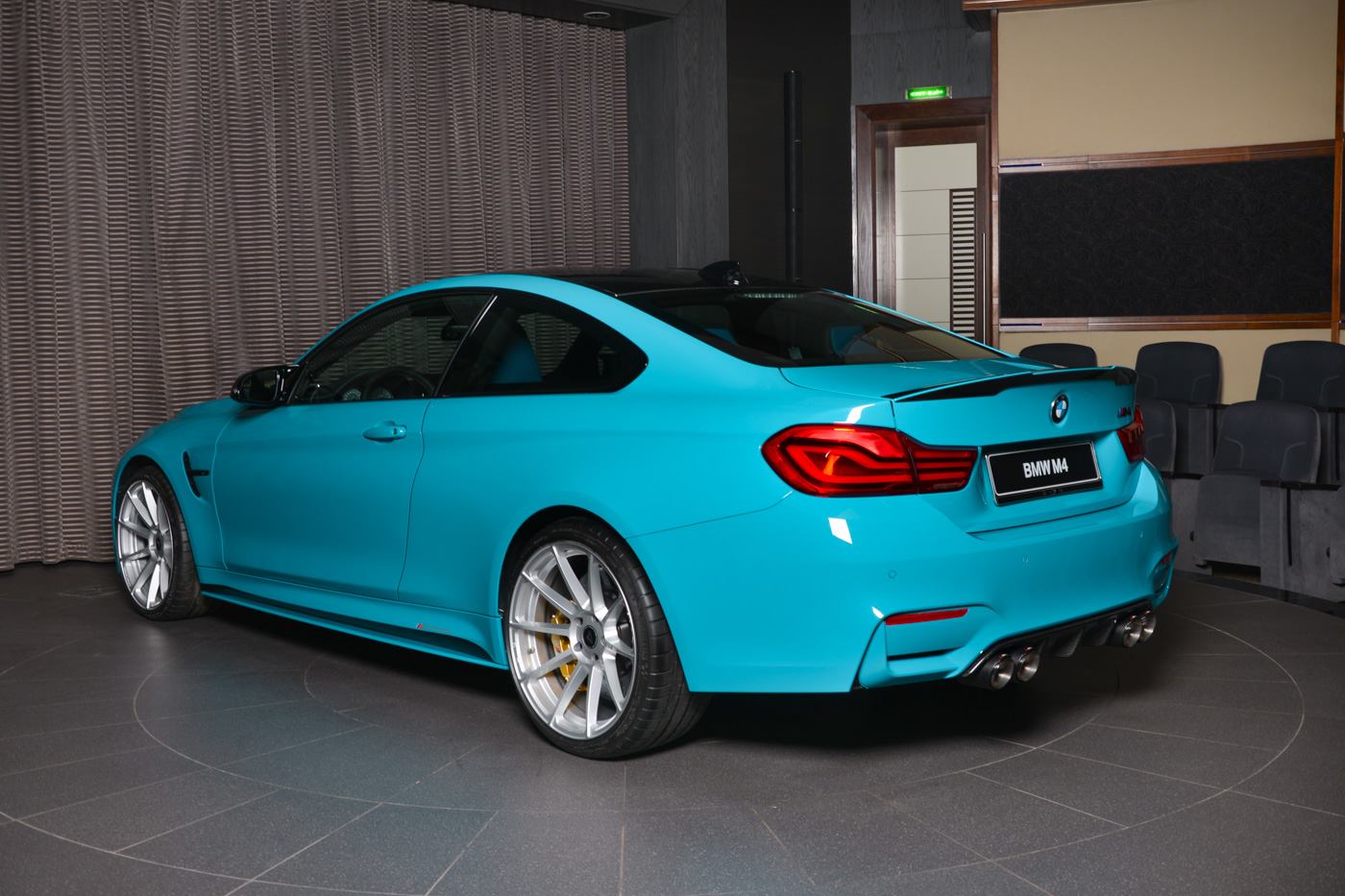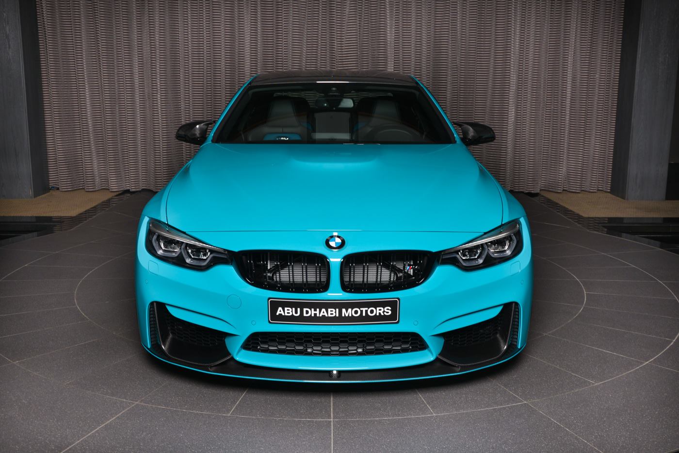 Ganz sicher kein alltäglicher Anblick ist das BMW M4 Coupé mit Individual-Lackierung in Miami Blue, das derzeit im Showroom von BMW Abu Dhabi Motors bestaunt werden kann. Die türkise Sonderfarbe ist an die Farbe des Meeres vor Miami angelehnt und könnte den einen oder anderen Betrachter direkt in Urlaubsstimmung versetzen. Das gezeigte Fahrzeug trägt neben der speziellen Lackierung auch Tuning-Komponenten von BMW M Performance, die es noch spezieller machen.