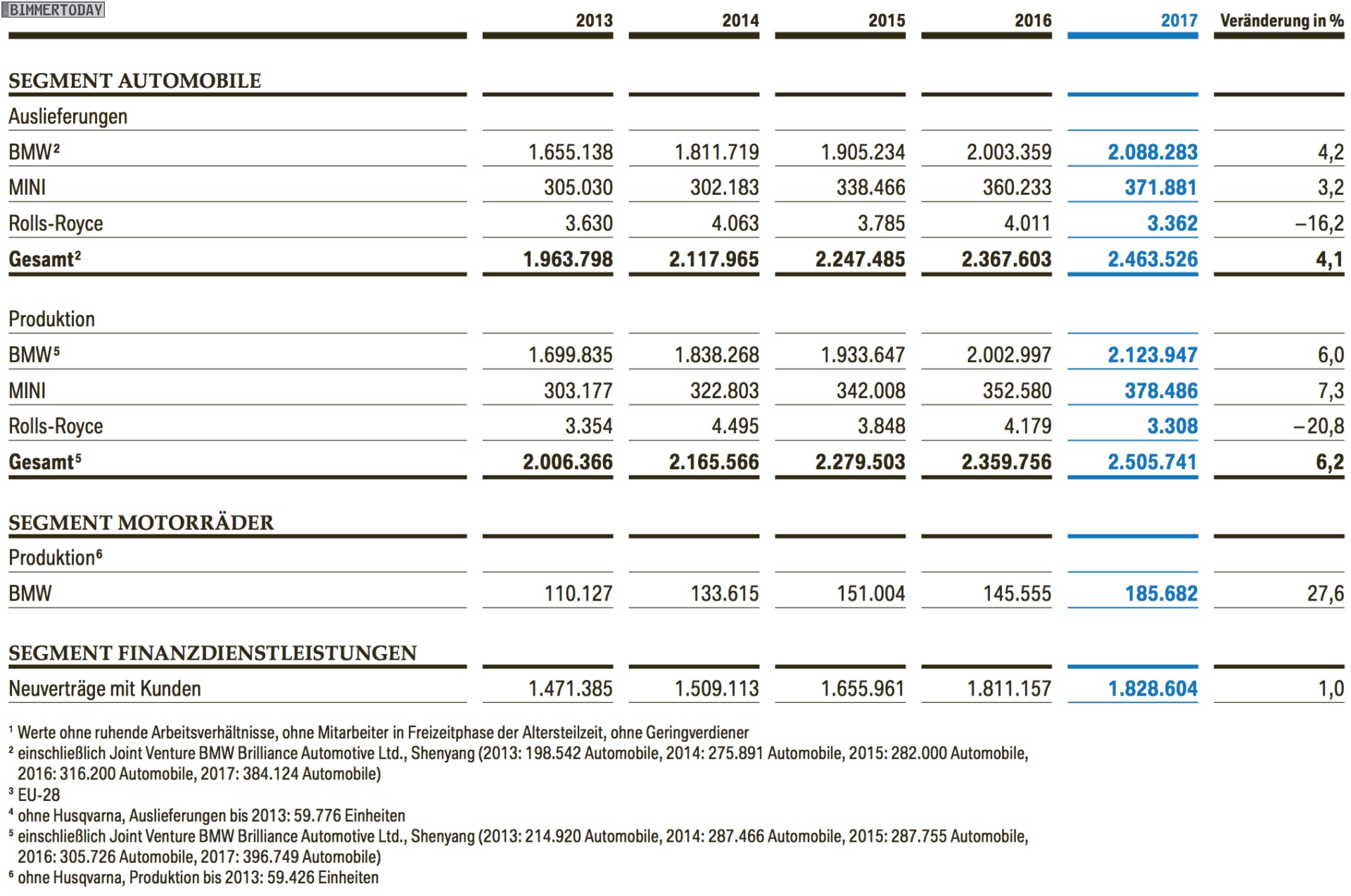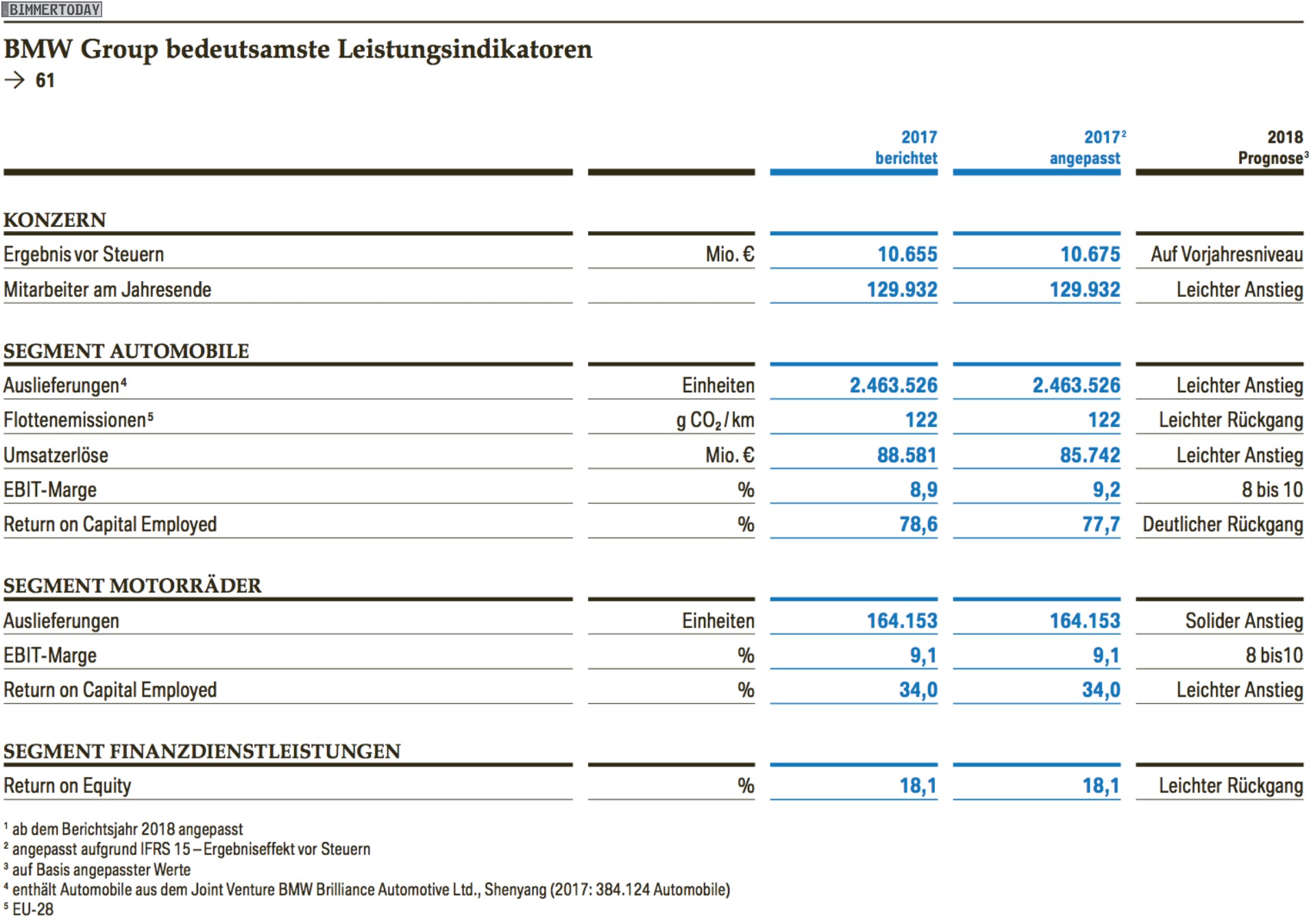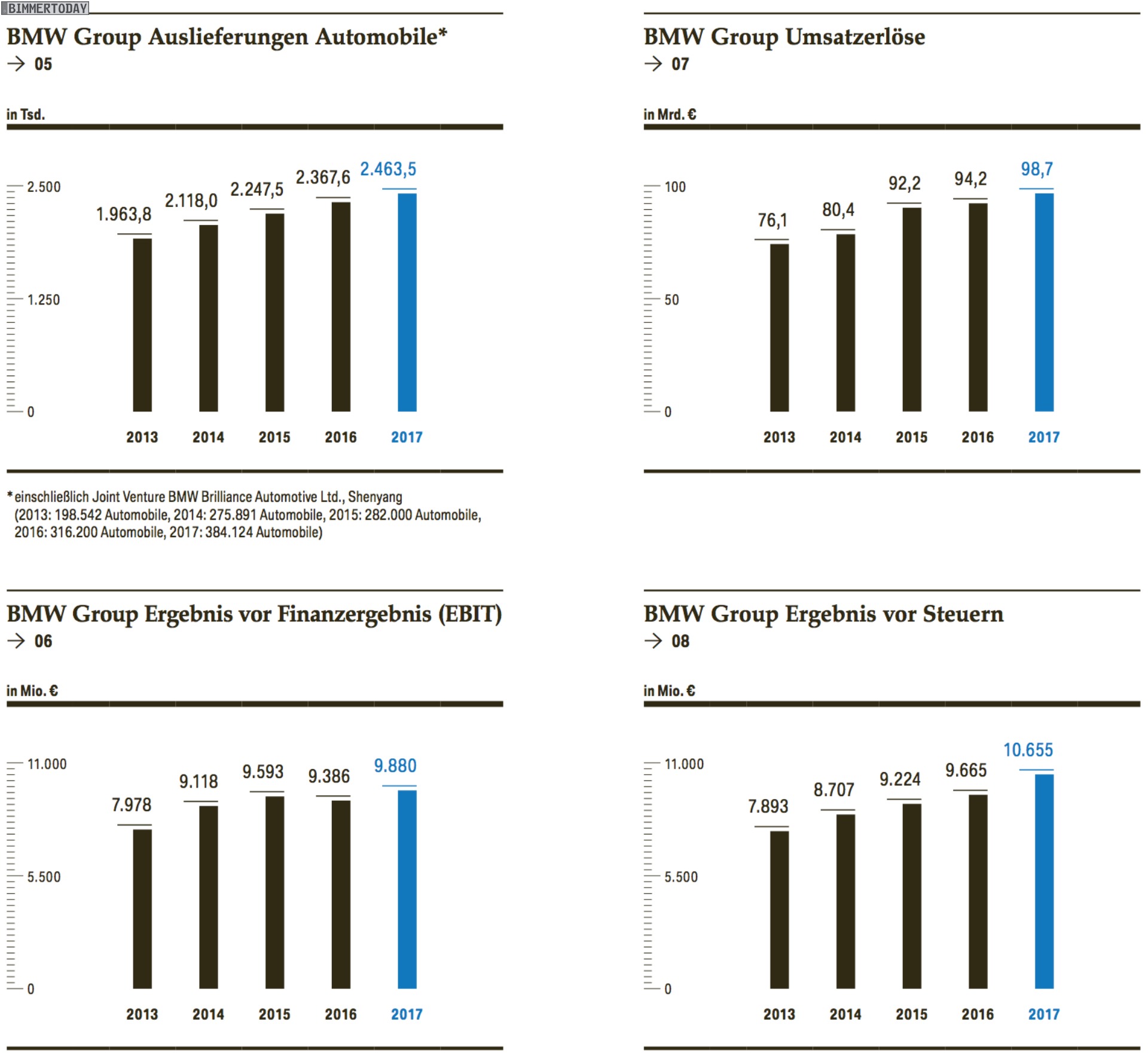 Die wichtigsten Kennzahlen der BMW Bilanz 2017 im Überblick: