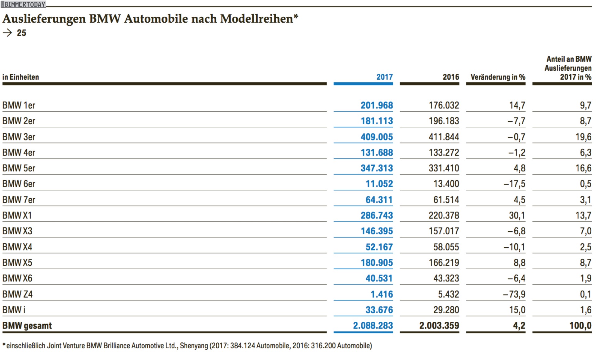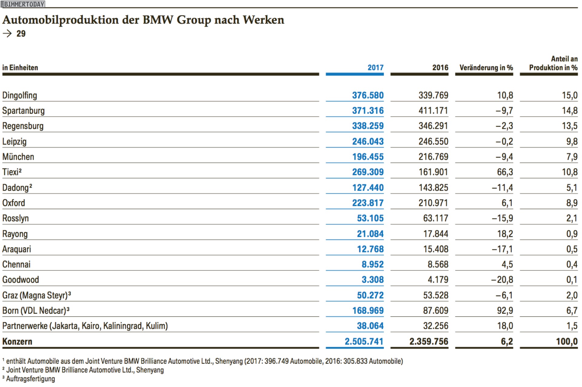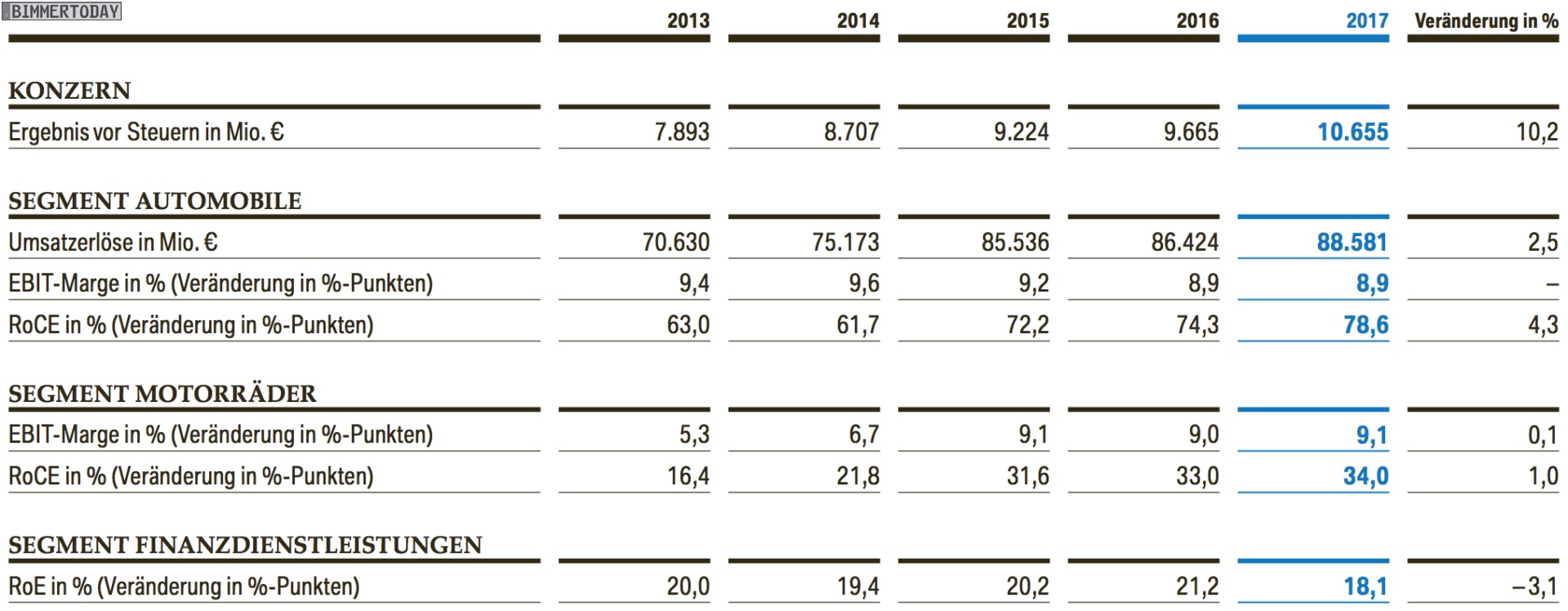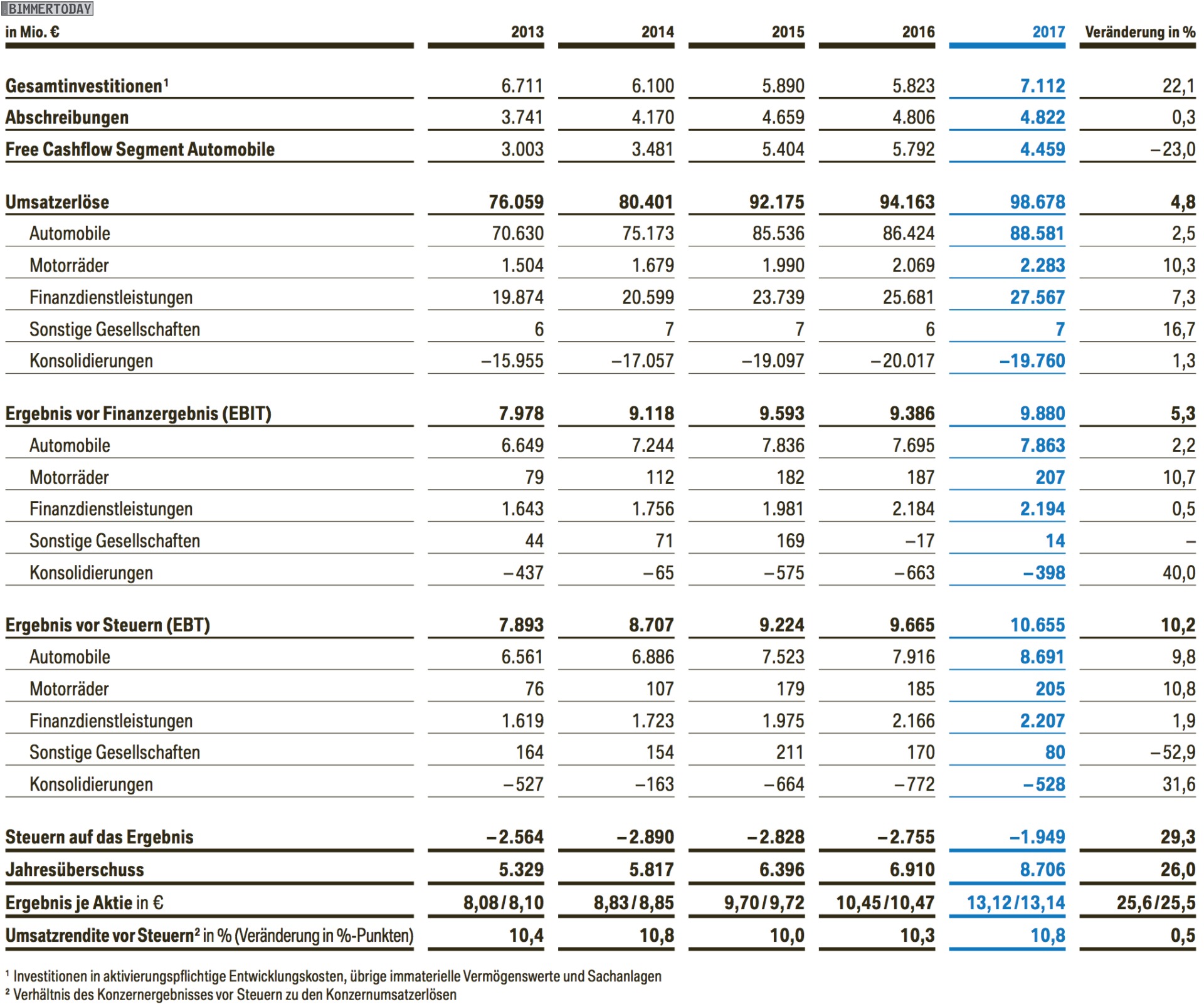 Die wichtigsten Kennzahlen der BMW Bilanz 2017 im Überblick: